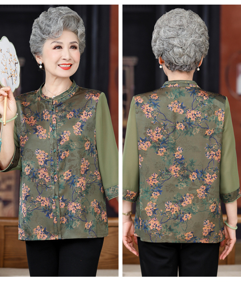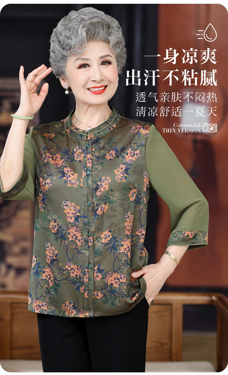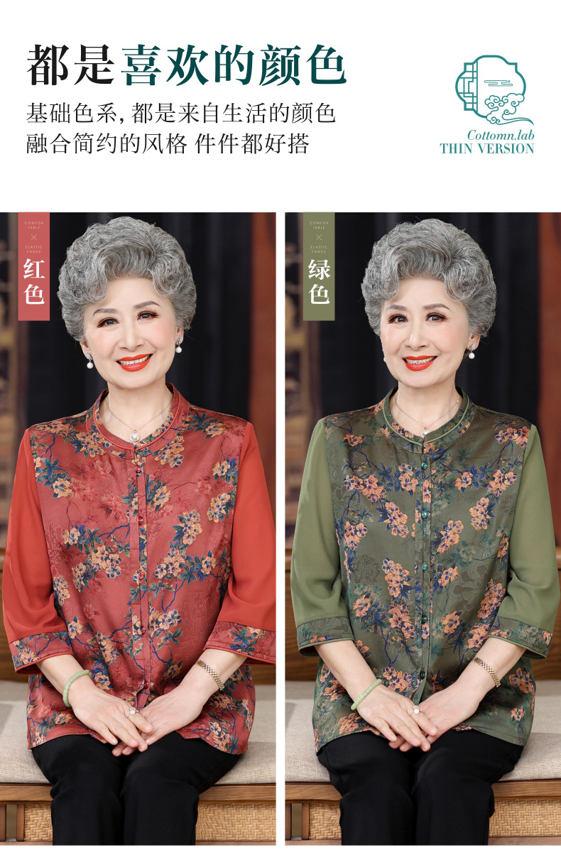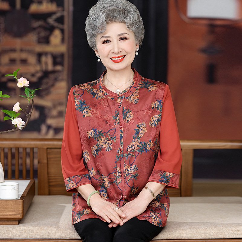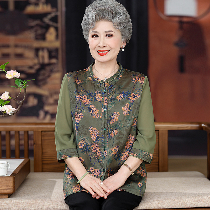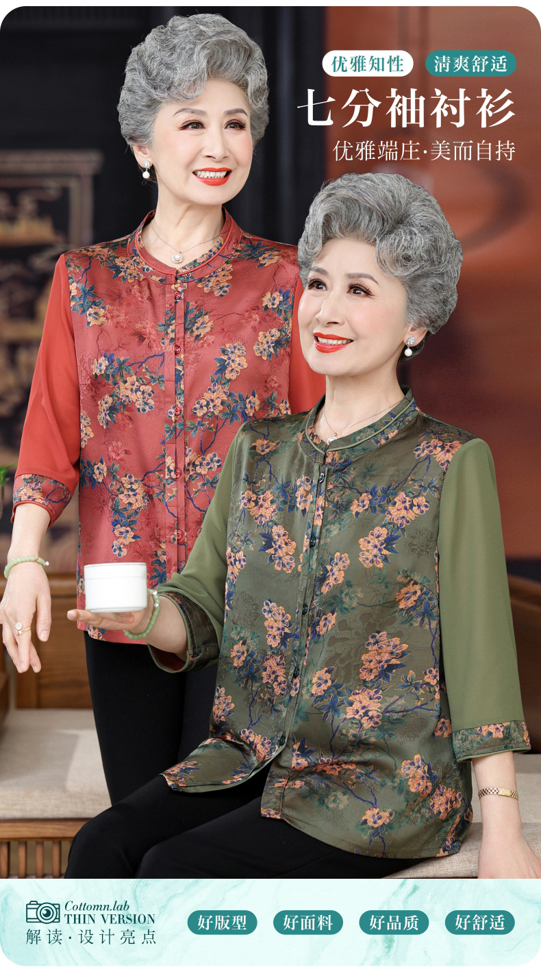 Пожилые люди весеннее платье бабушки семь рукавов рубашка свекровь шифонтан мама весна лето рубашка цвет 2024 новый стиль