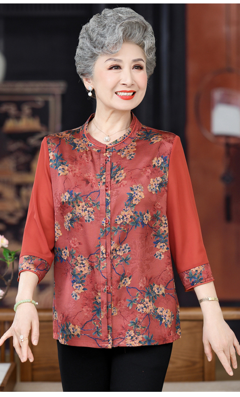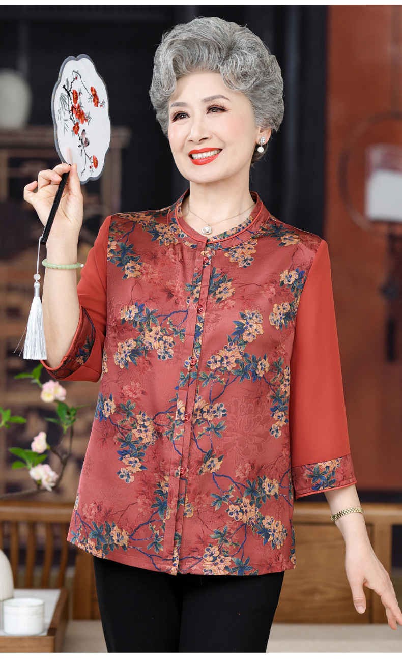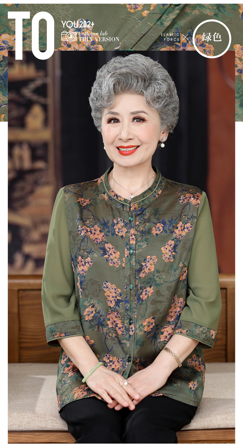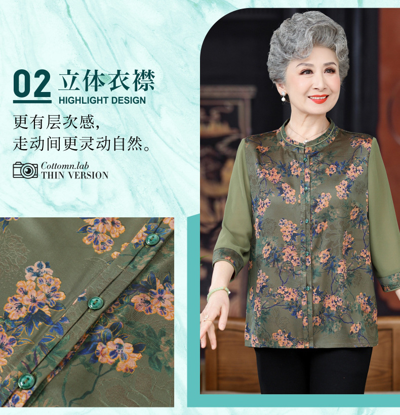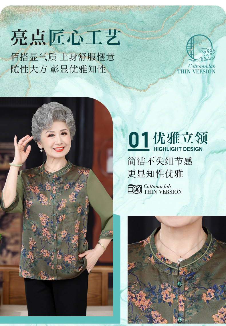 Пожилые люди весеннее платье бабушки семь рукавов рубашка свекровь шифонтан мама весна лето рубашка цвет 2024 новый стиль