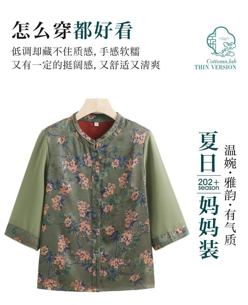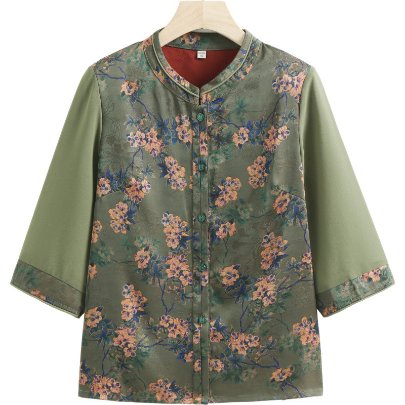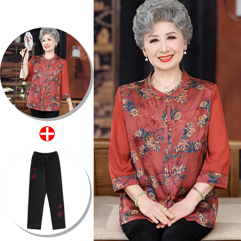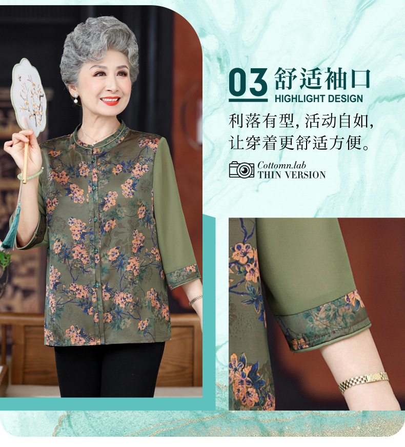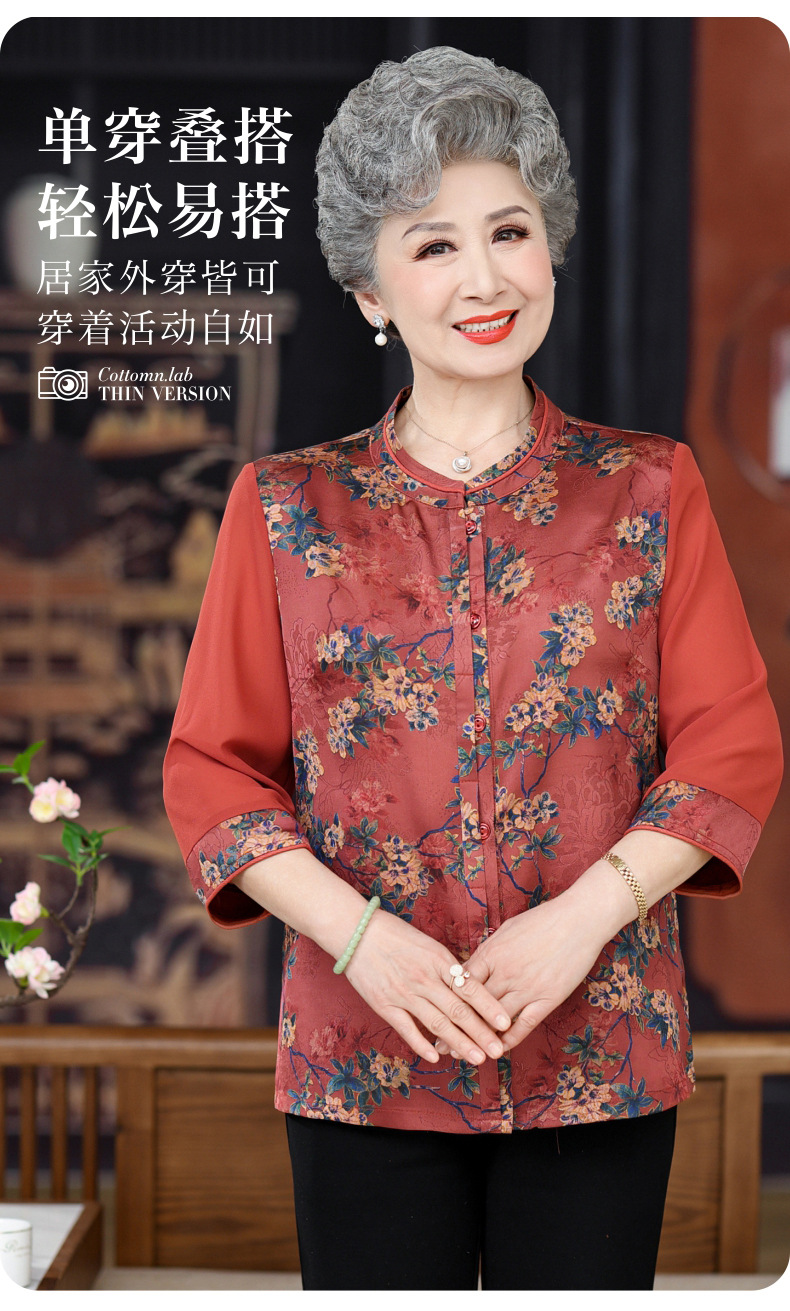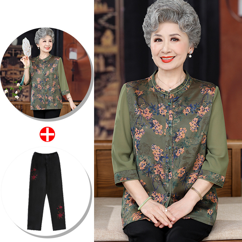 Пожилые люди весеннее платье бабушки семь рукавов рубашка свекровь шифонтан мама весна лето рубашка цвет 2024 новый стиль