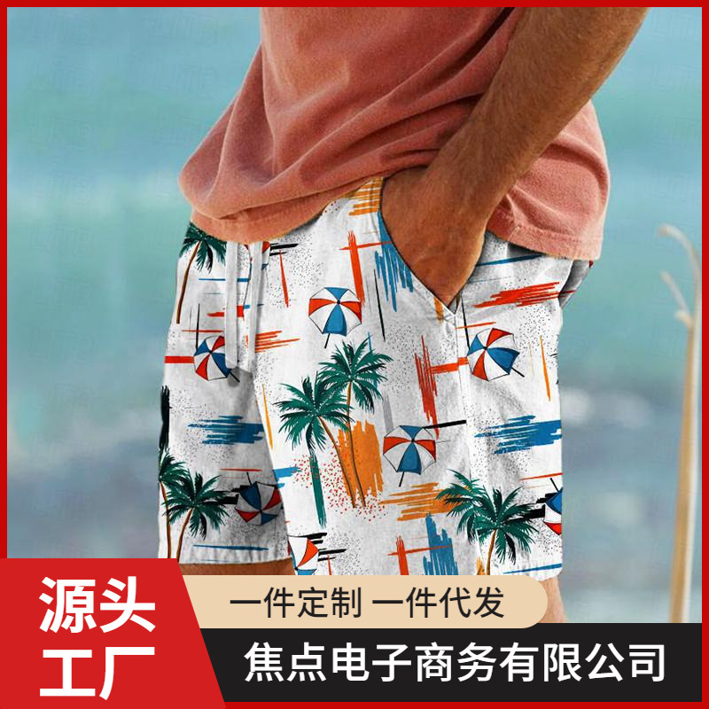 Мужские пляжные шорты 2024 года, летние, модные, повседневные, для трансграничной торговли, на заказ, для независимых платформ POD