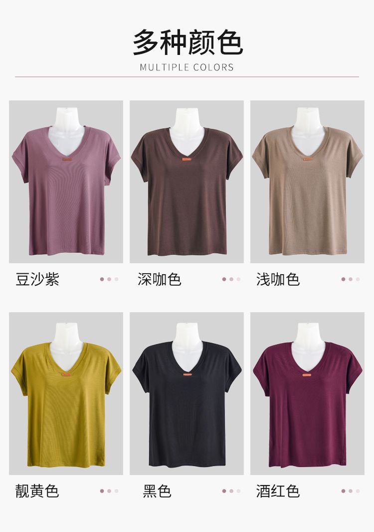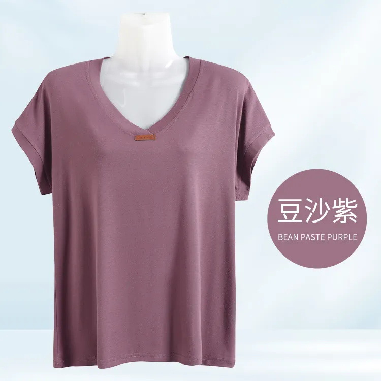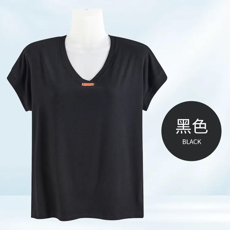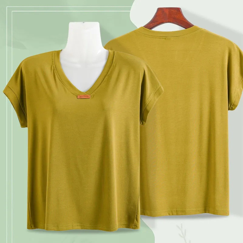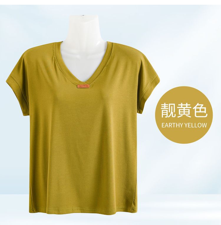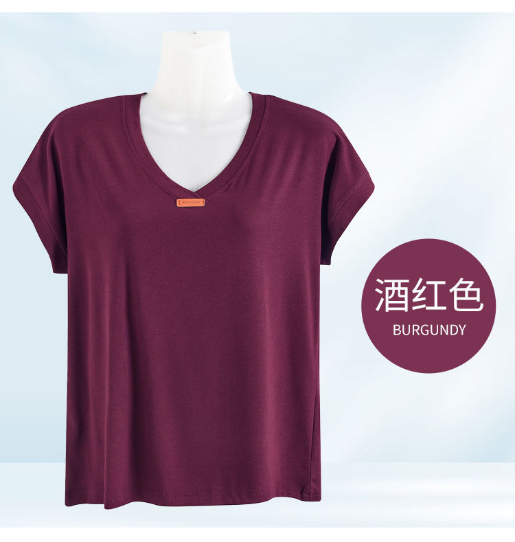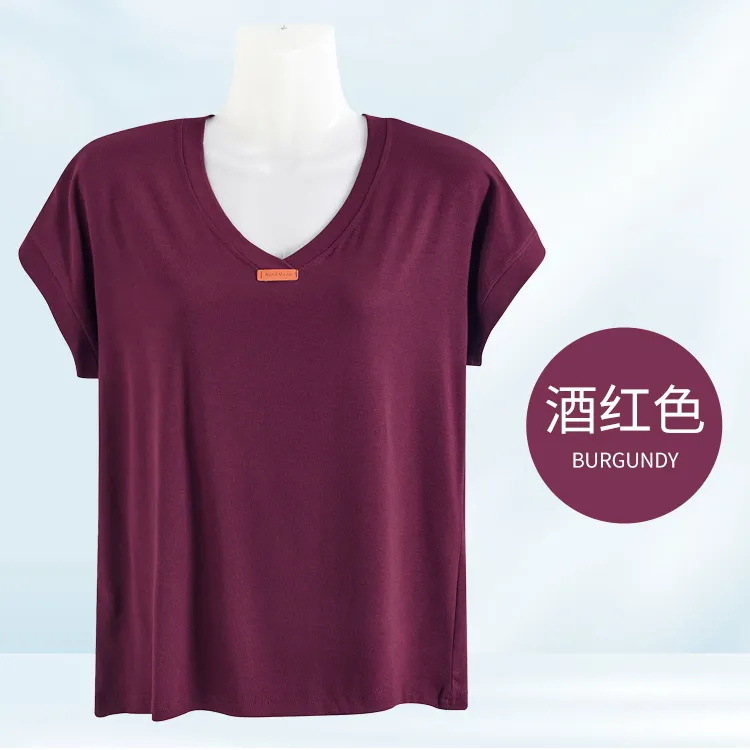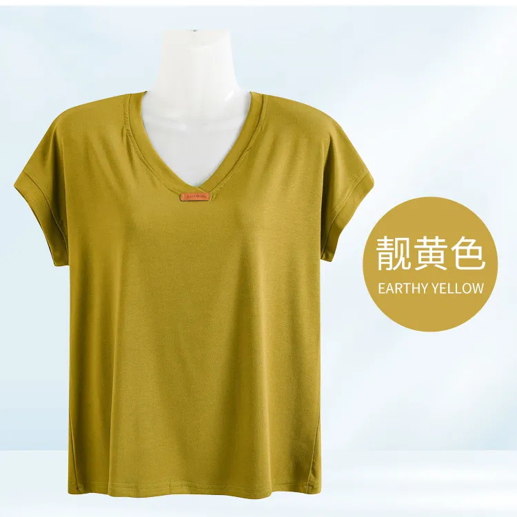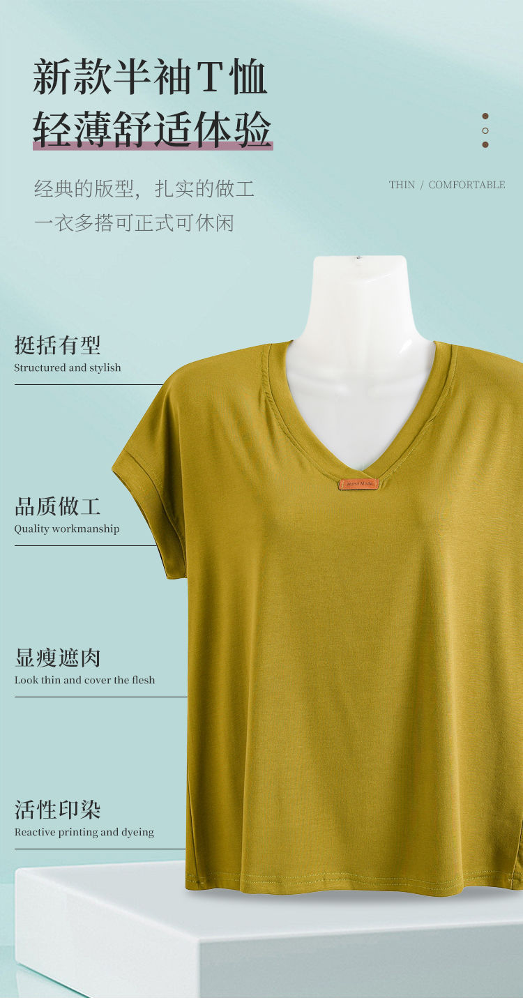Новая мама летом V-образный вырез футболка среднего возраста с короткими рукавами женская свободная эластичная топ плюс толстая рубашка с половиной рукава