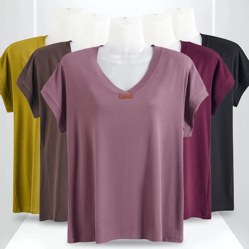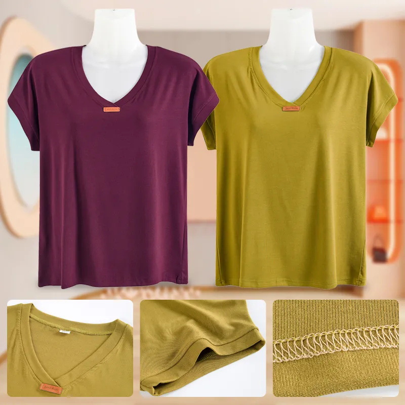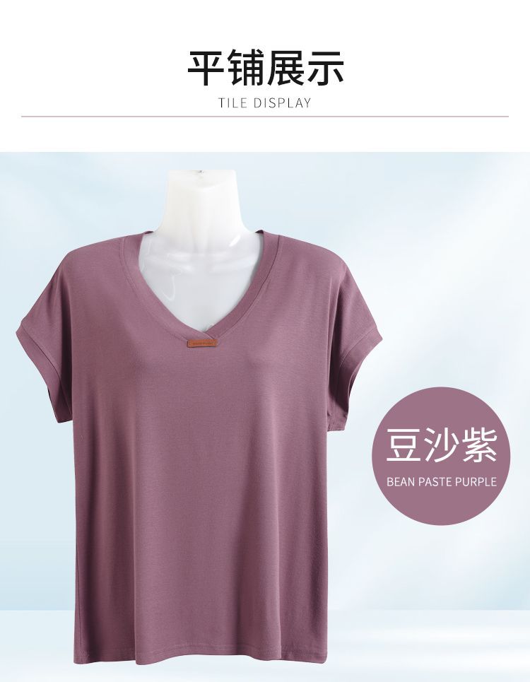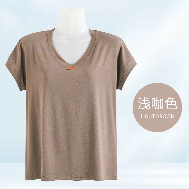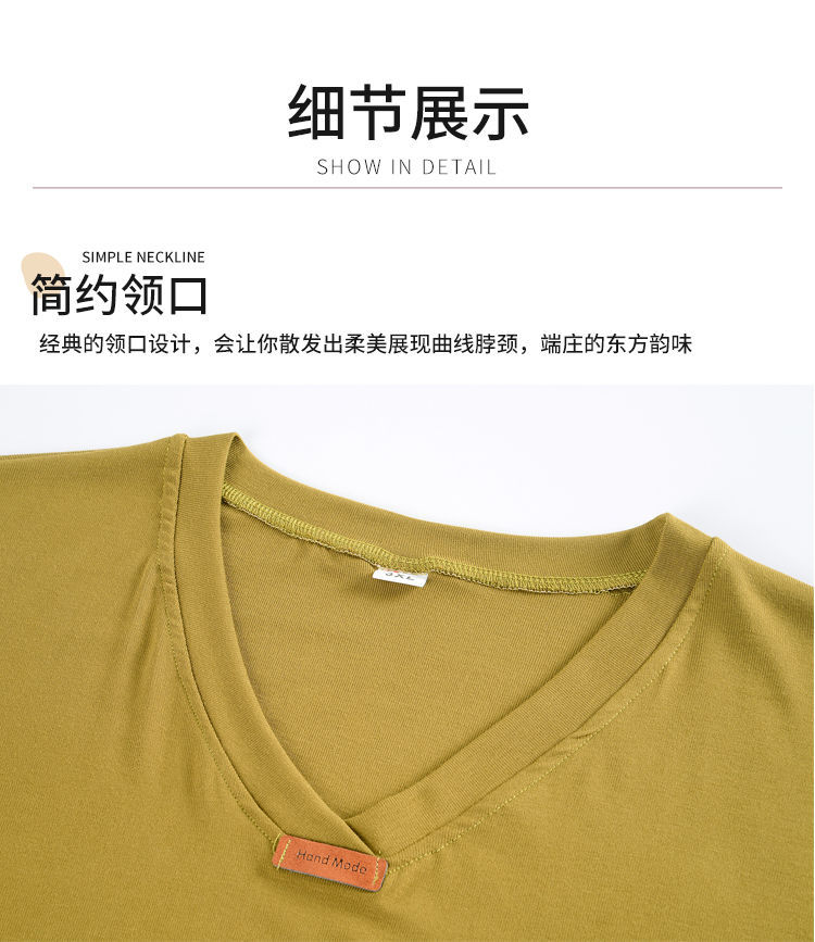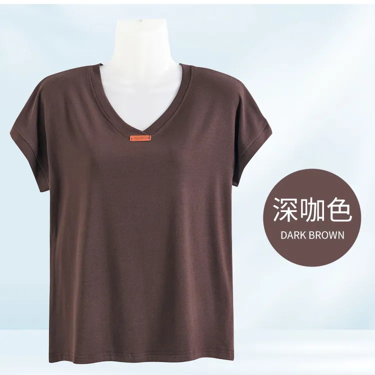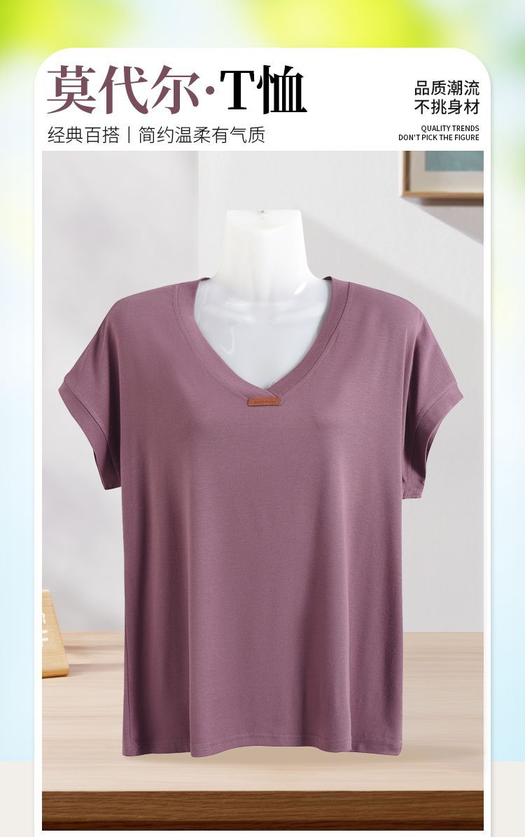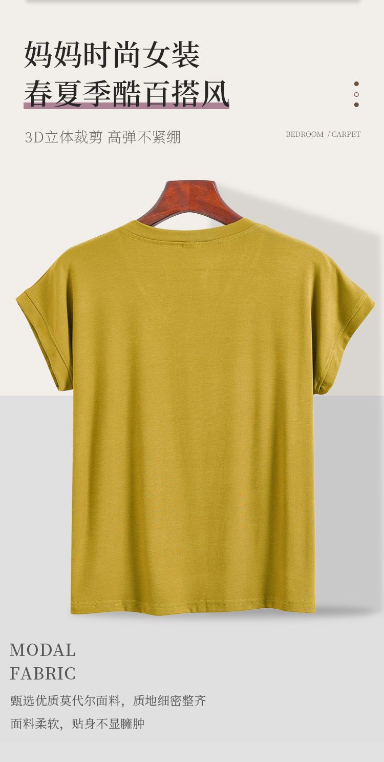 Новая мама летом V-образный вырез футболка среднего возраста с короткими рукавами женская свободная эластичная топ плюс толстая рубашка с половиной рукава