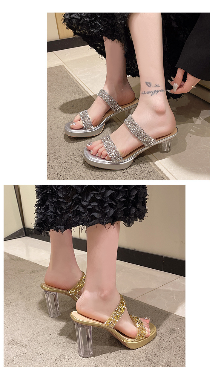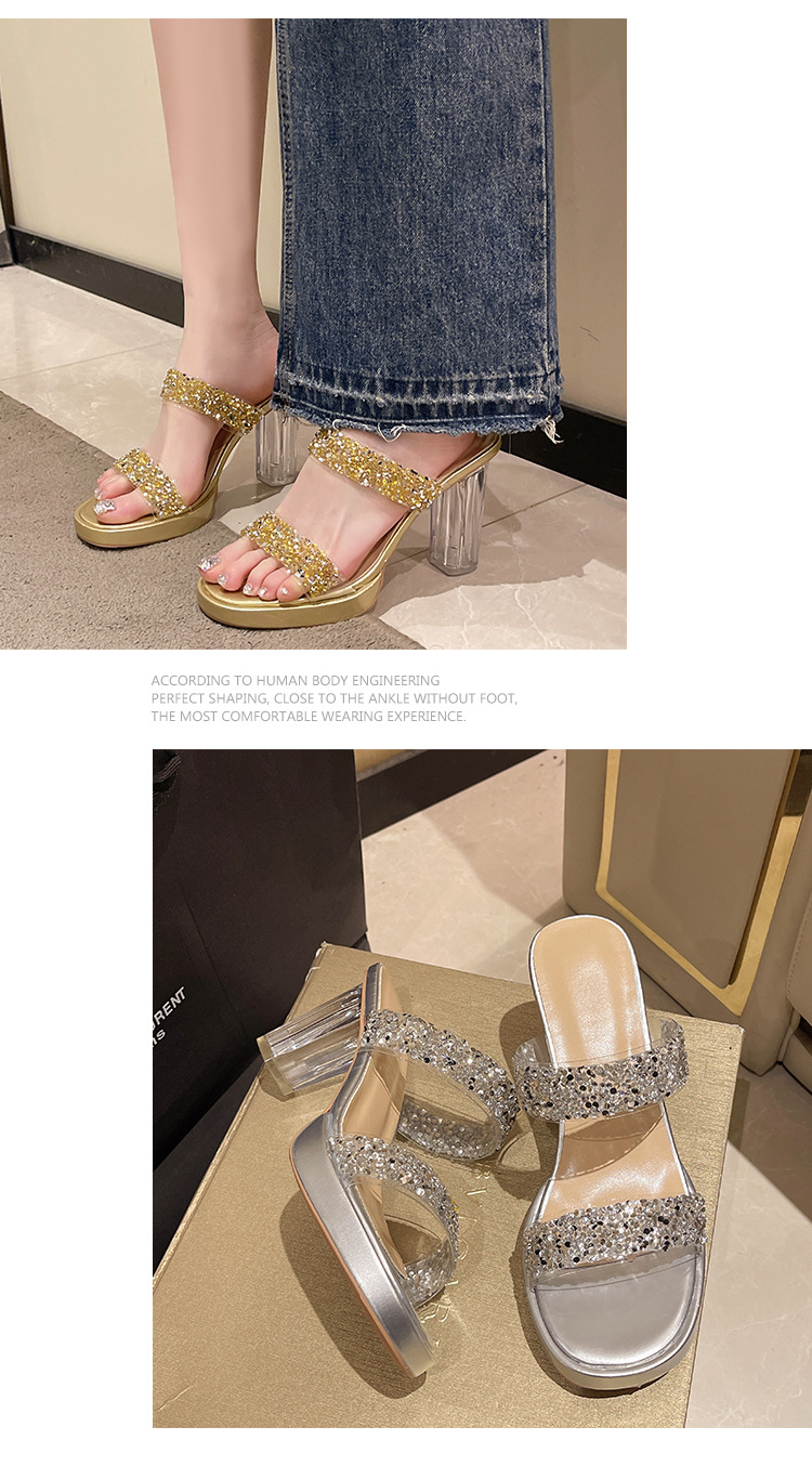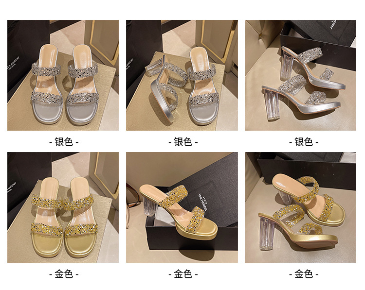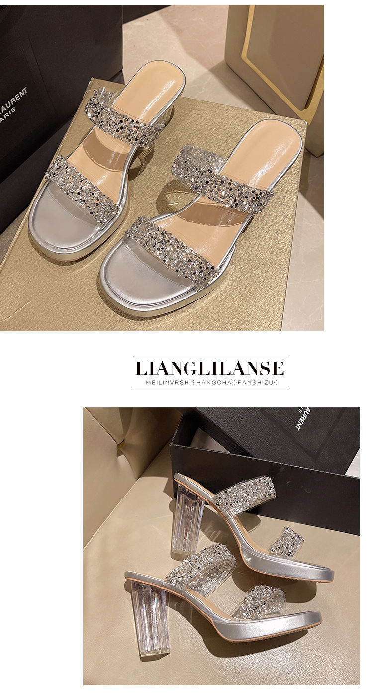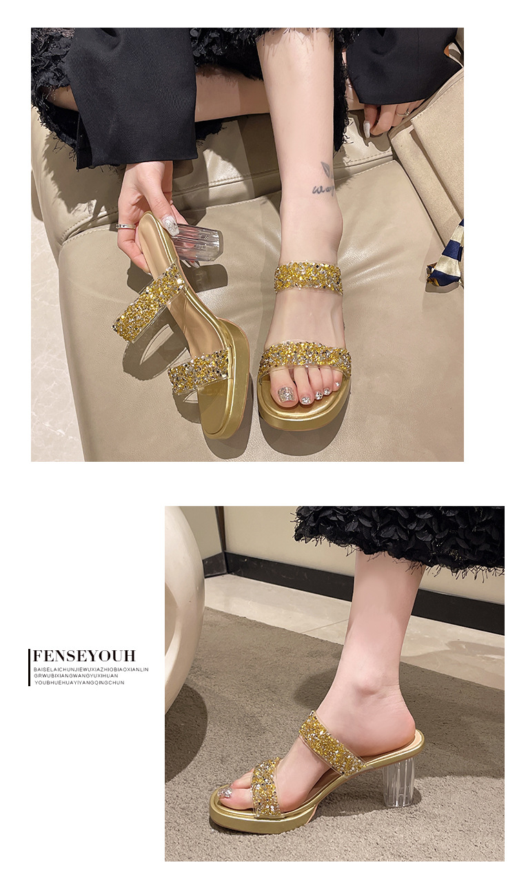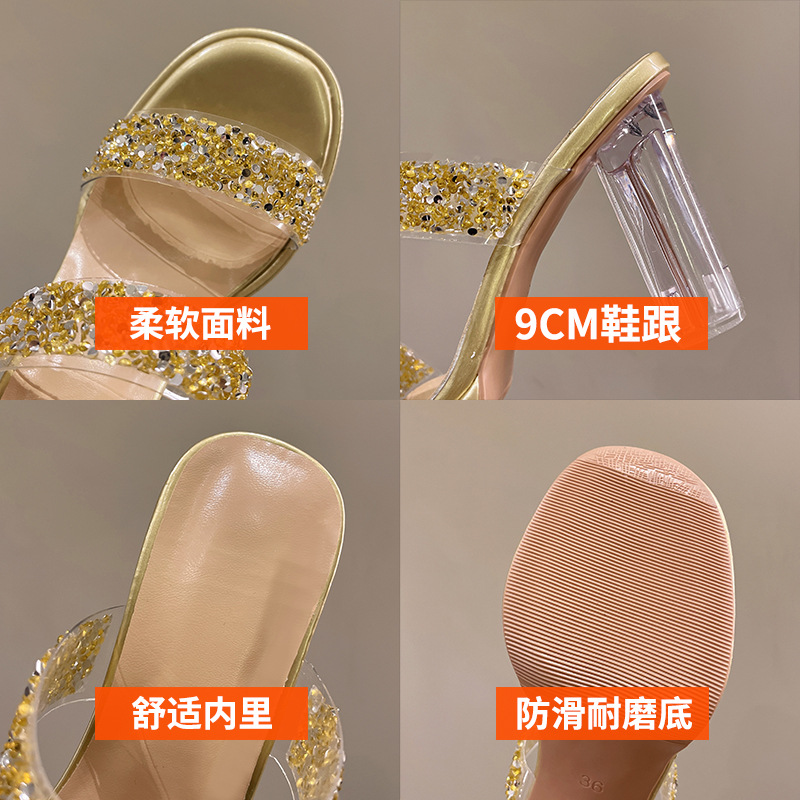 Большая женская обувь на каблуках тапочка на каблуке 2024 слово женская внешнее ношение летняя новая мода на каблуках со стразами