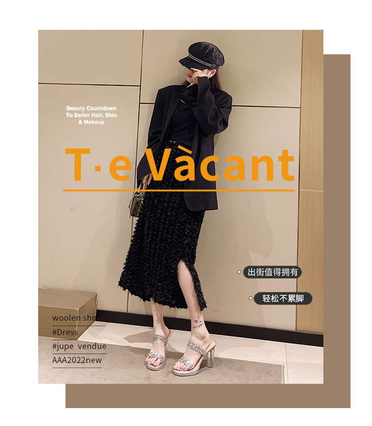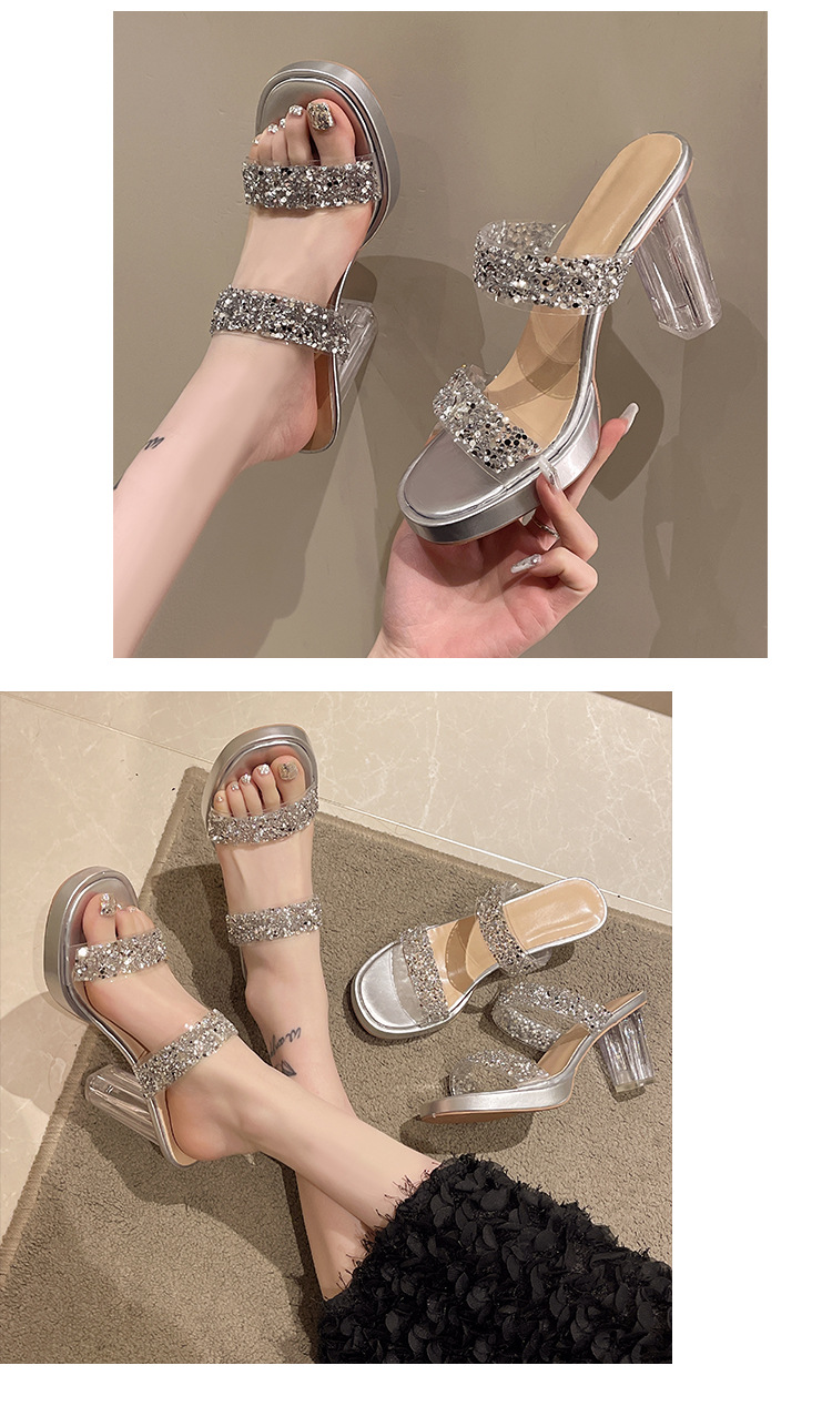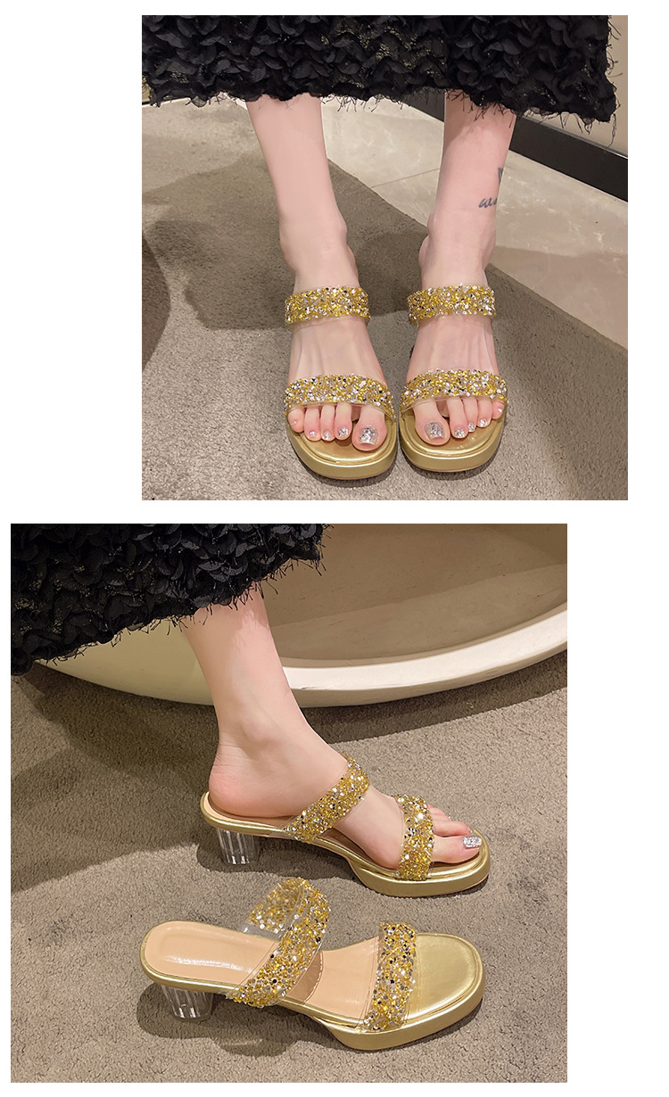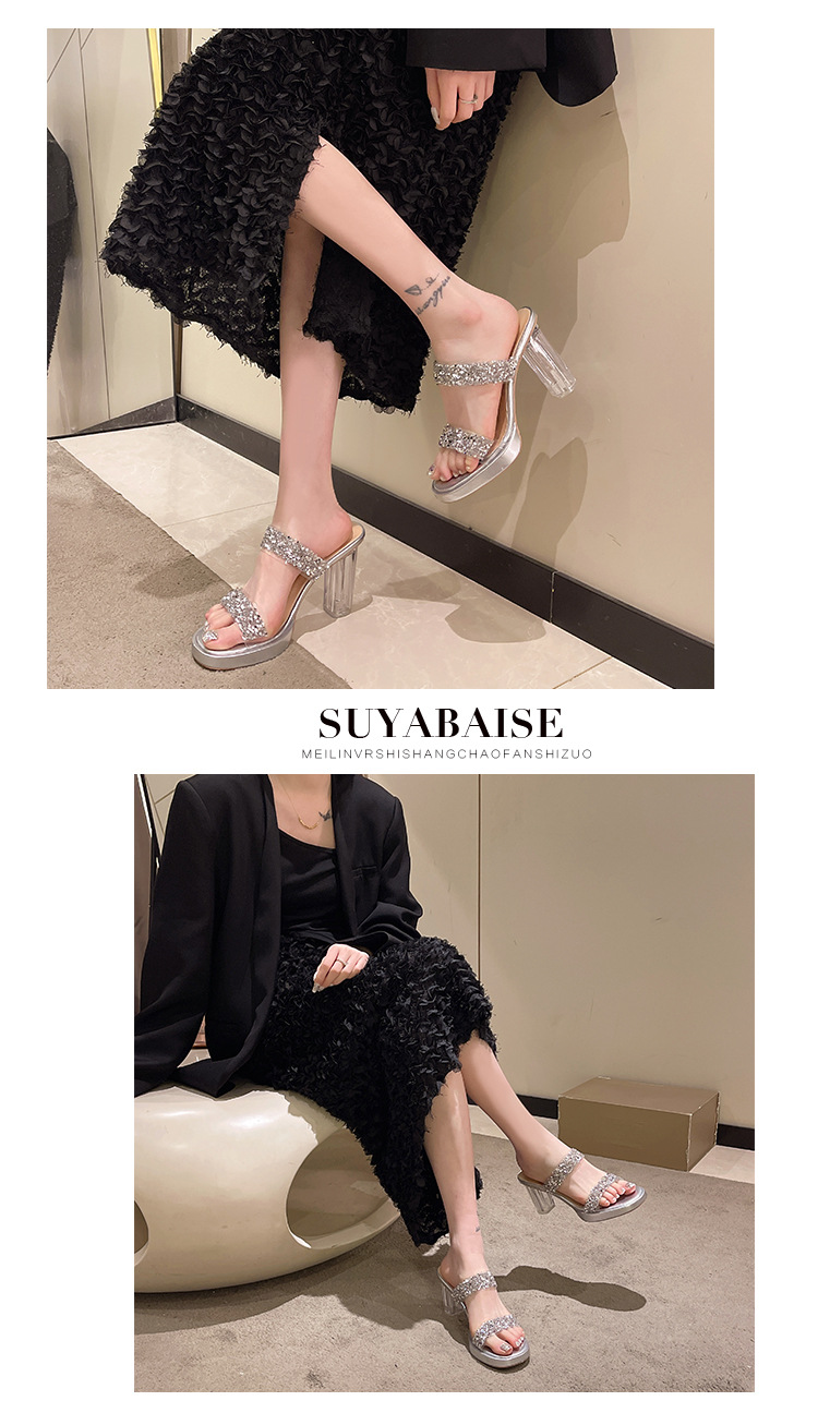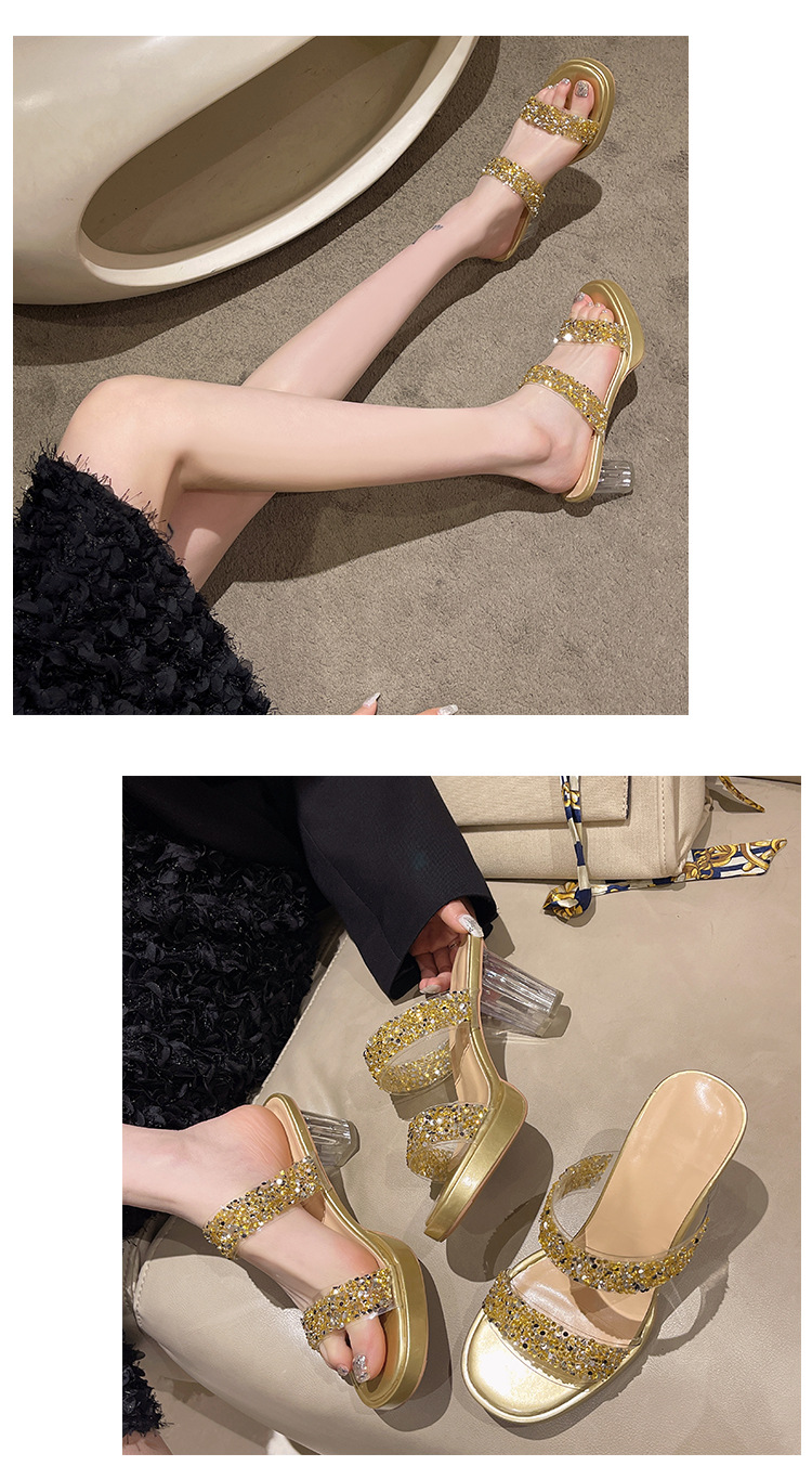 Большая женская обувь на каблуках тапочка на каблуке 2024 слово женская внешнее ношение летняя новая мода на каблуках со стразами