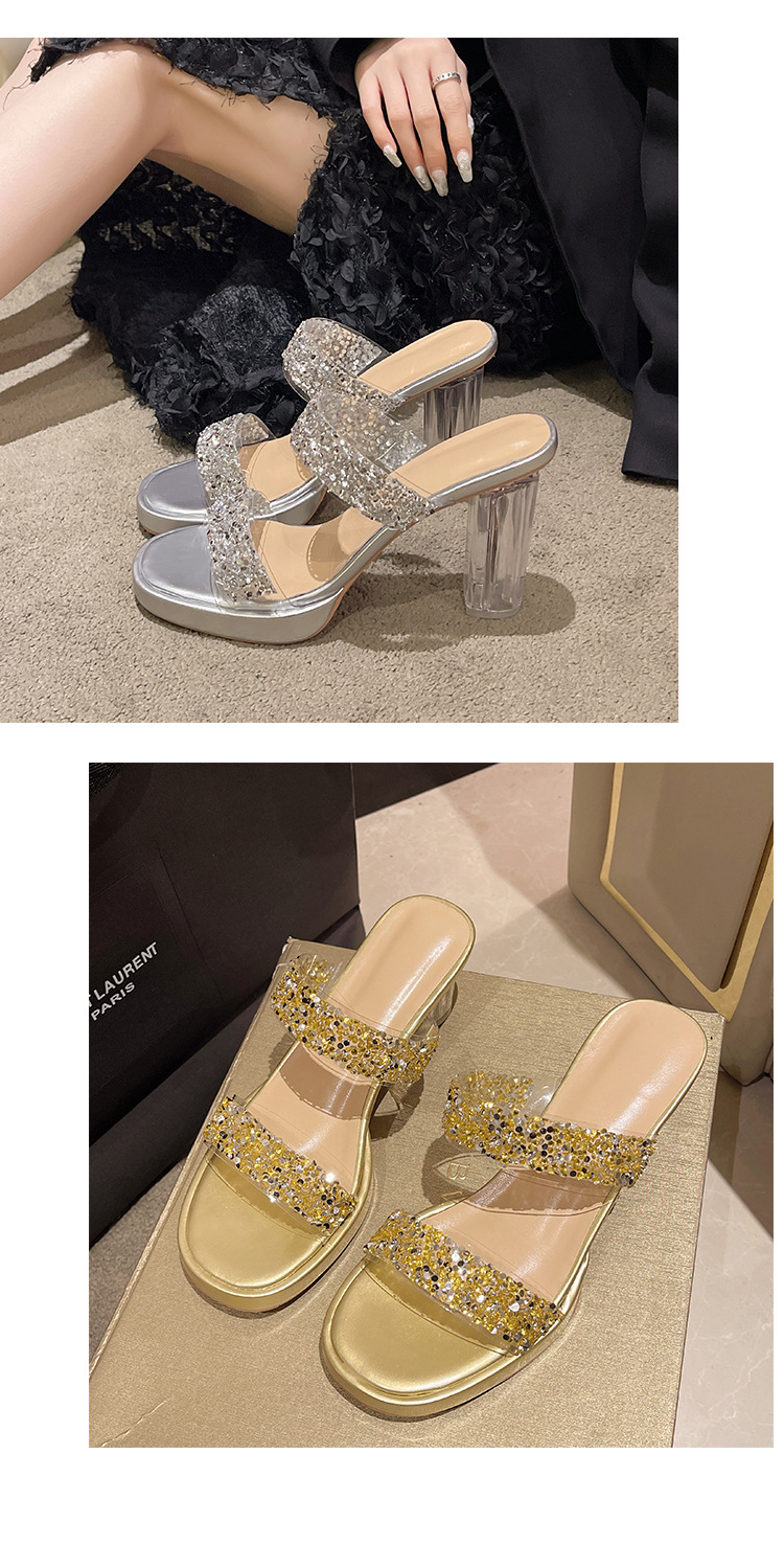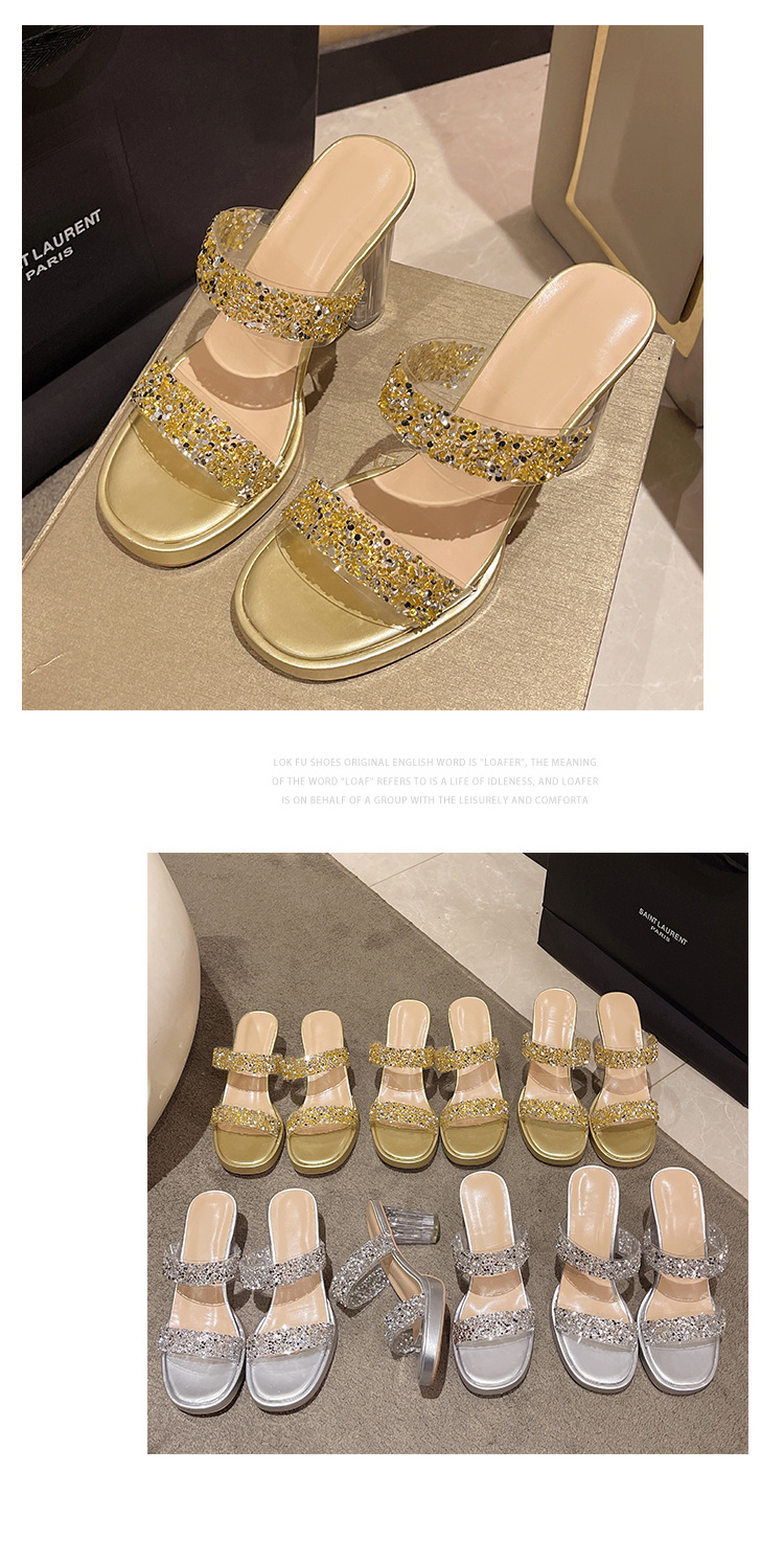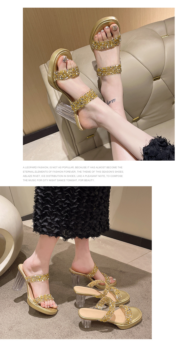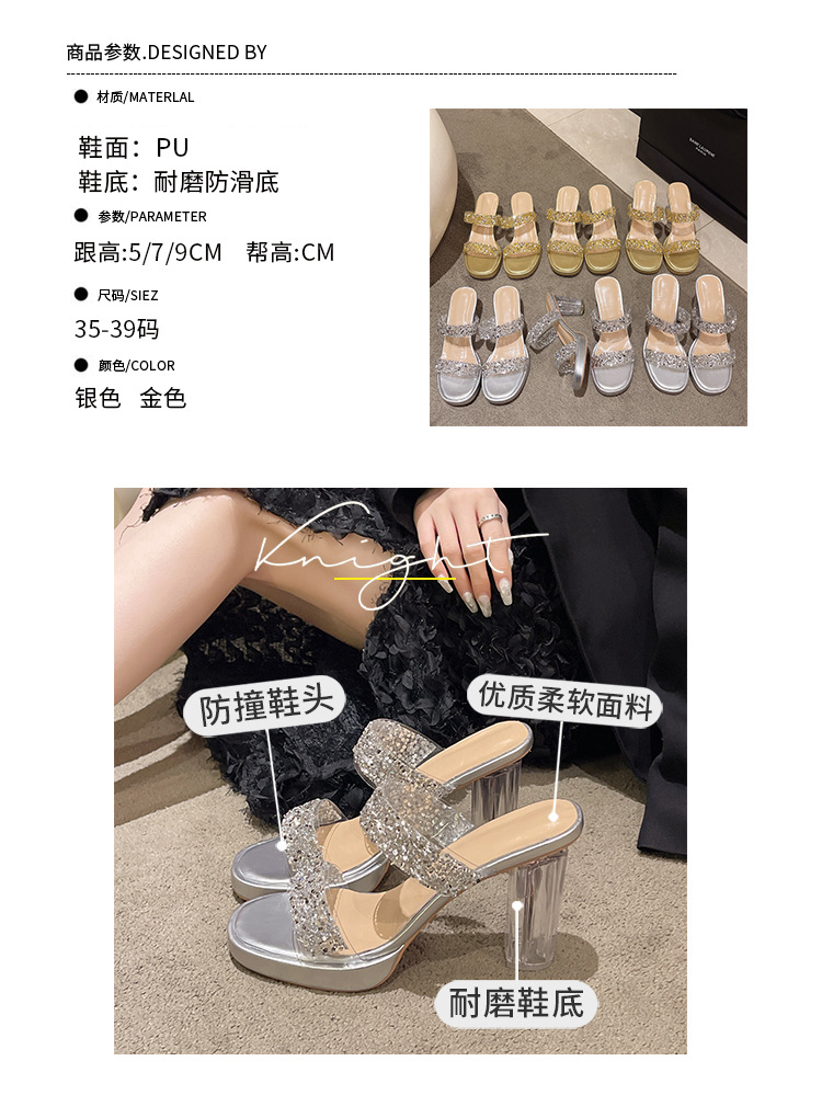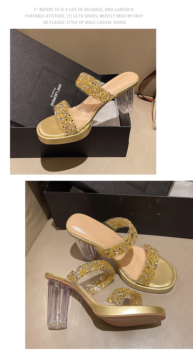 Большая женская обувь на каблуках тапочка на каблуке 2024 слово женская внешнее ношение летняя новая мода на каблуках со стразами