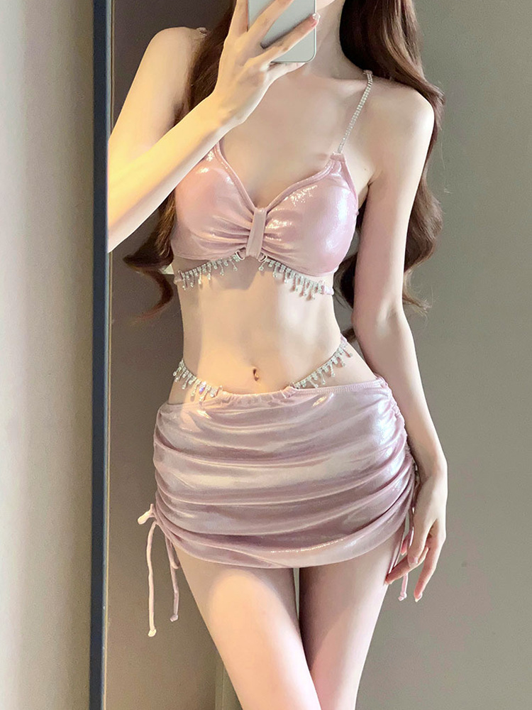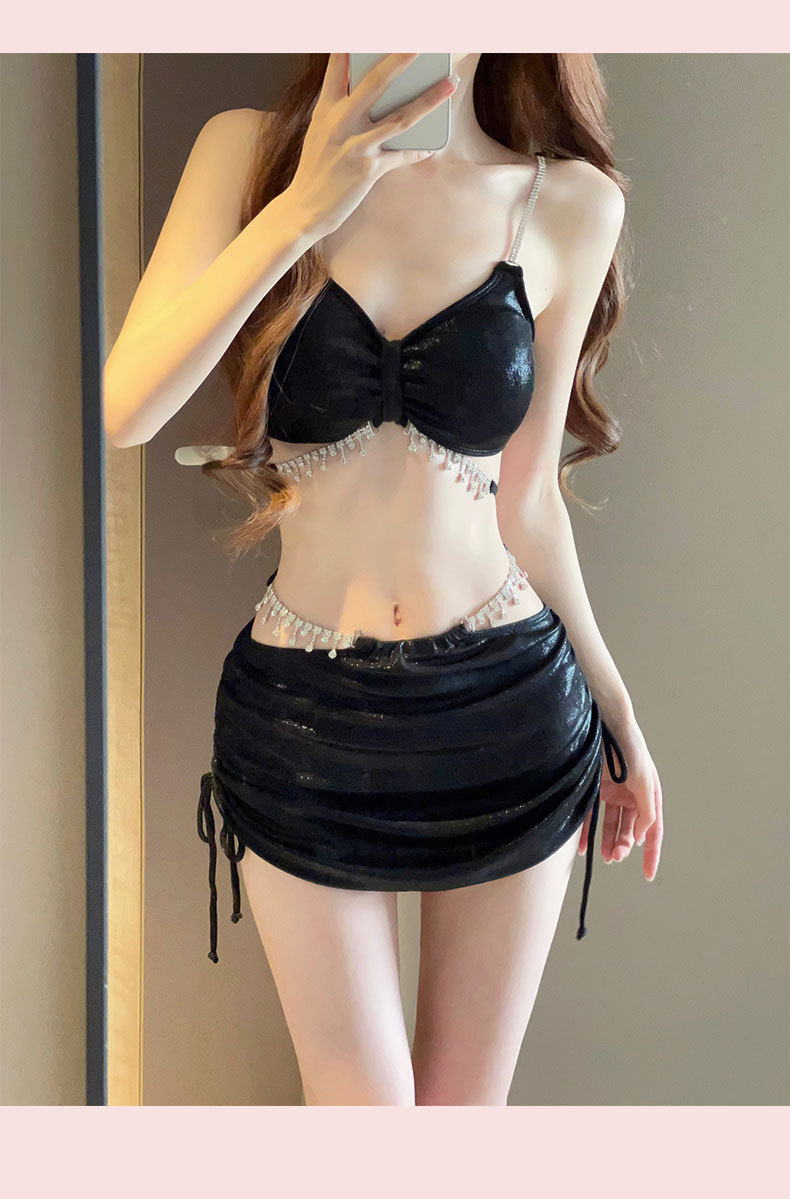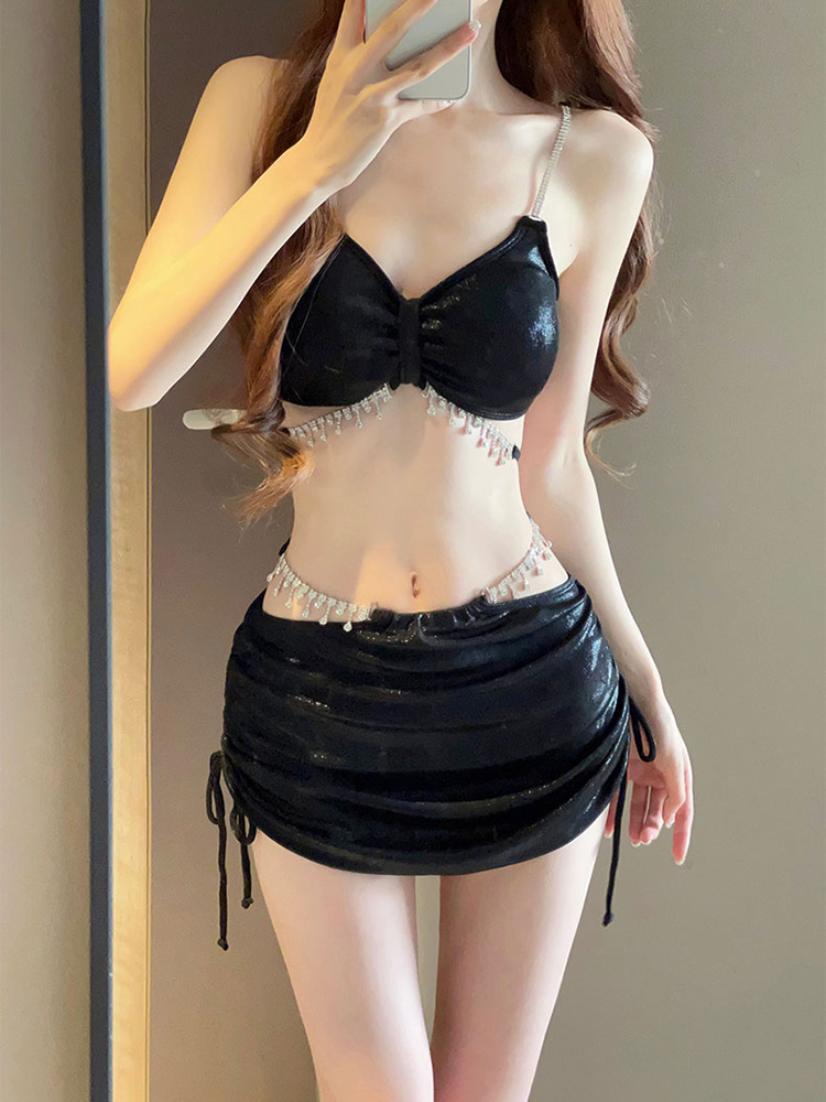 Новинка 2025 года, женский сексуальный купальник-бикини, комплект из трех предметов со стразами, высококачественный раздельный купальник для морского курорта, горячий источник