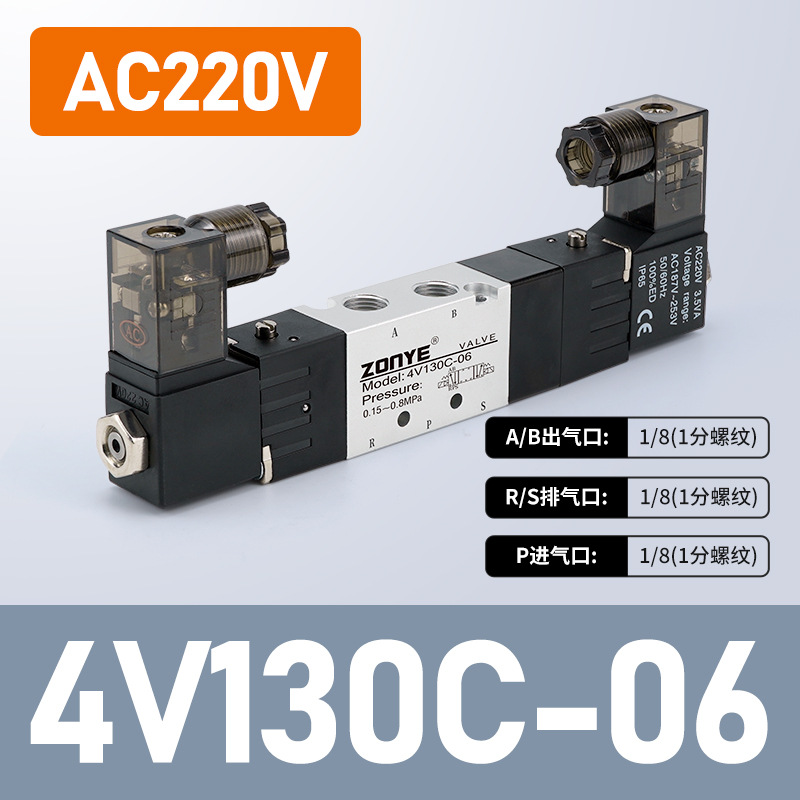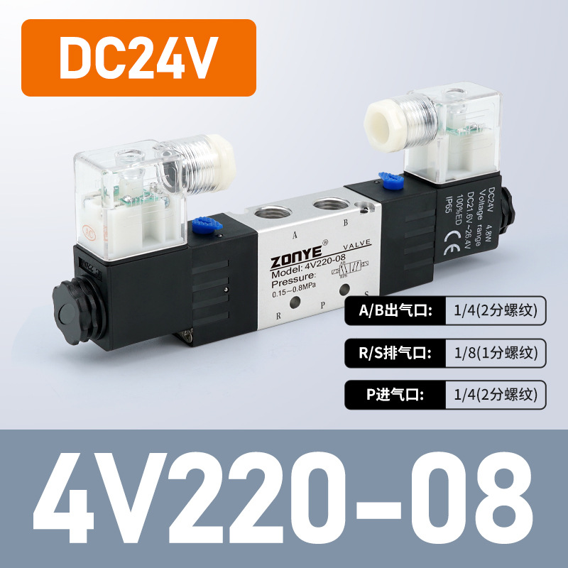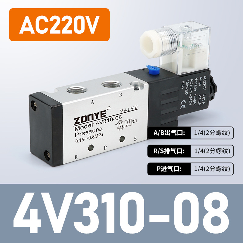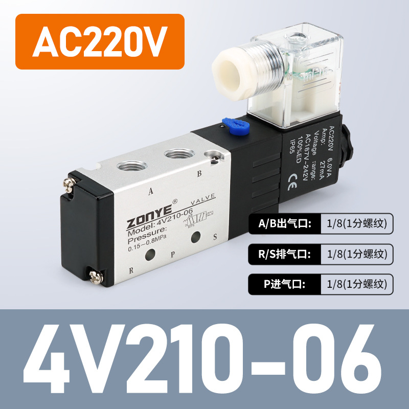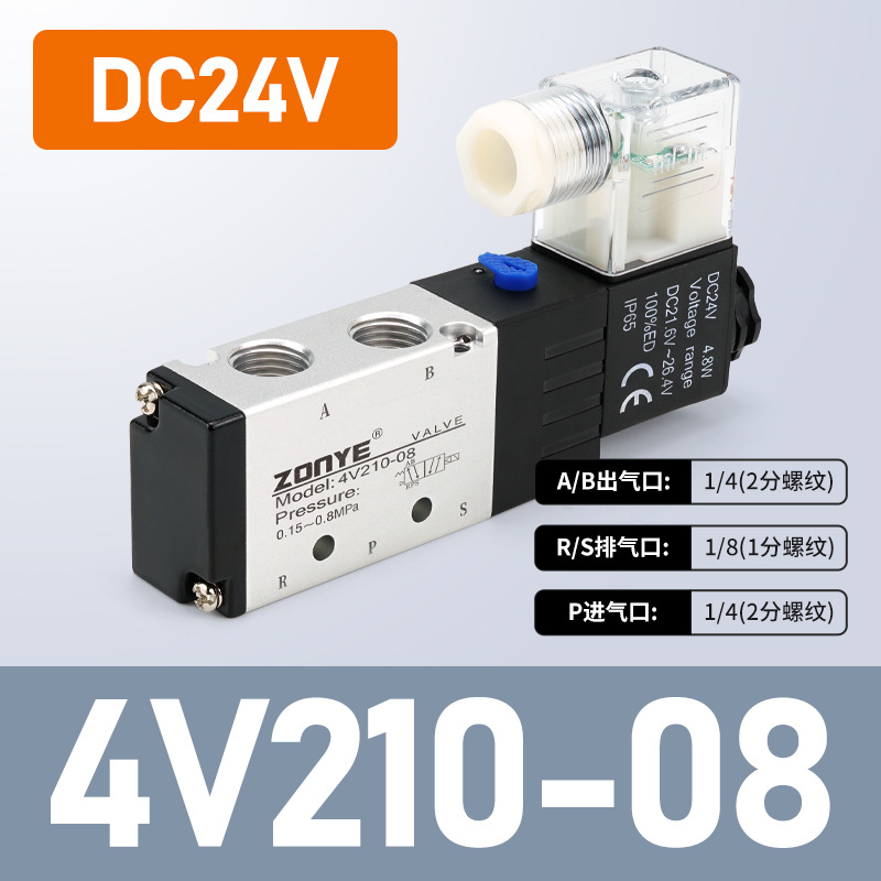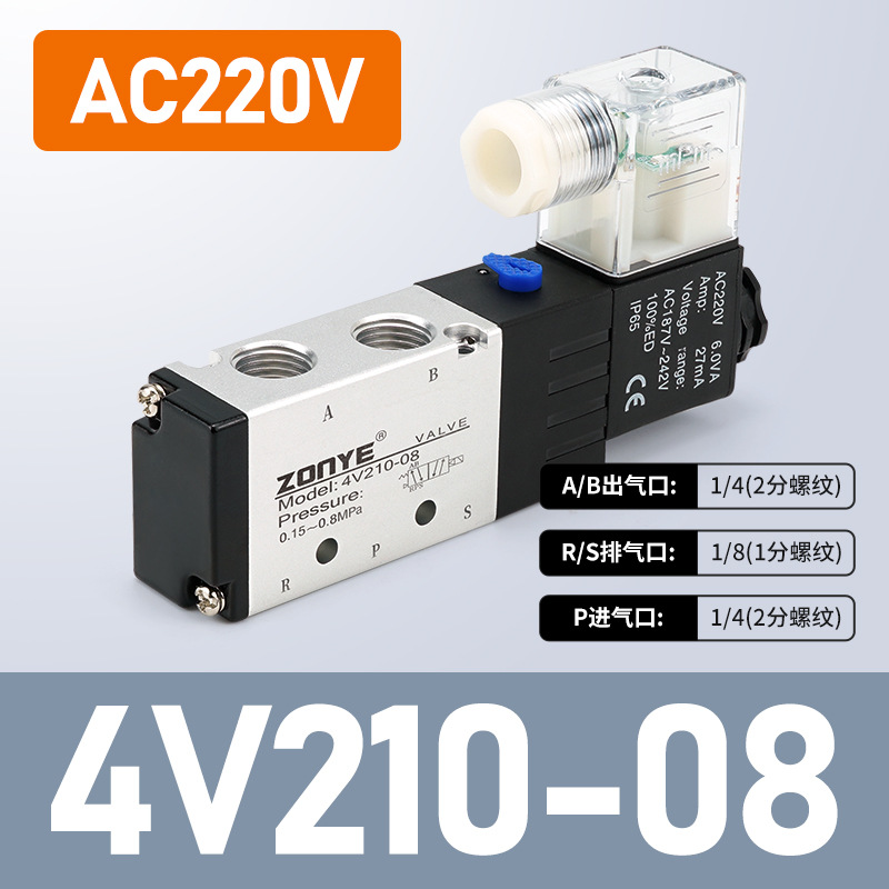 Пневматический электромагнитный клапан 4V210-08 двухразрядный Пятиходный DC24V/AC220V реначный электронный клапан 310/410 серебристый