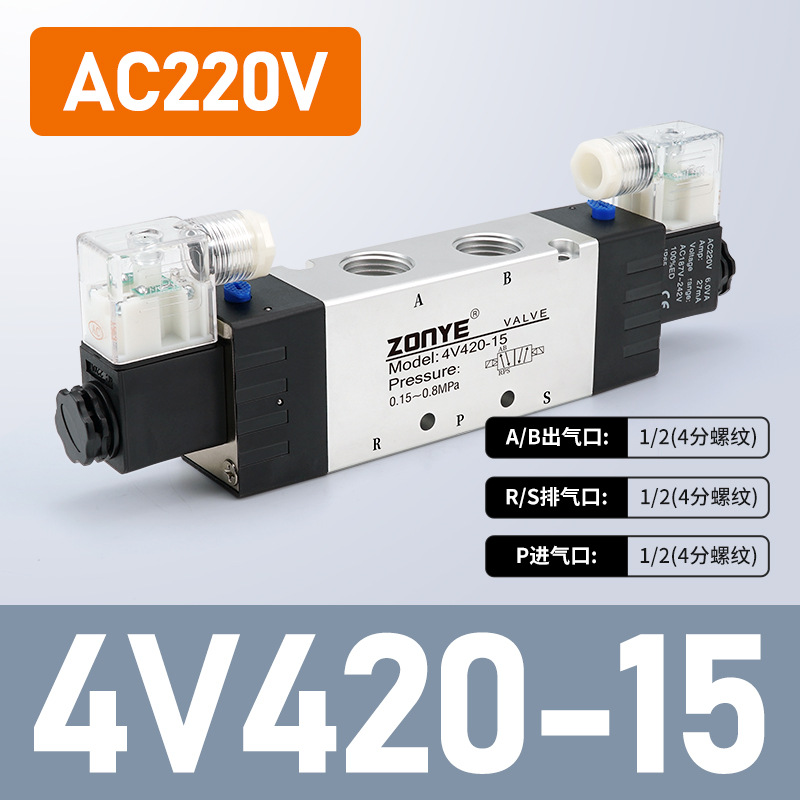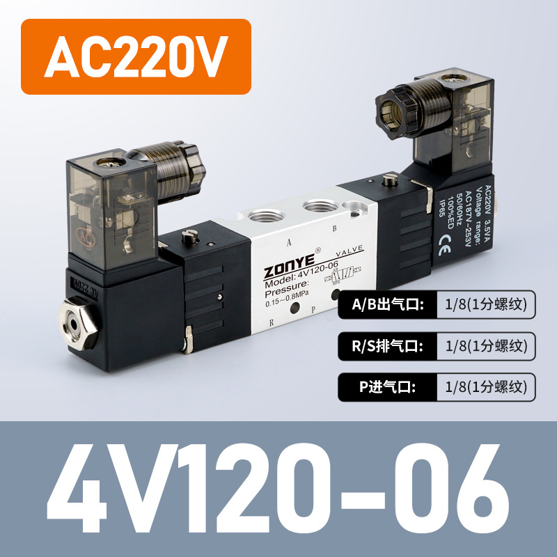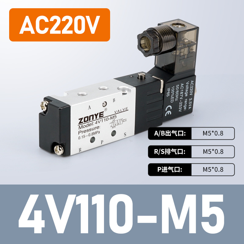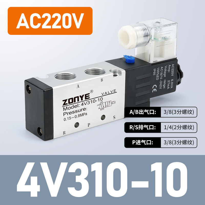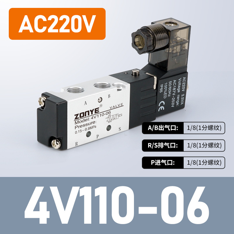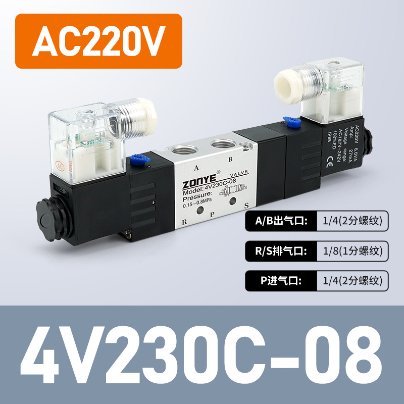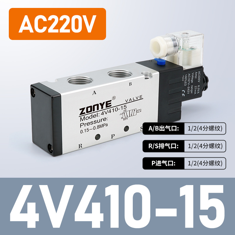 Пневматический электромагнитный клапан 4V210-08 двухразрядный Пятиходный DC24V/AC220V реначный электронный клапан 310/410 серебристый