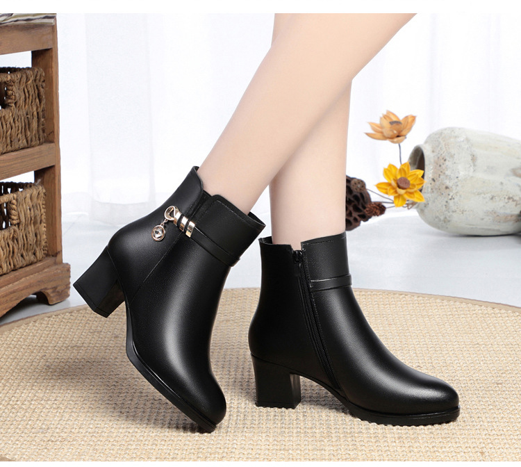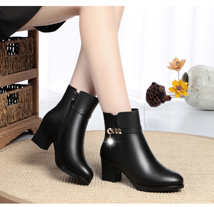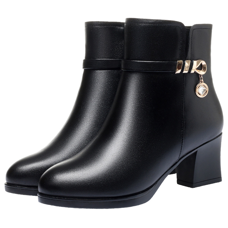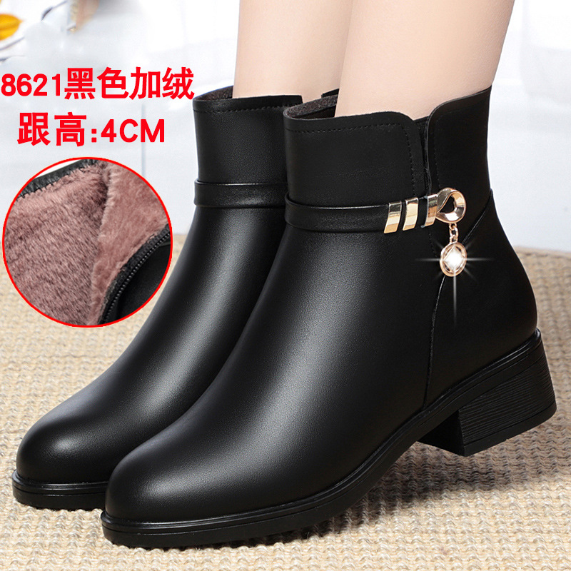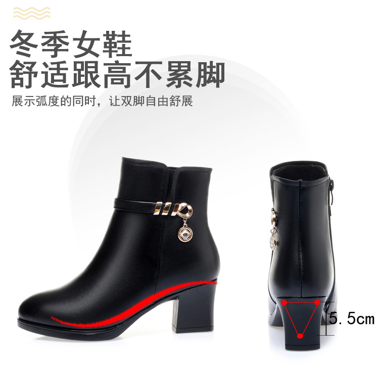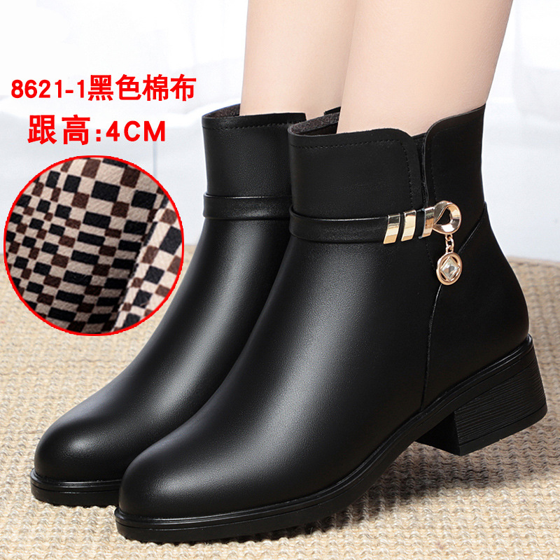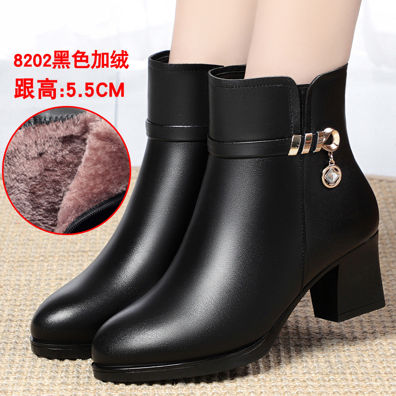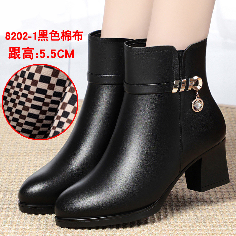 Зимние новые модные женские туфли удобные дикие кожаные сапоги на среднем каблуке
