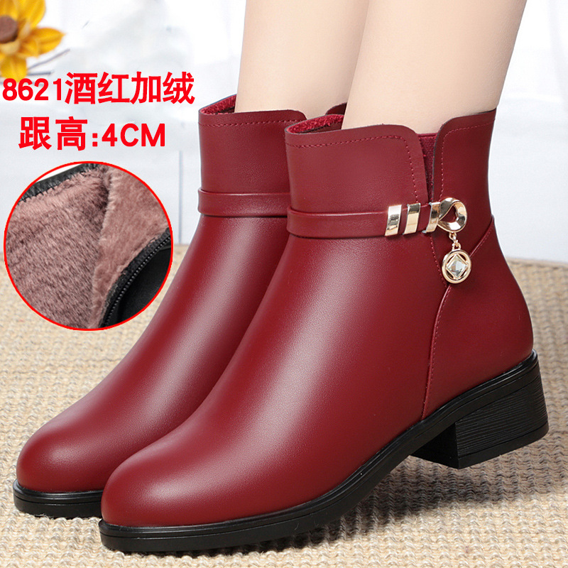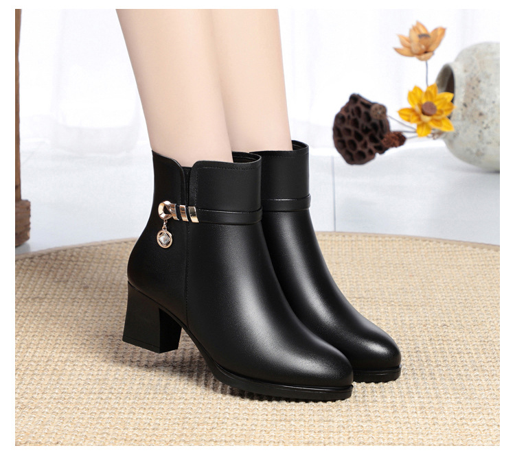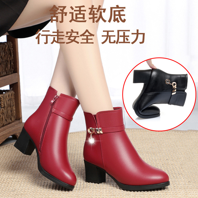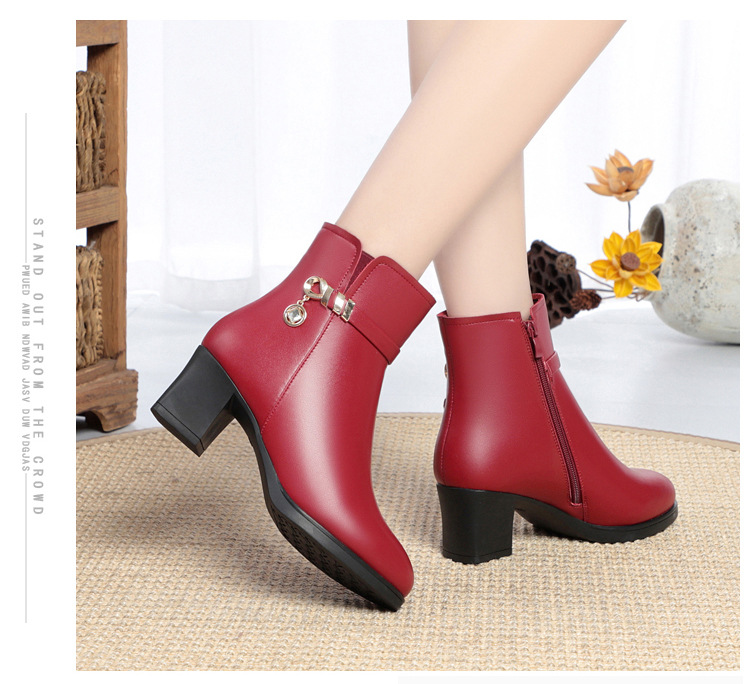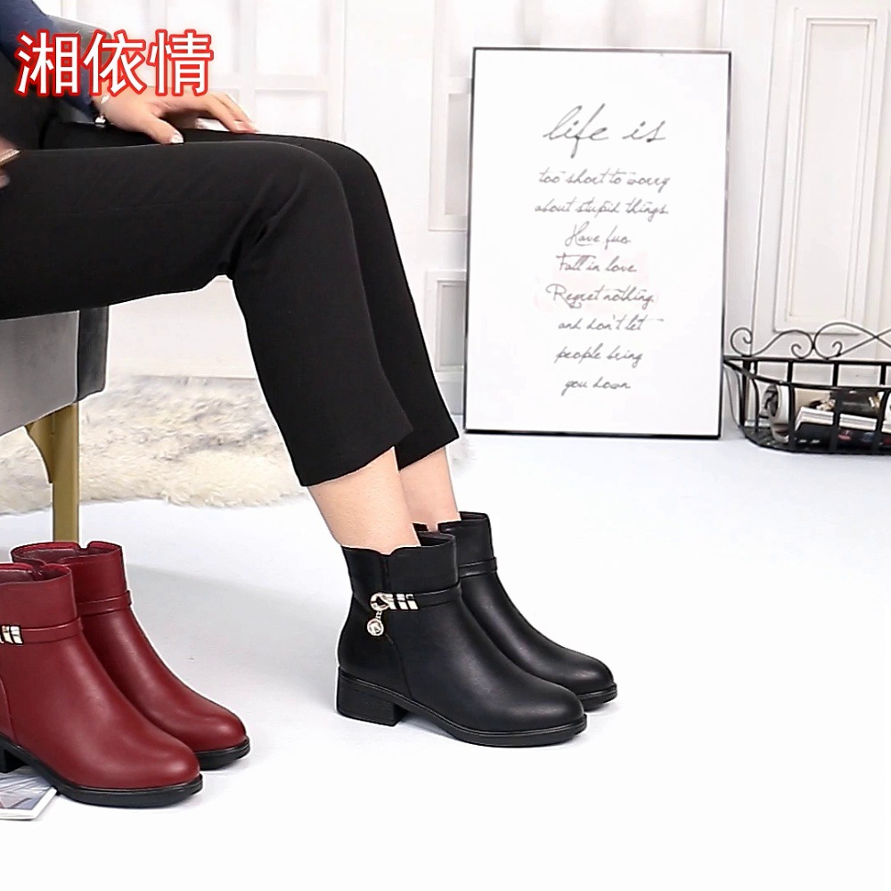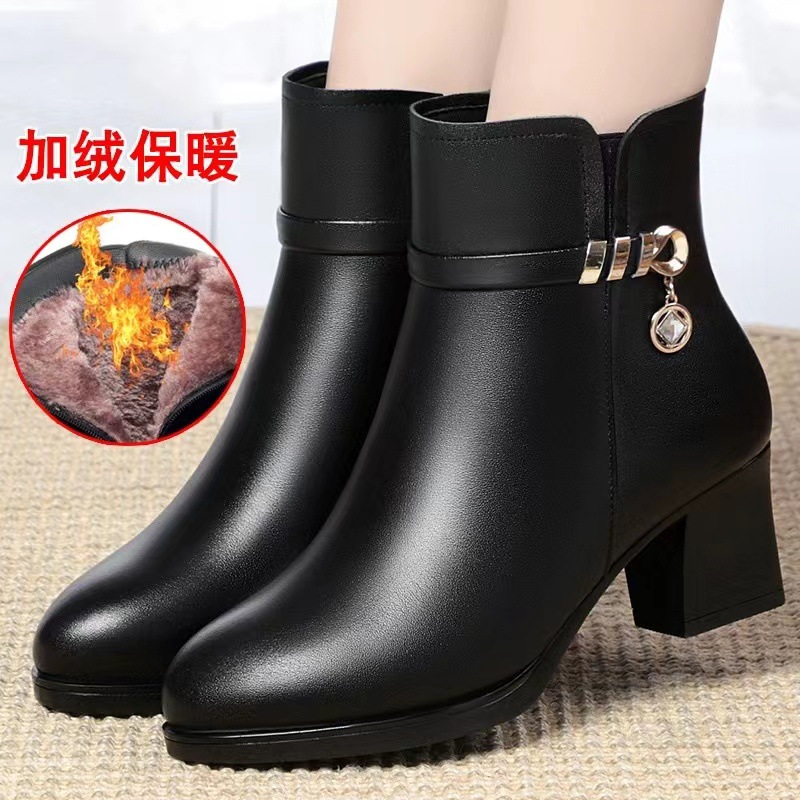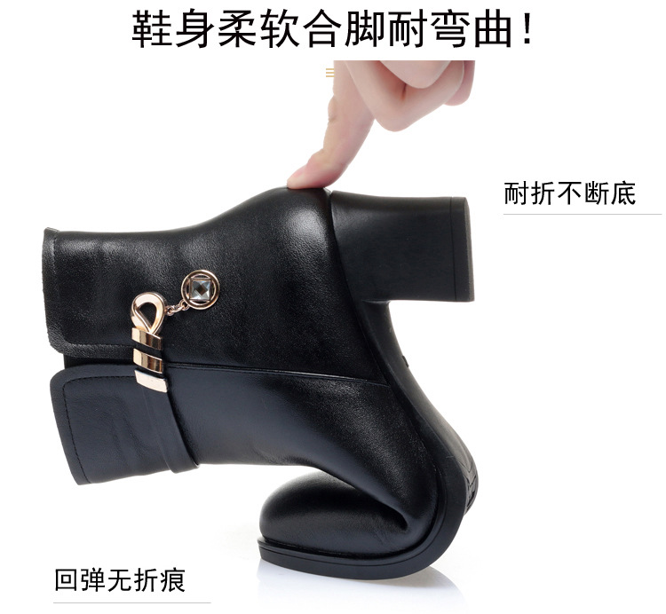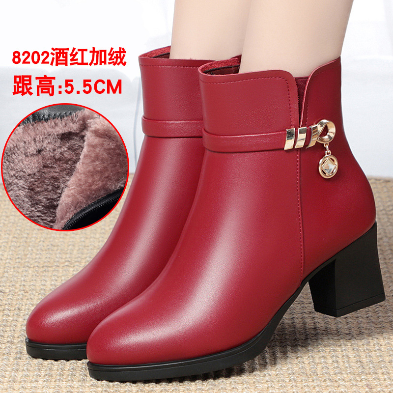 Зимние новые модные женские туфли удобные дикие кожаные сапоги на среднем каблуке