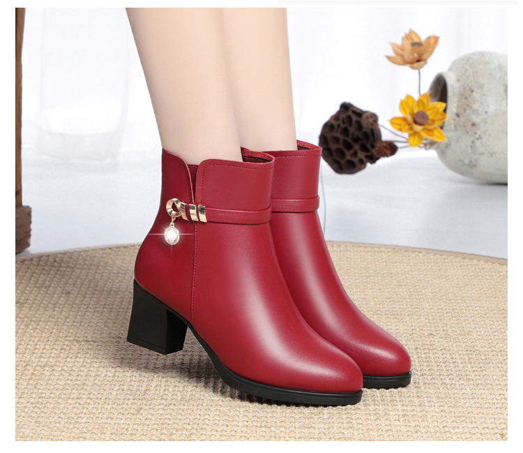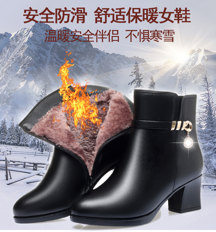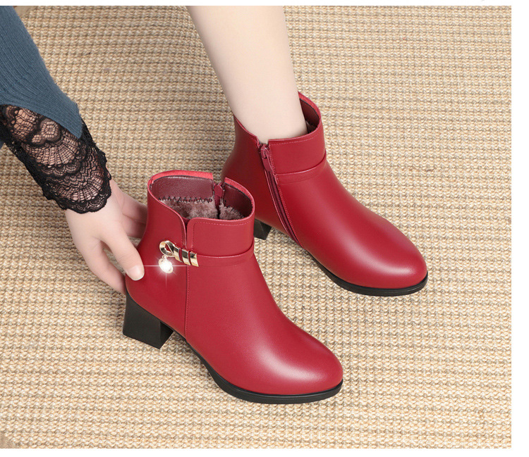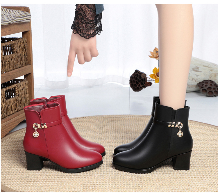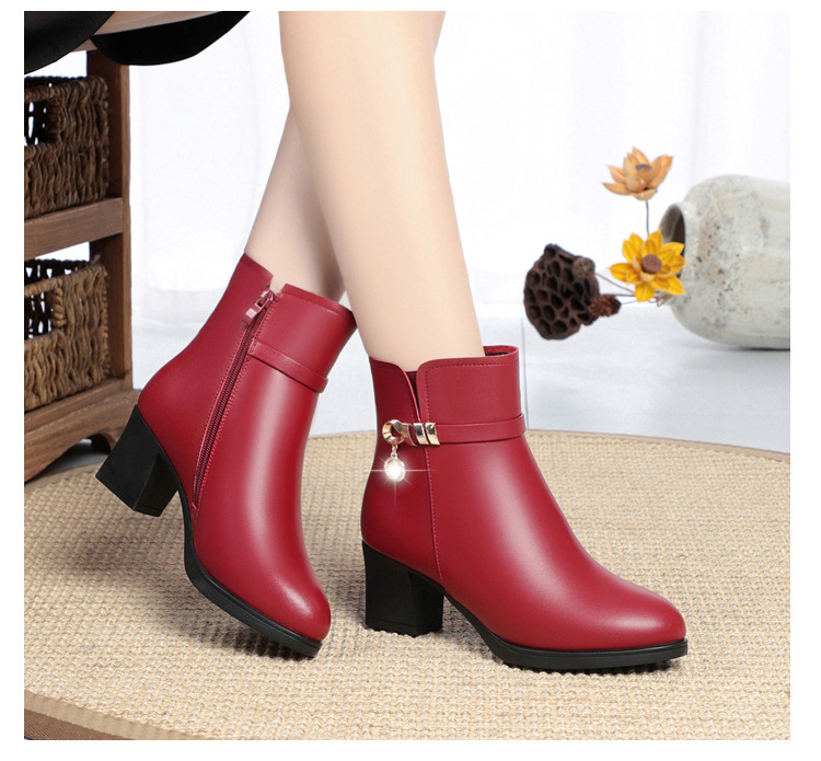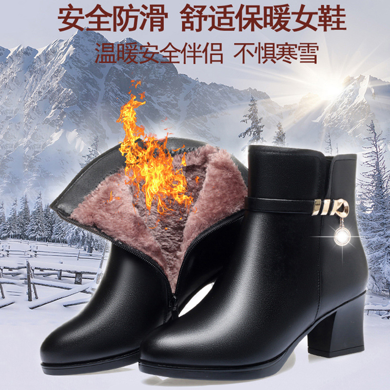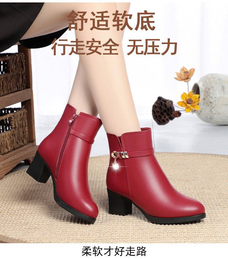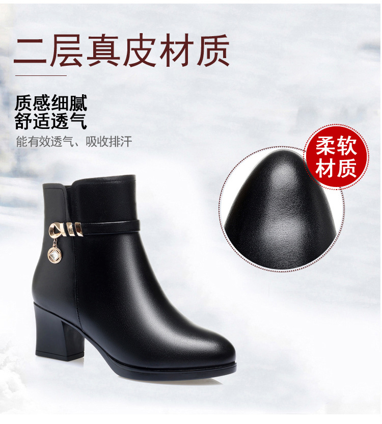 Зимние новые модные женские туфли удобные дикие кожаные сапоги на среднем каблуке