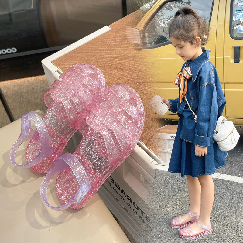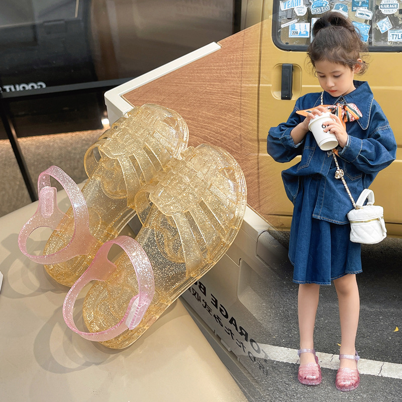 Баотоу сандалии Детская обувь для девочек Баотоу Сандалии 2024 Летние новые детские нескользящие мягкие подошвы детская желе обувь