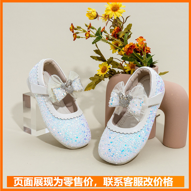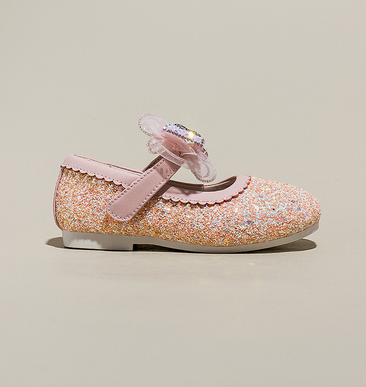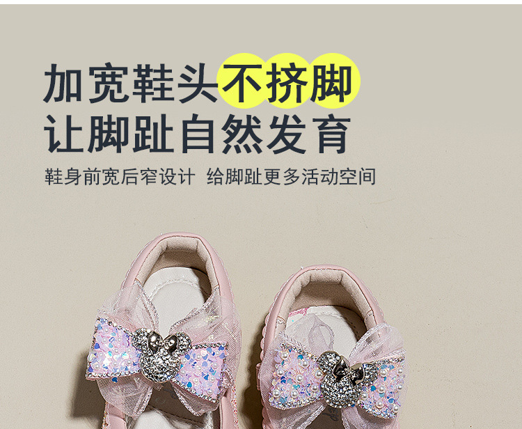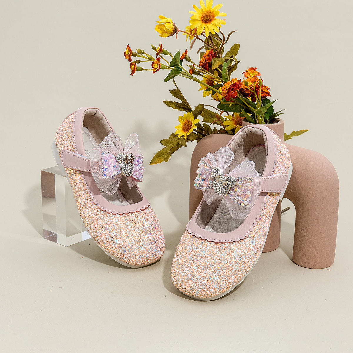 Детская обувь, туфли принцессы для девочек, осень 2023, новый стиль, туфли принцессы на мягкой подошве с бантом, Нескользящие туфли со стразами и кристаллами