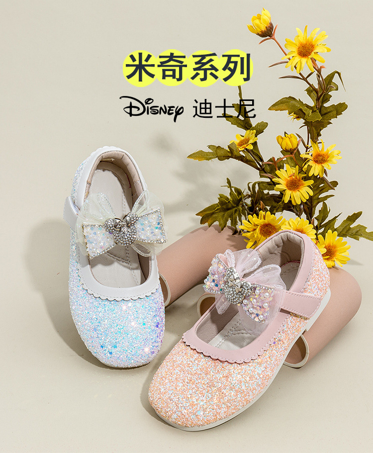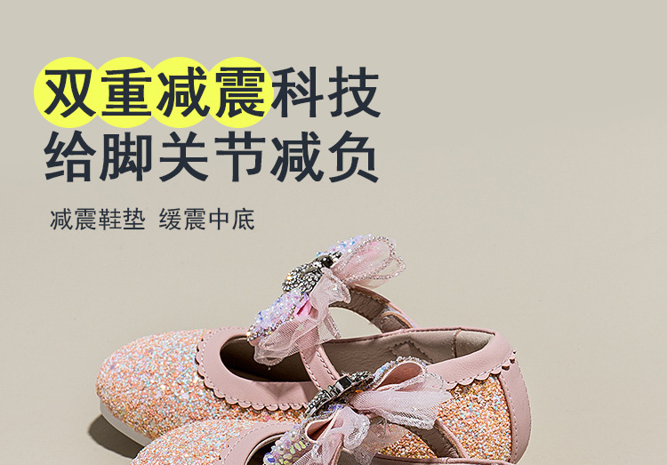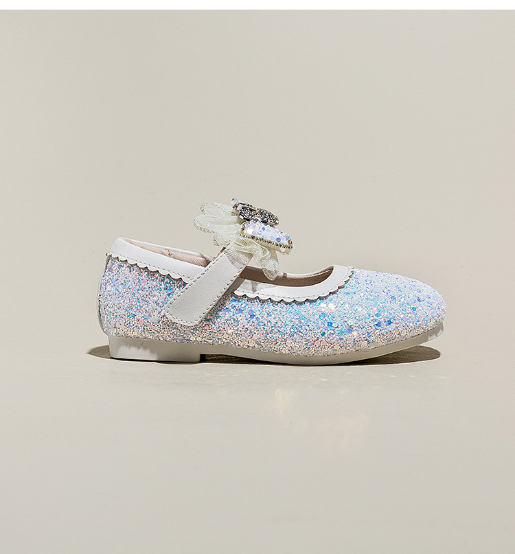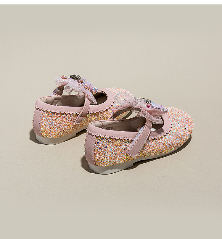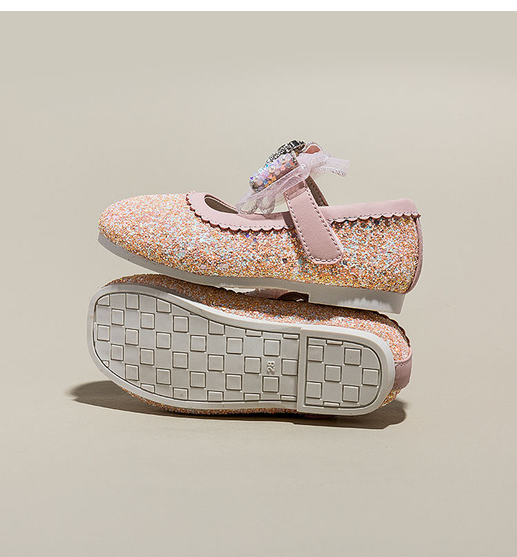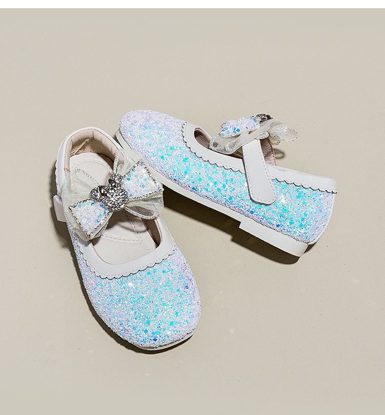Детская обувь, туфли принцессы для девочек, осень 2023, новый стиль, туфли принцессы на мягкой подошве с бантом, Нескользящие туфли со стразами и кристаллами