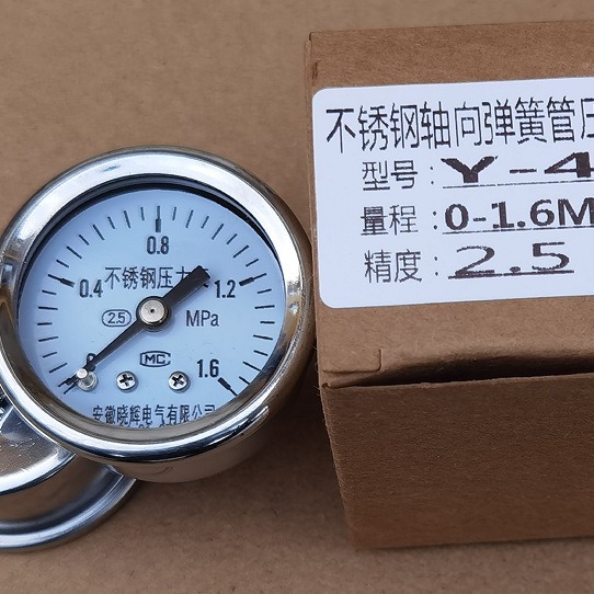 Y-40不锈钢轴向型压力表、碳钢材质普通压力表、不锈钢压力表、压力表Y-40,Y-40 压力表,一般压力表适用测量无爆炸,不结晶,不凝固,对铜和铜合金无腐蚀作用的液体、气体或蒸汽的压力。