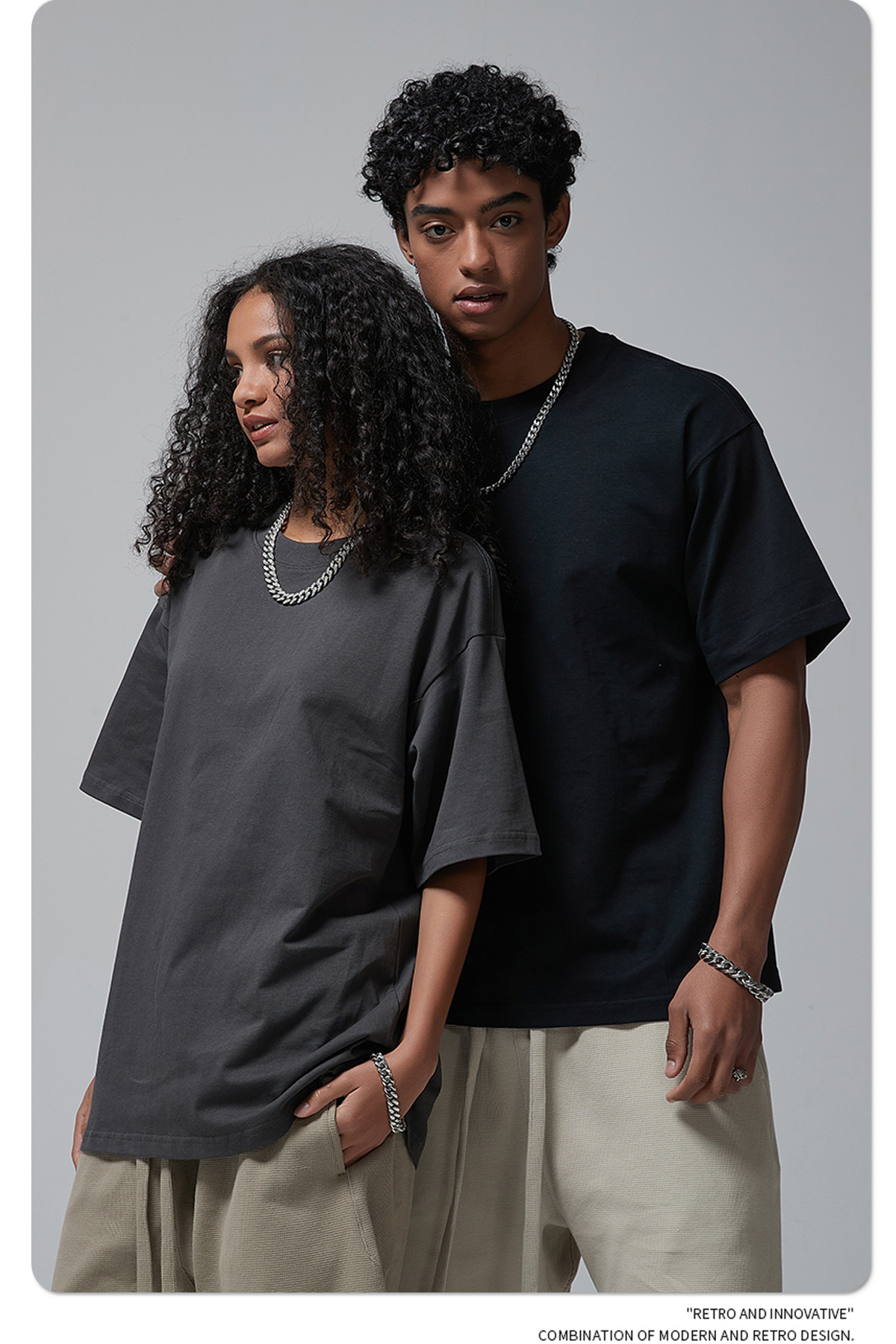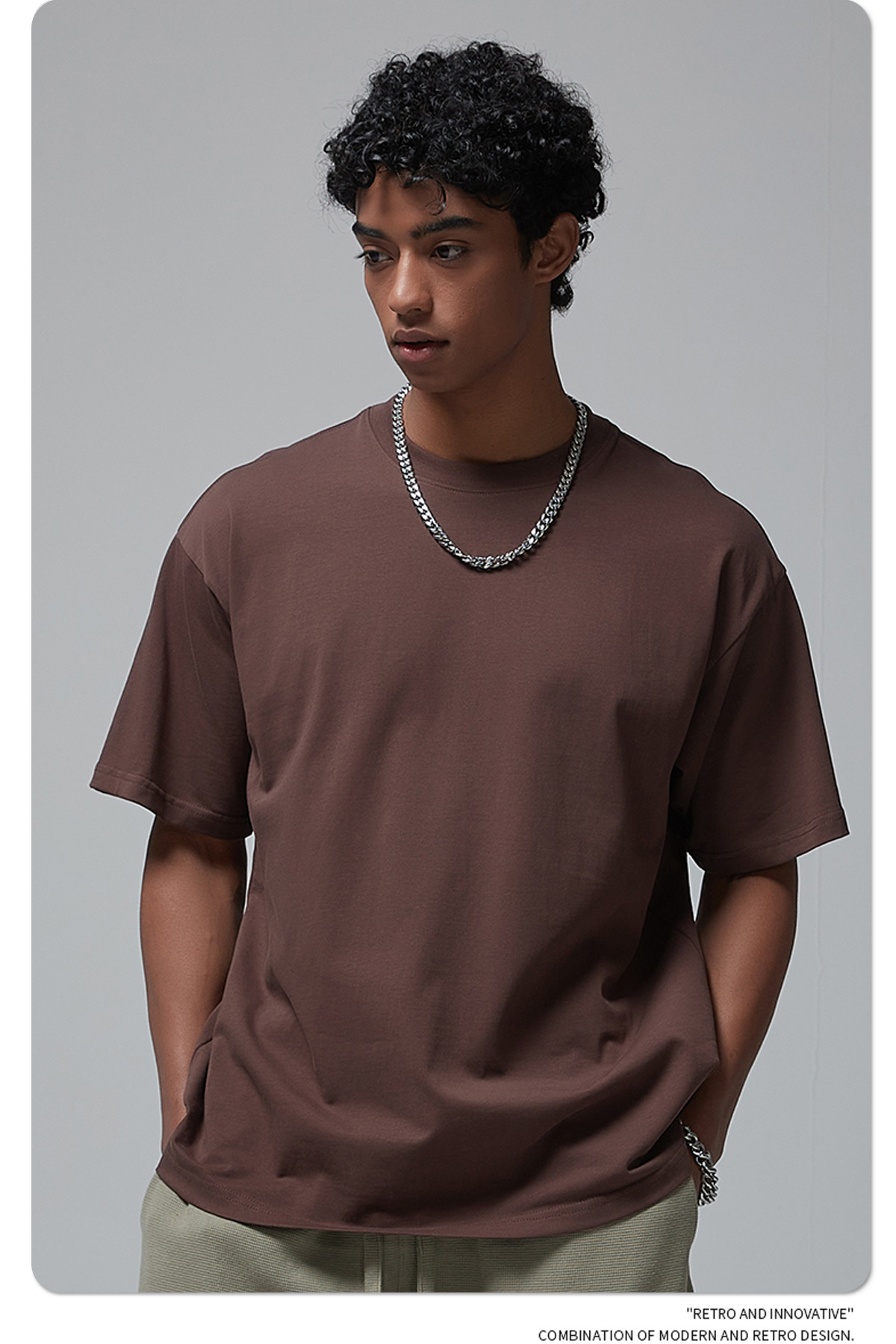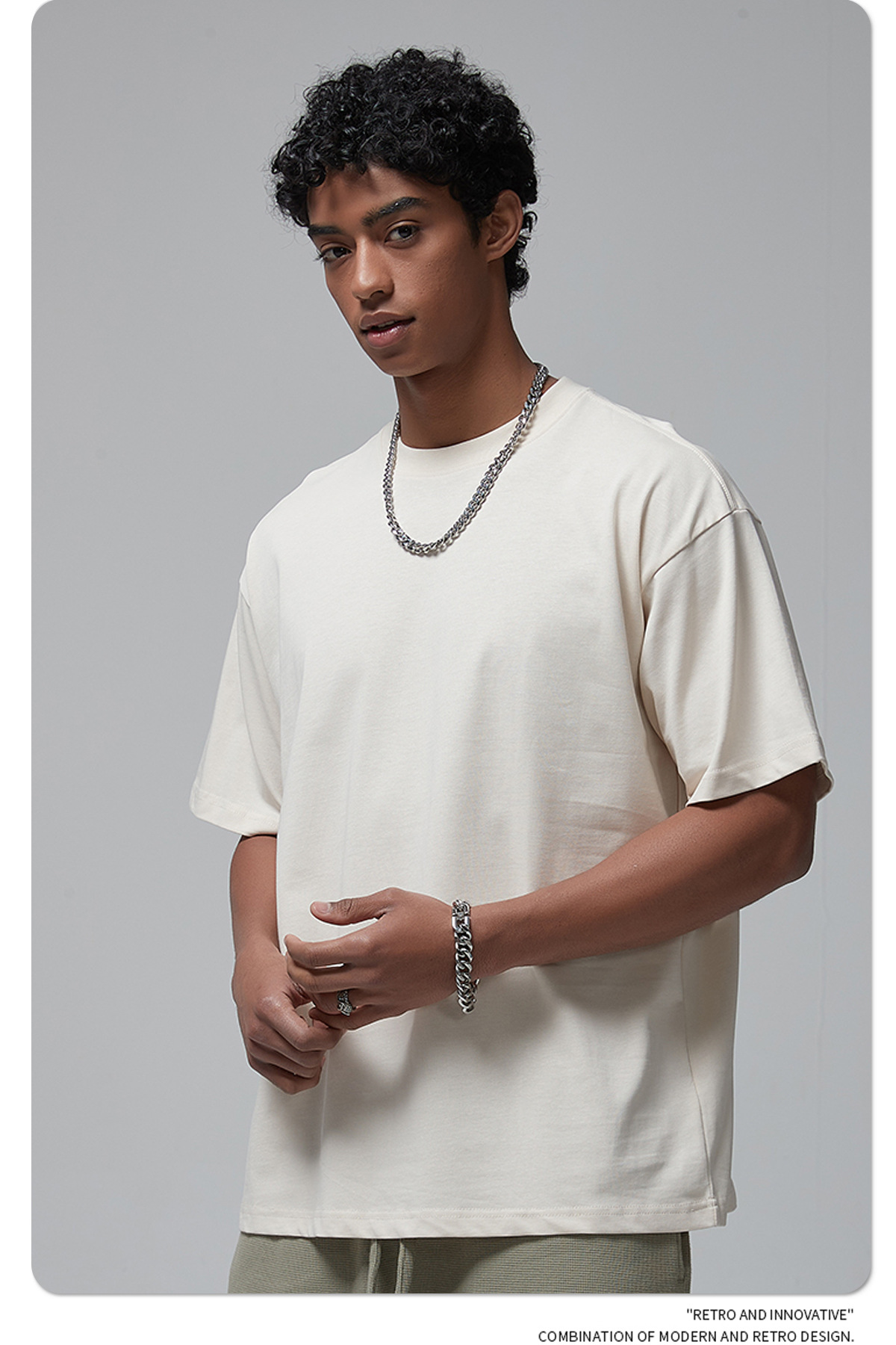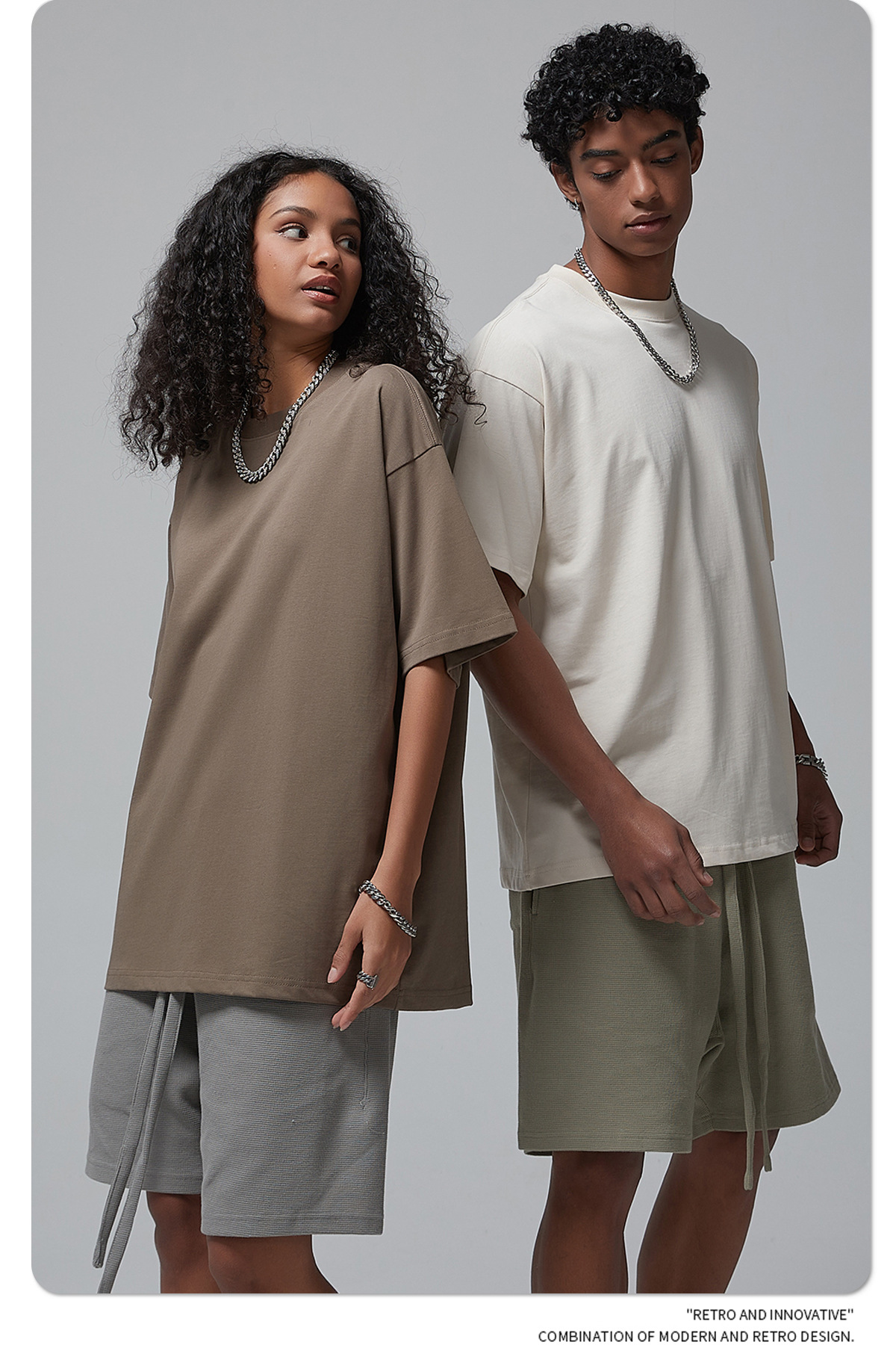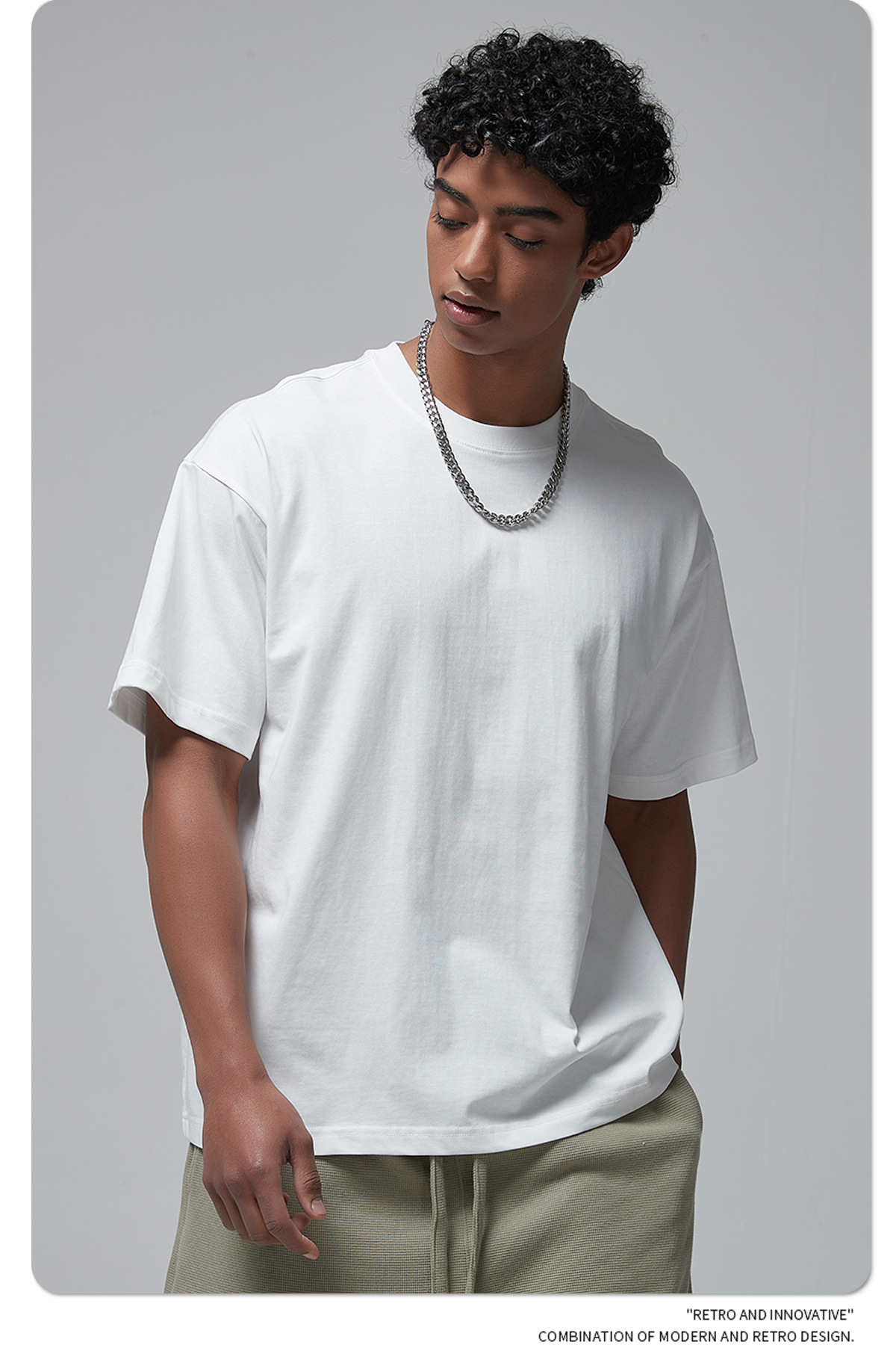 Мужская футболка унисекс из чистого хлопка, летняя, 2025, двойная пряжа, 230 г, со спущенным плечом, свободный крой, в американском стиле, модная, брендовая, без принта, с коротким рукавом
