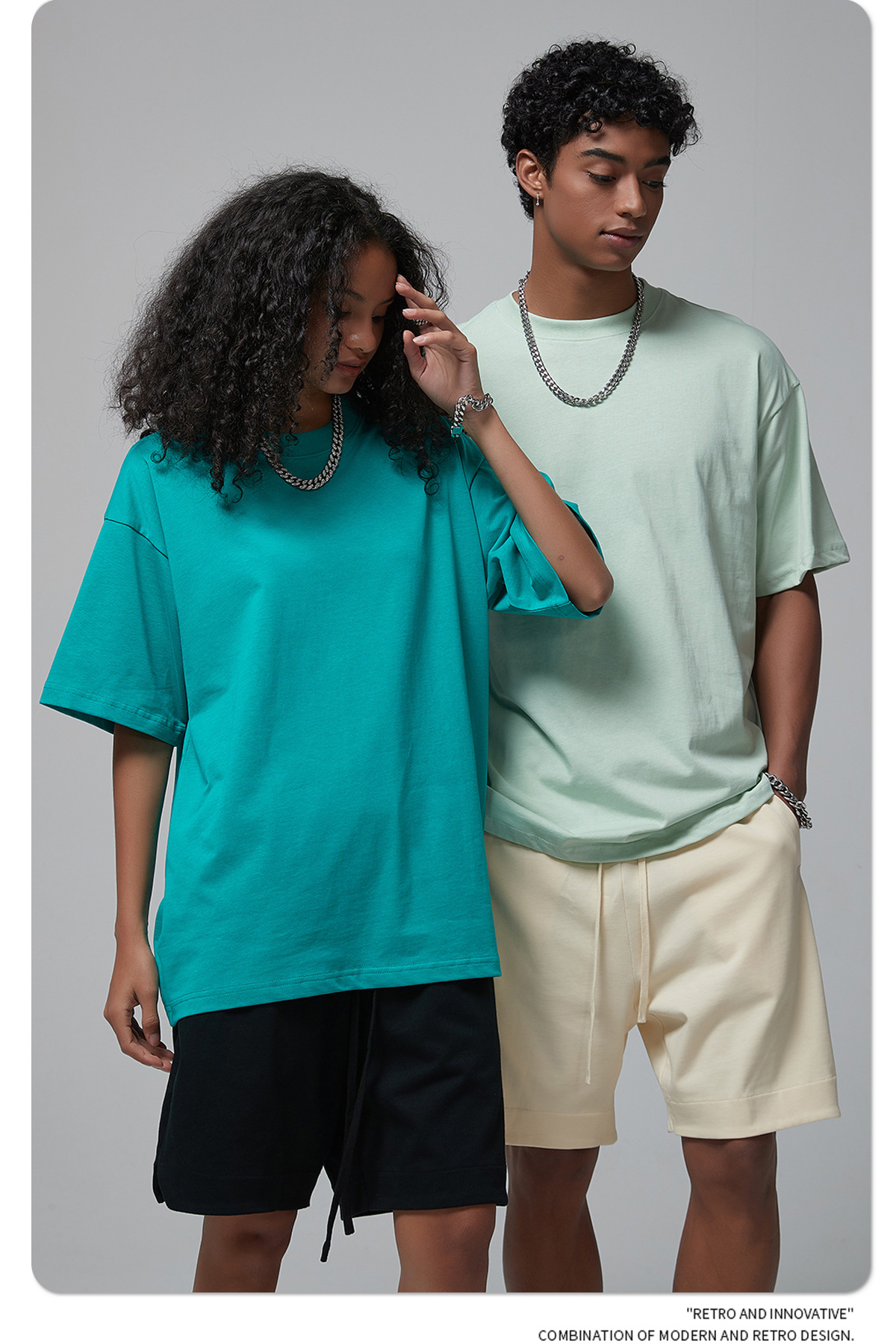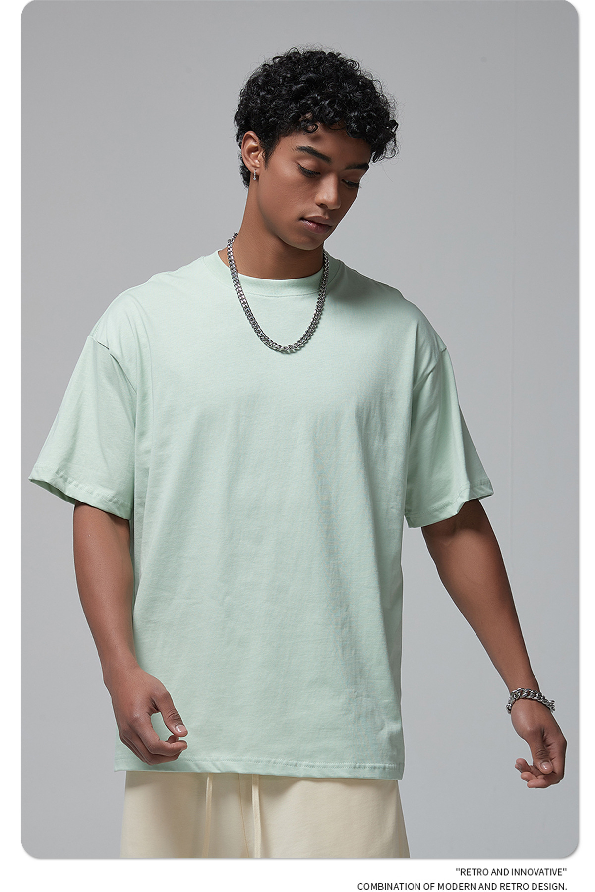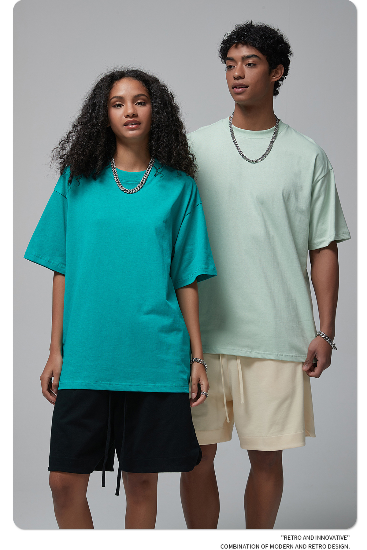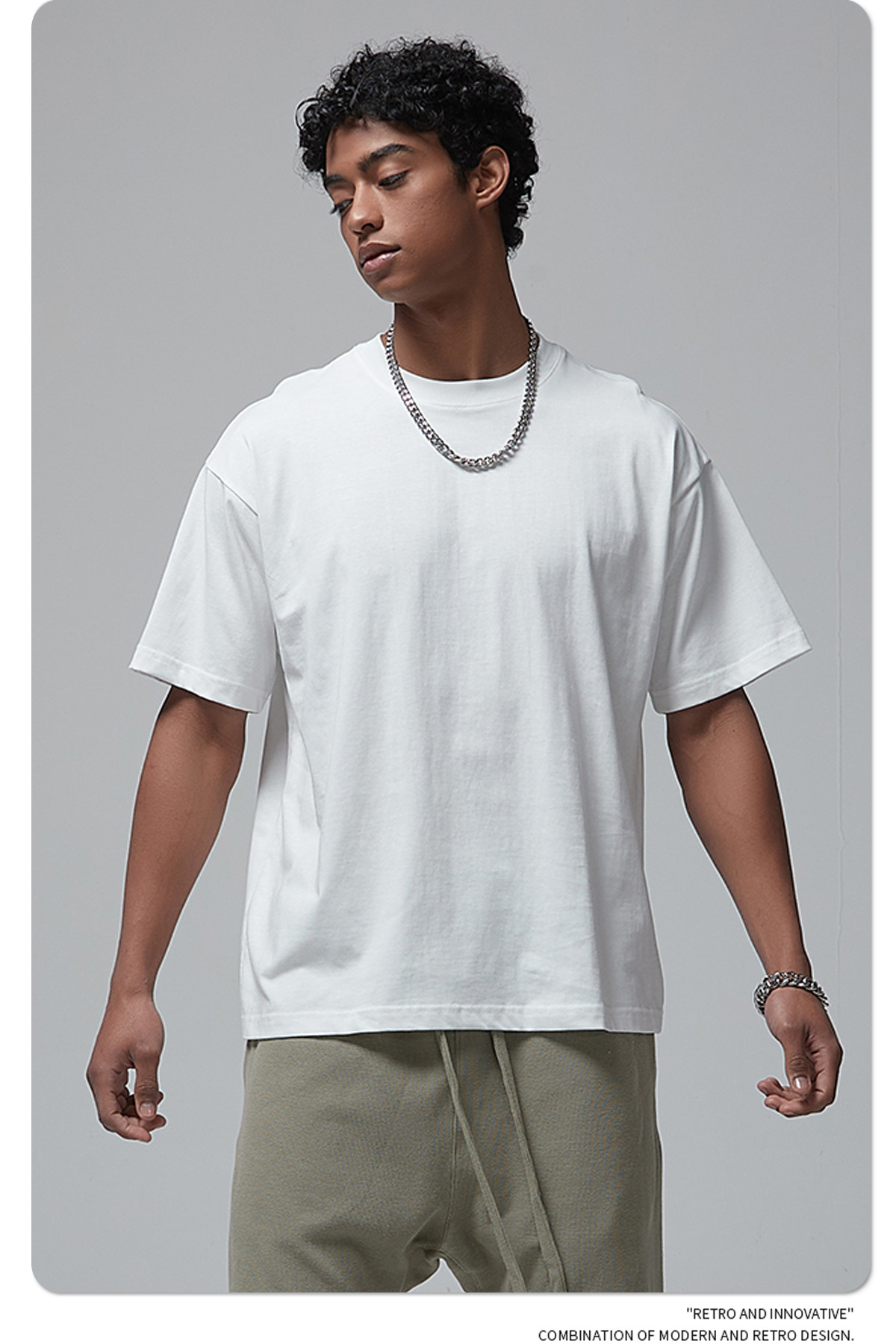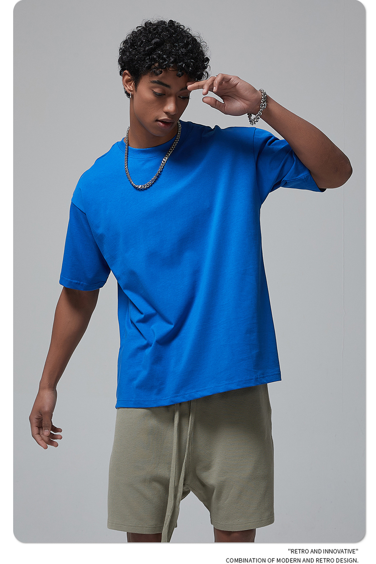 Мужская футболка унисекс из чистого хлопка, летняя, 2025, двойная пряжа, 230 г, со спущенным плечом, свободный крой, в американском стиле, модная, брендовая, без принта, с коротким рукавом
