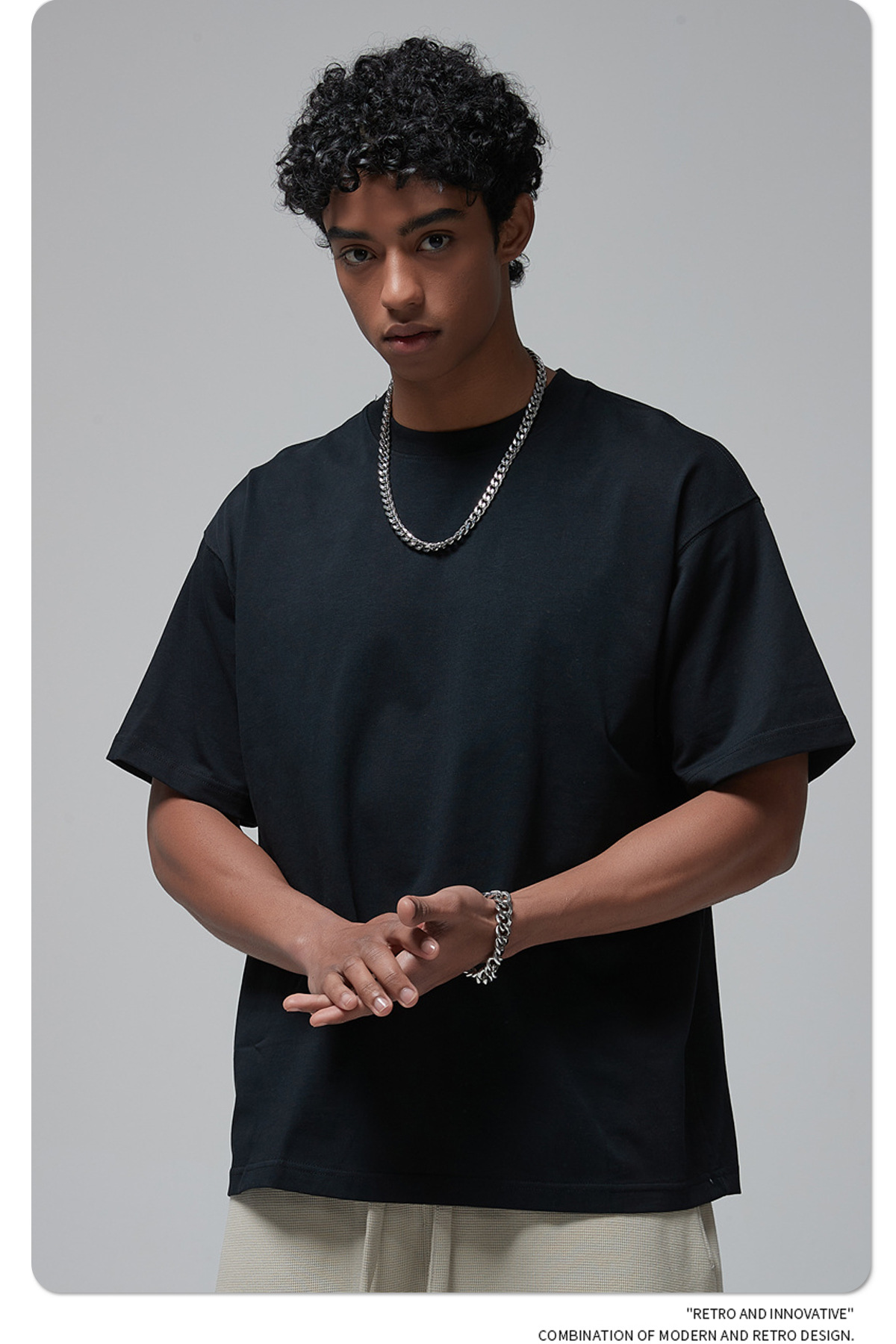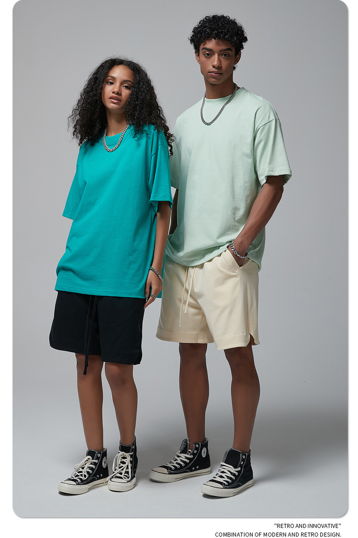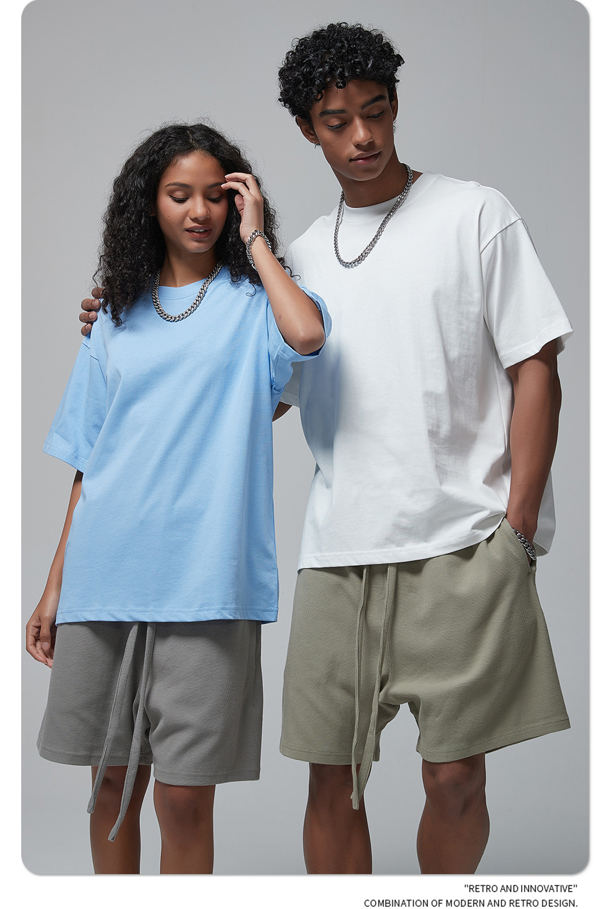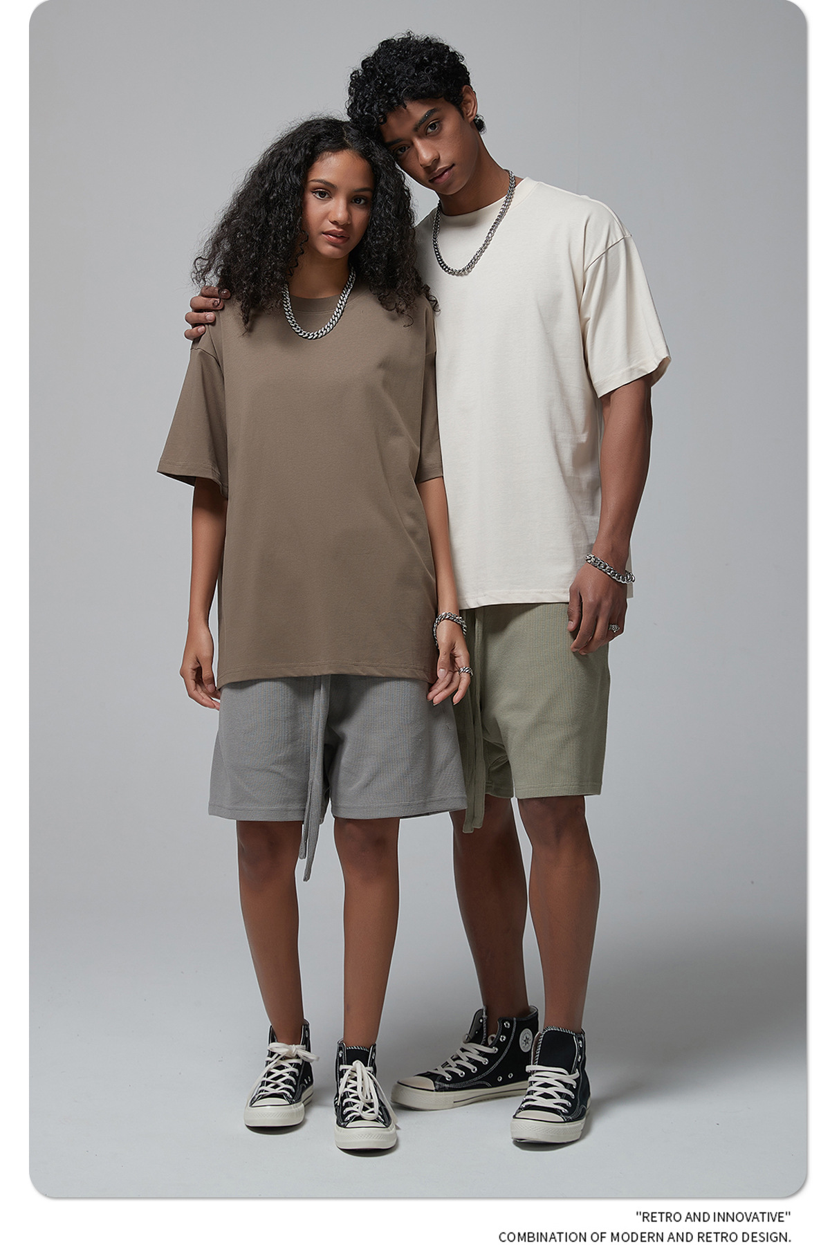 Мужская футболка унисекс из чистого хлопка, летняя, 2025, двойная пряжа, 230 г, со спущенным плечом, свободный крой, в американском стиле, модная, брендовая, без принта, с коротким рукавом