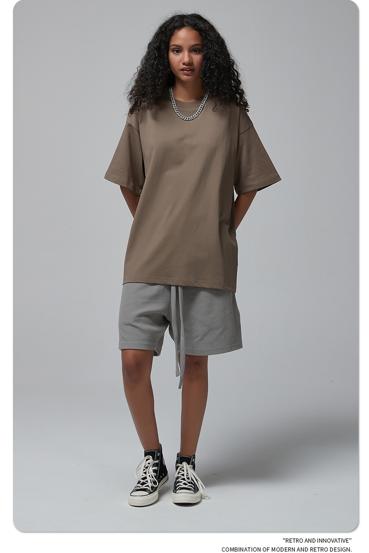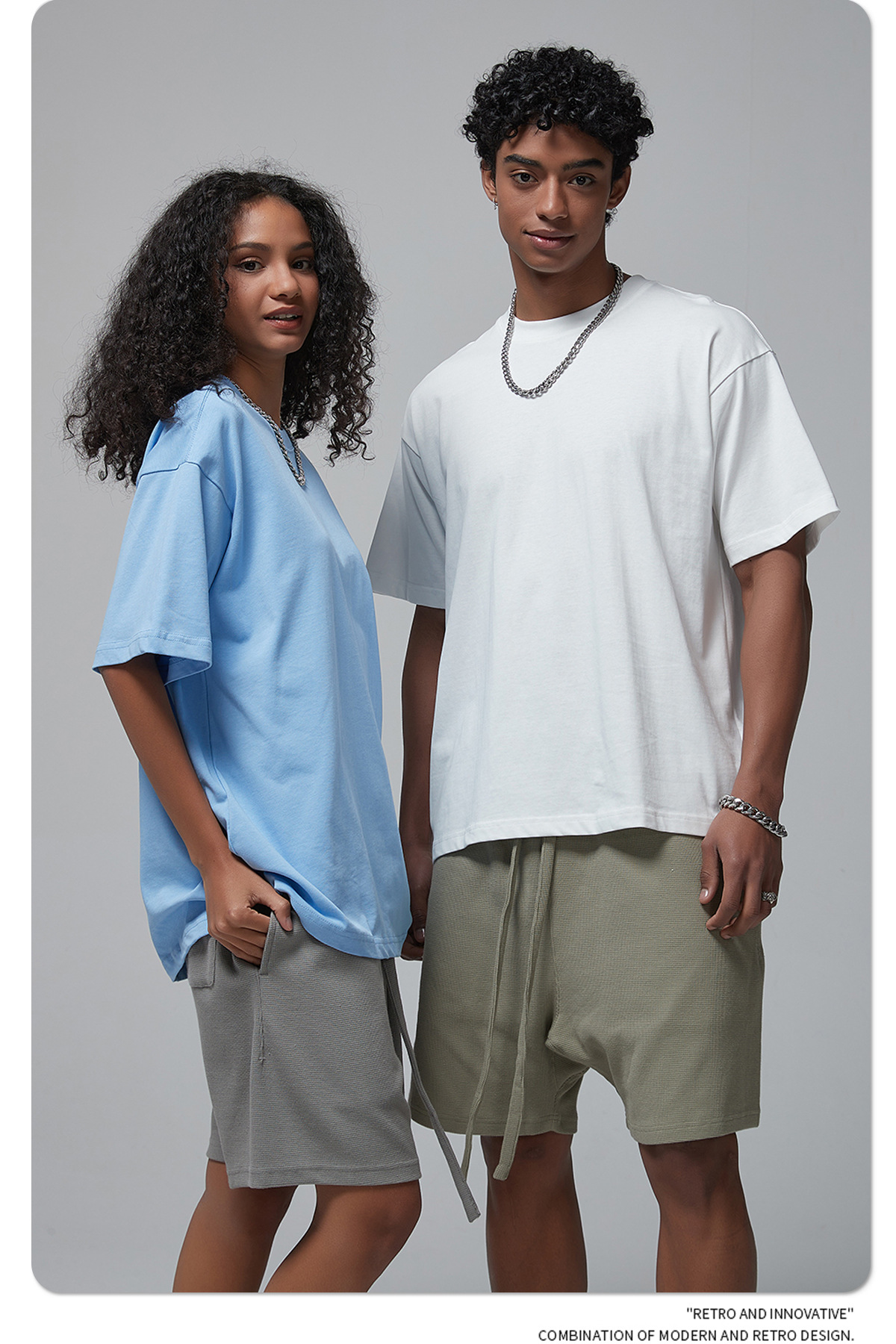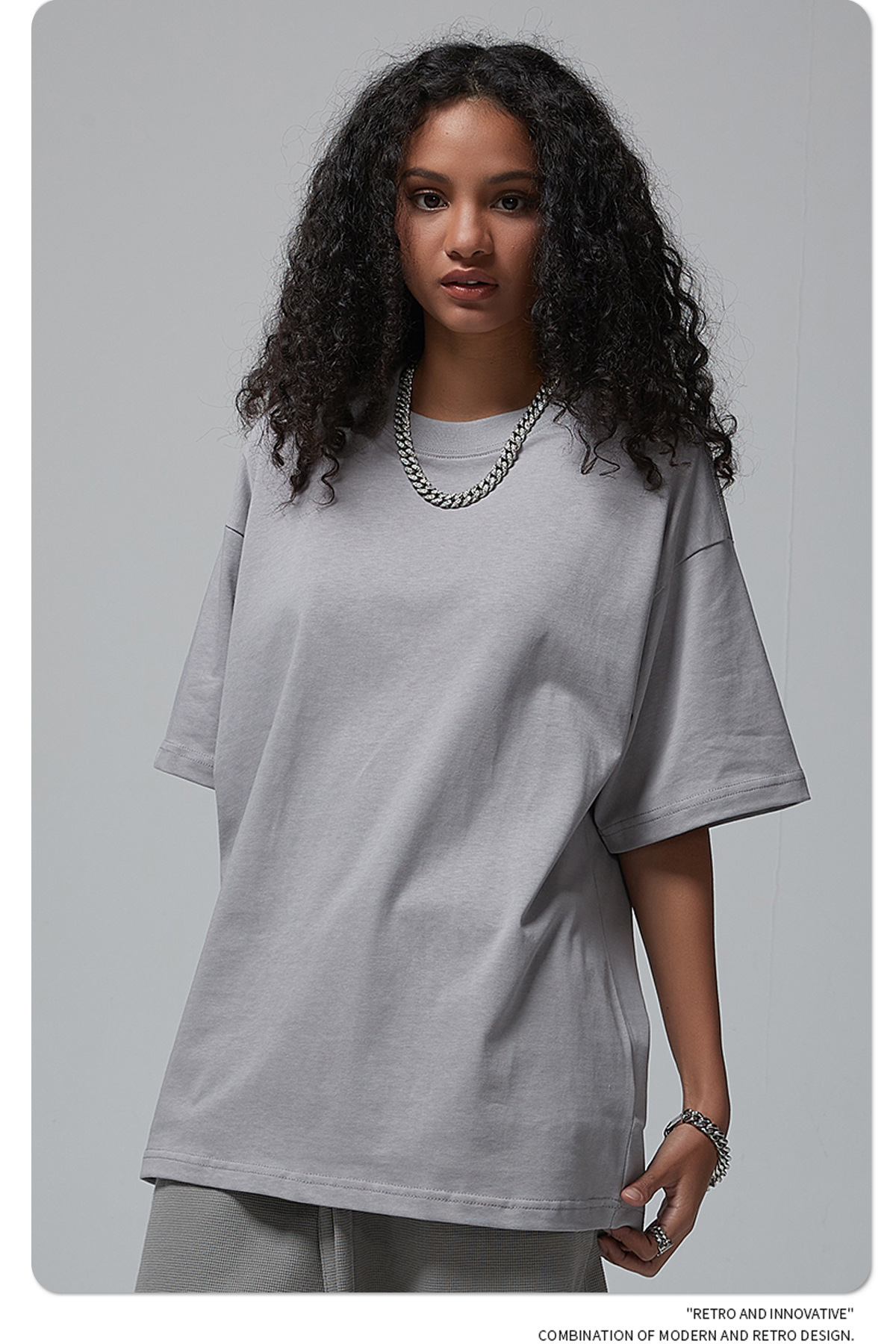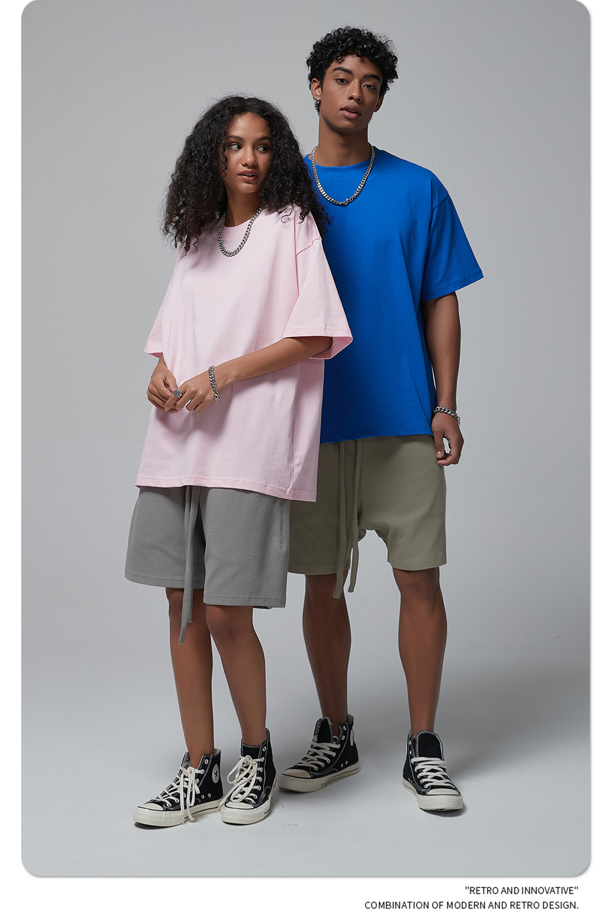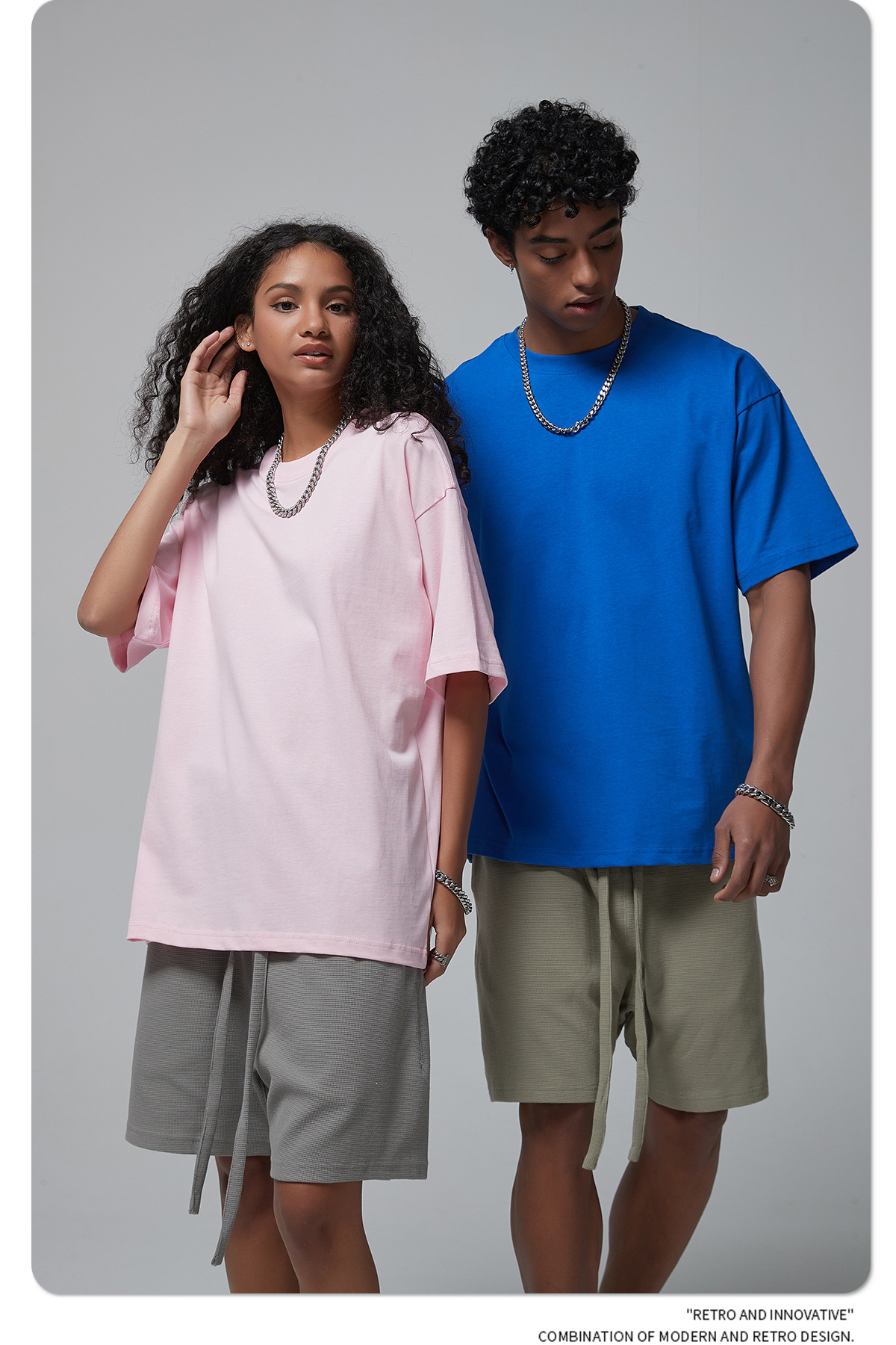 Мужская футболка унисекс из чистого хлопка, летняя, 2025, двойная пряжа, 230 г, со спущенным плечом, свободный крой, в американском стиле, модная, брендовая, без принта, с коротким рукавом