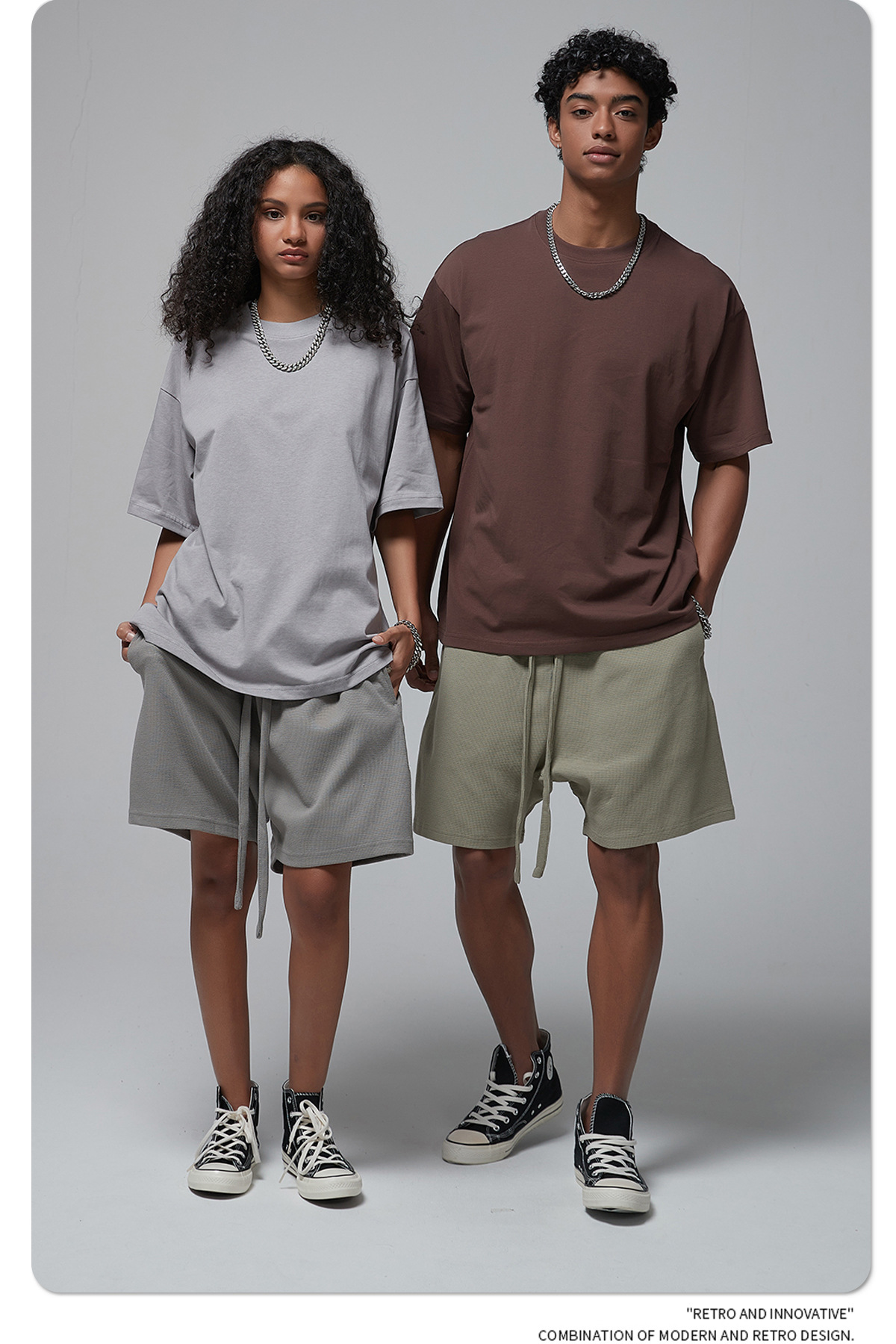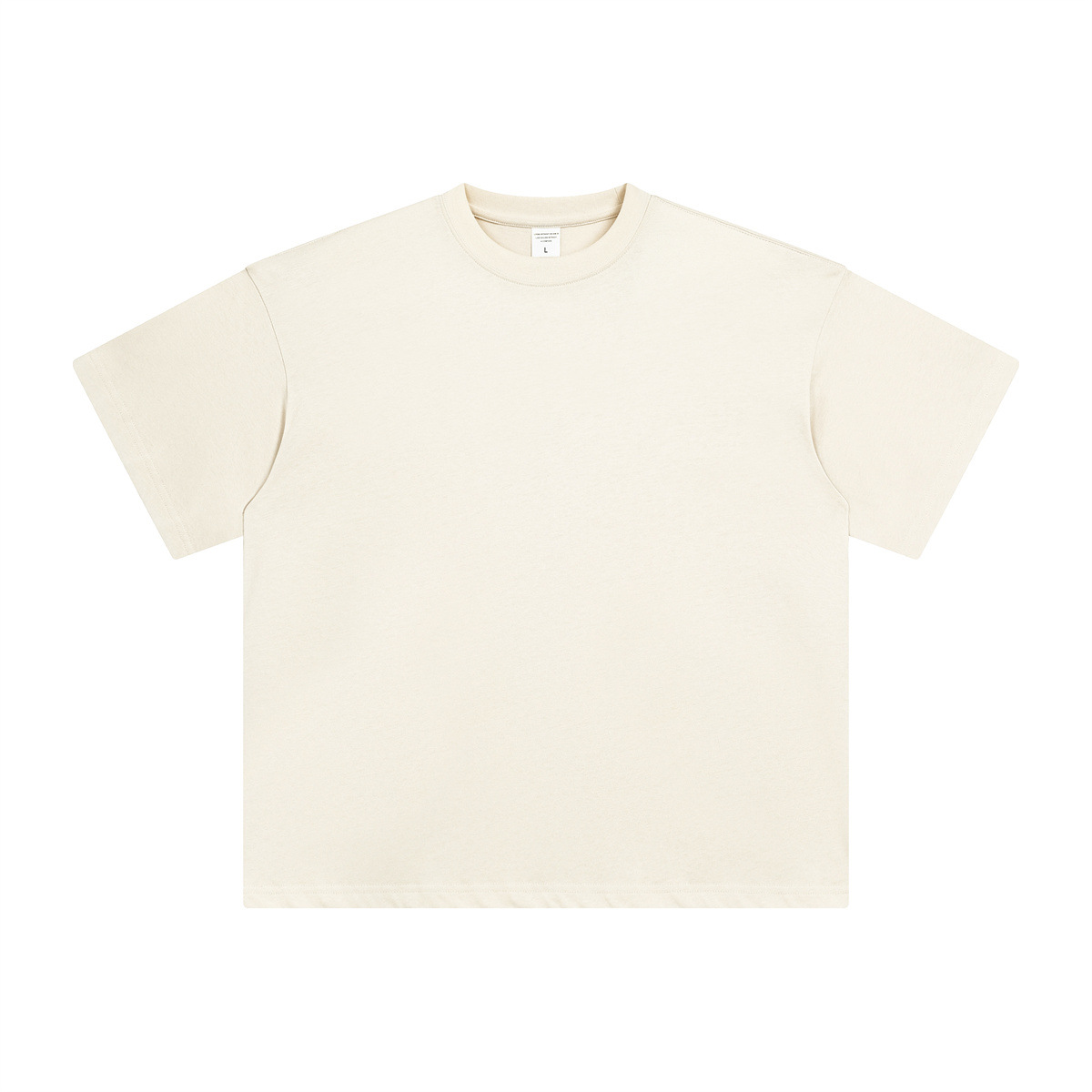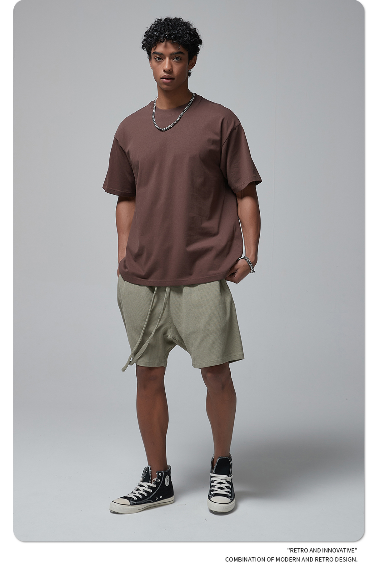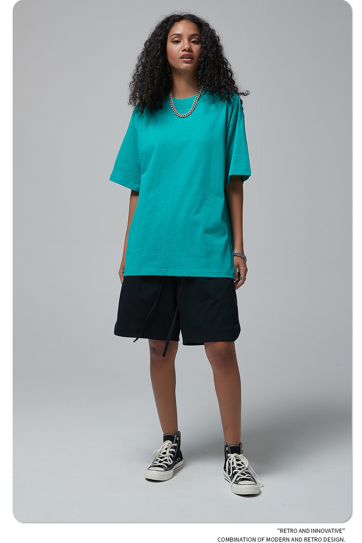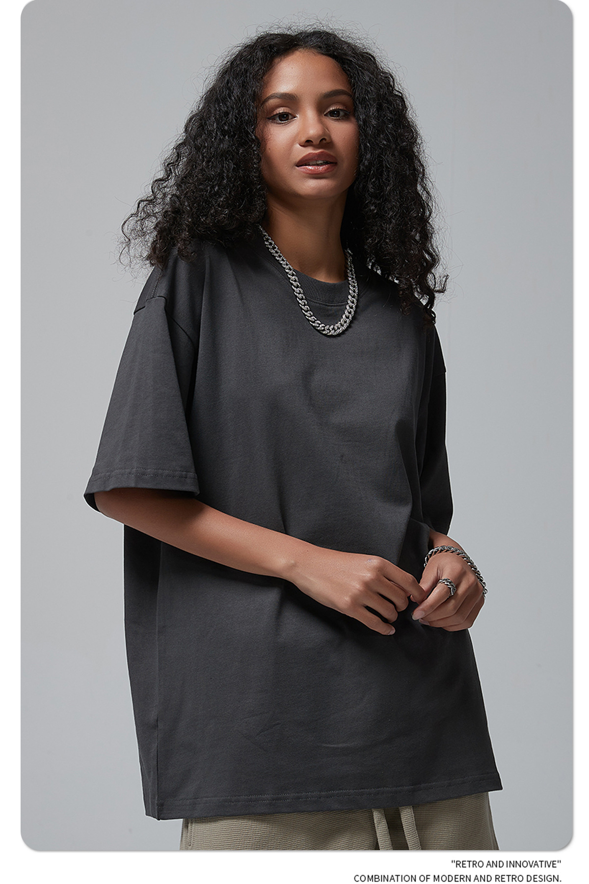 Мужская футболка унисекс из чистого хлопка, летняя, 2025, двойная пряжа, 230 г, со спущенным плечом, свободный крой, в американском стиле, модная, брендовая, без принта, с коротким рукавом