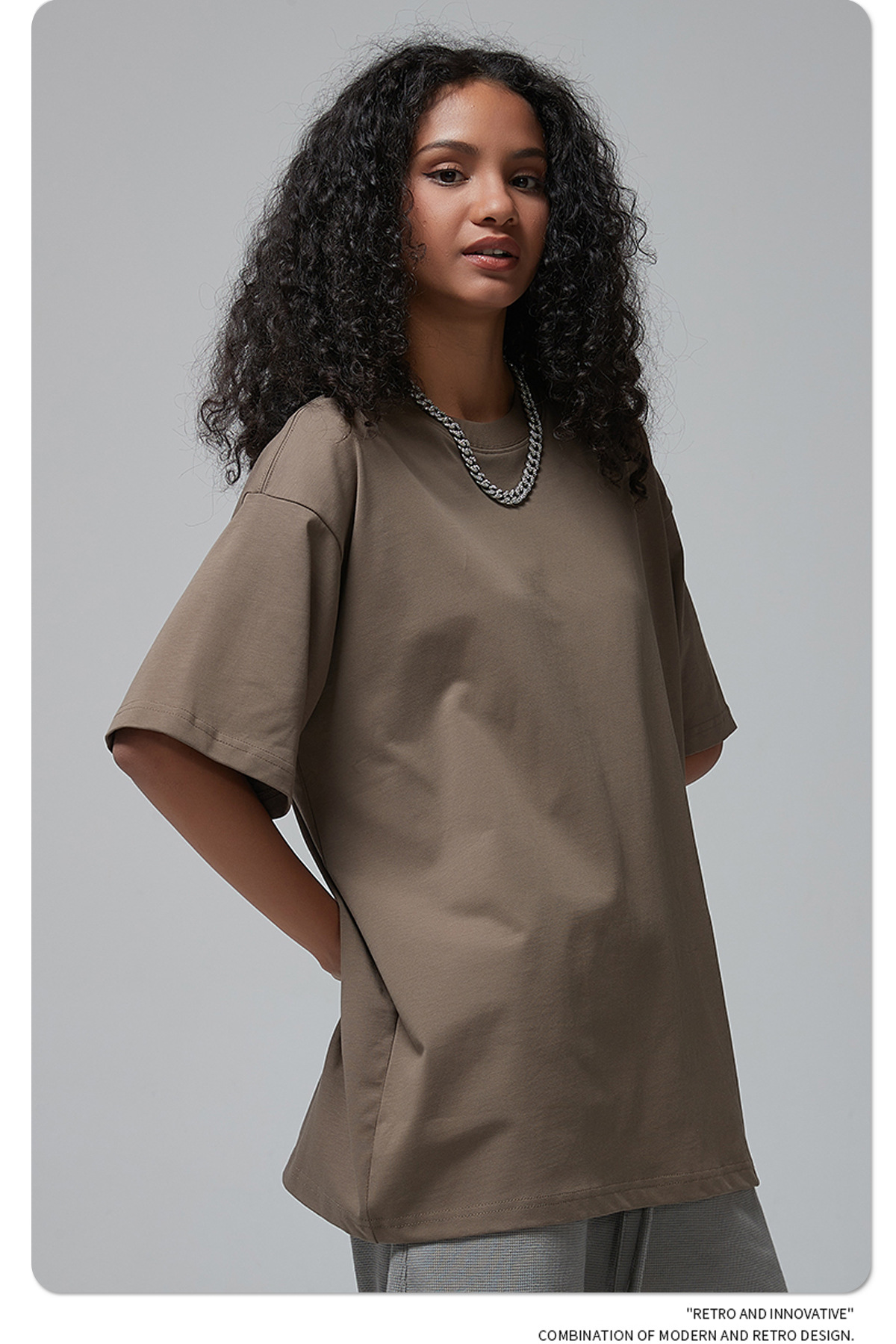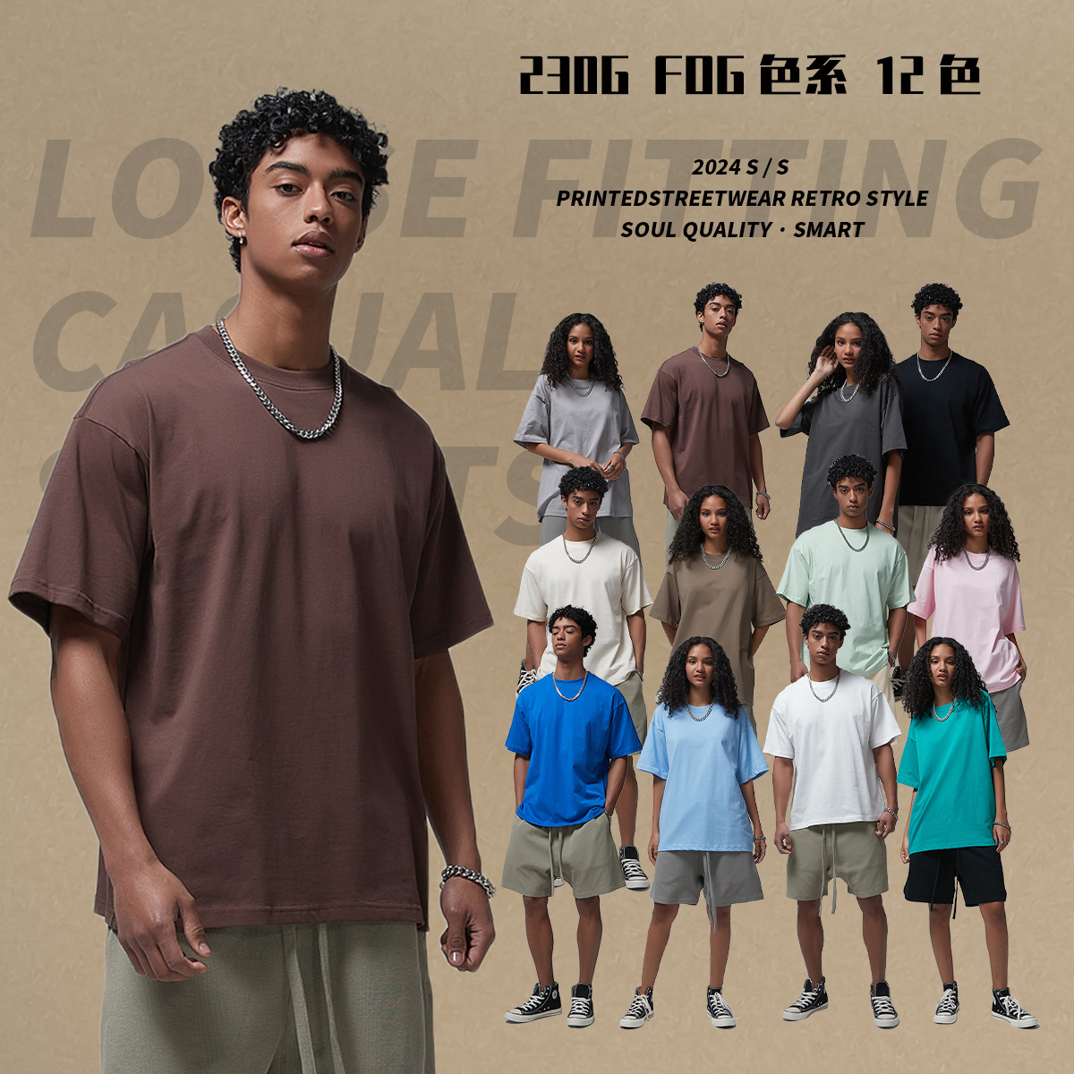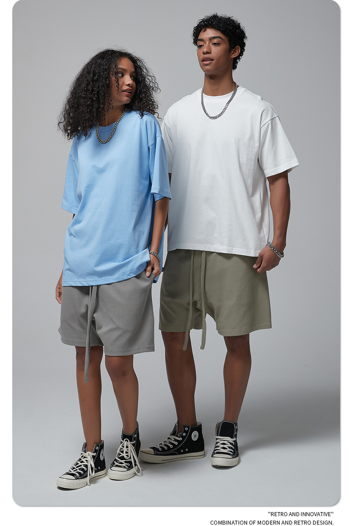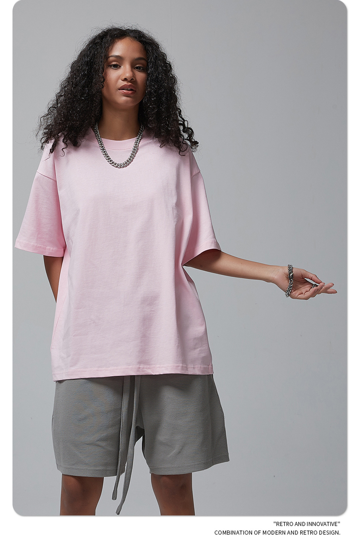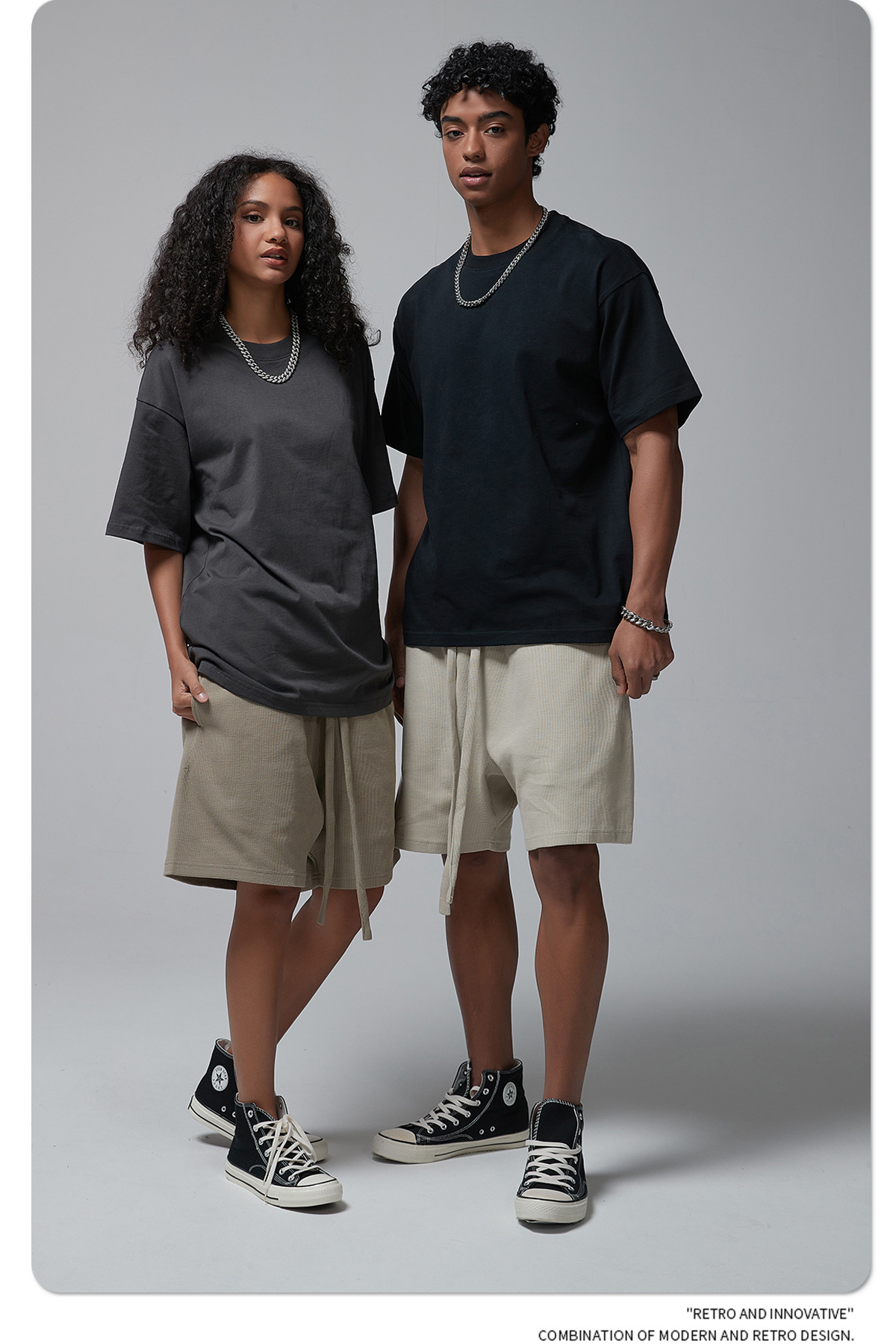 Мужская футболка унисекс из чистого хлопка, летняя, 2025, двойная пряжа, 230 г, со спущенным плечом, свободный крой, в американском стиле, модная, брендовая, без принта, с коротким рукавом