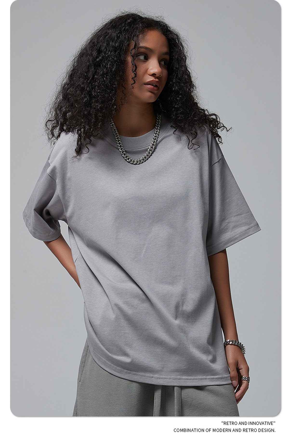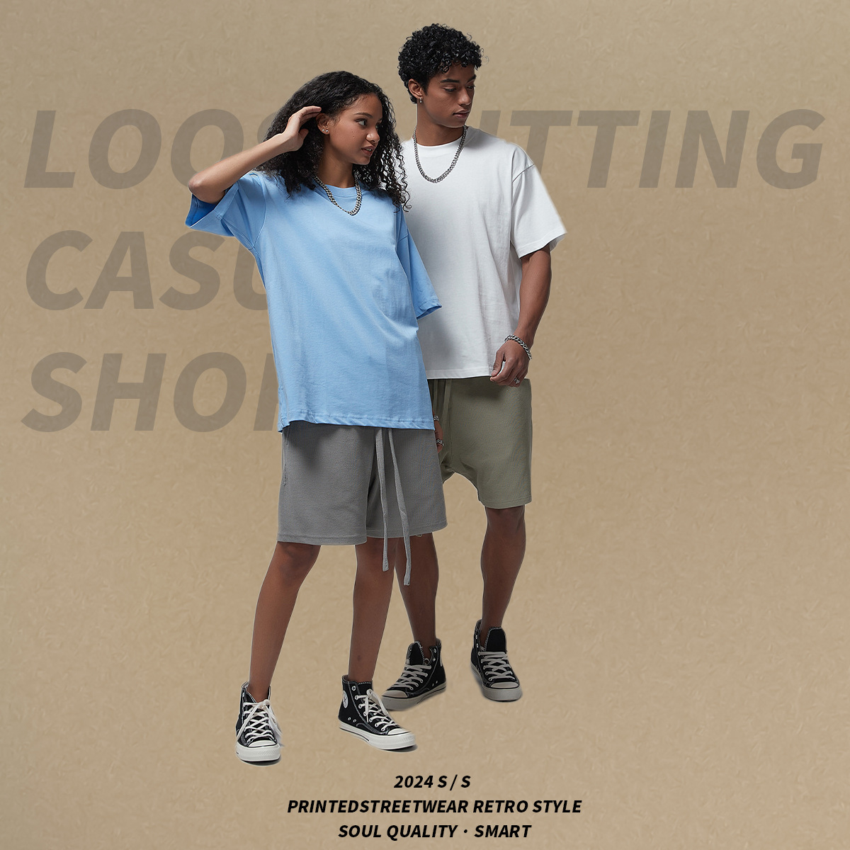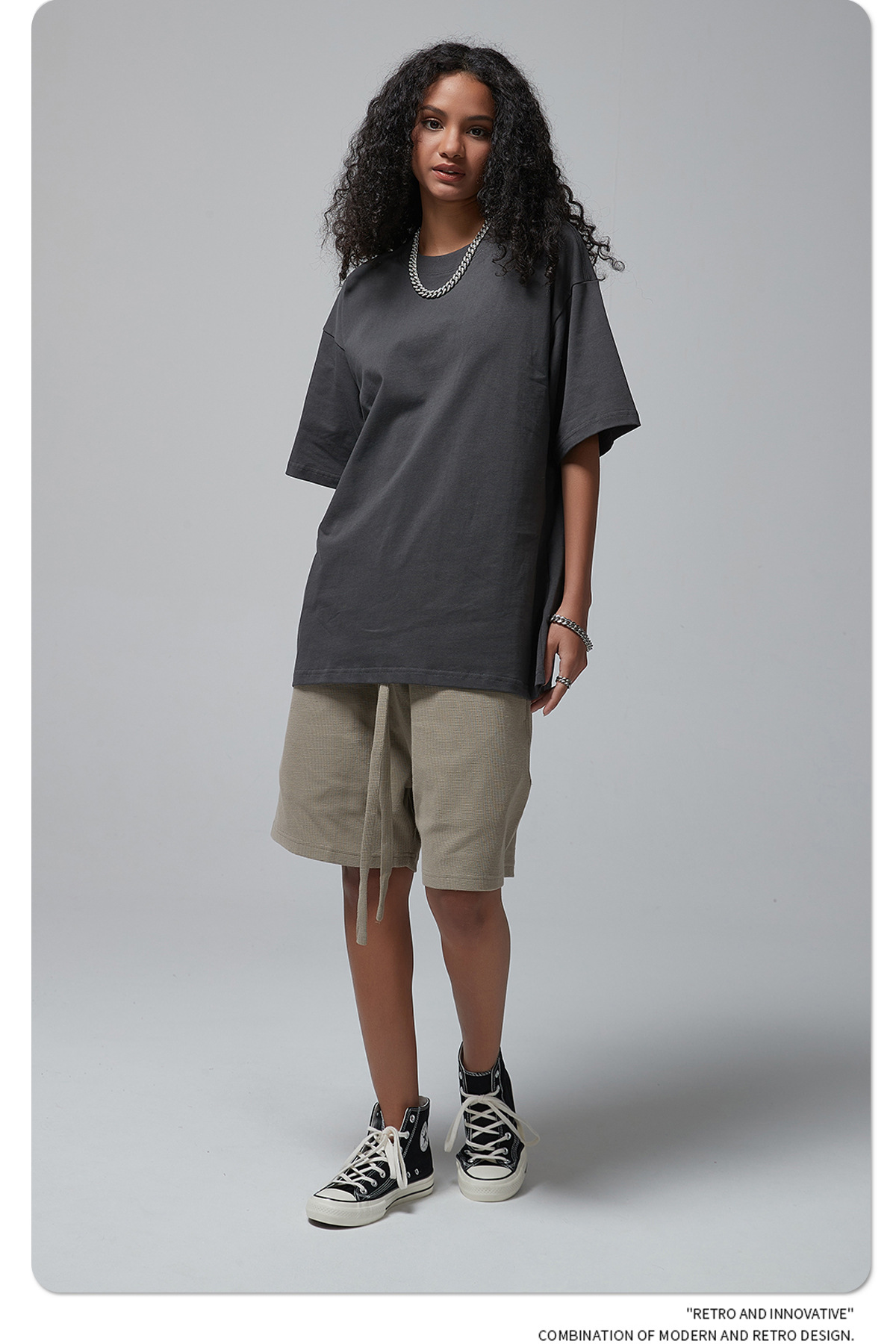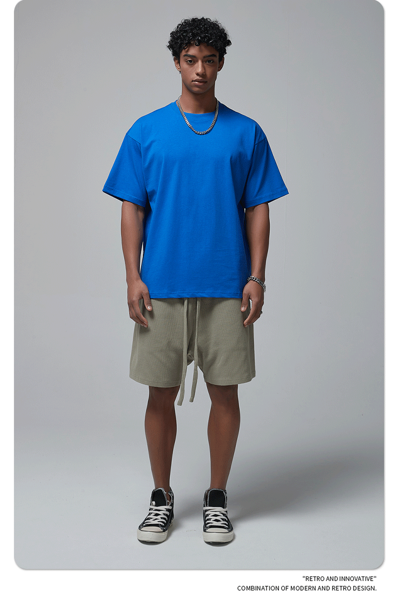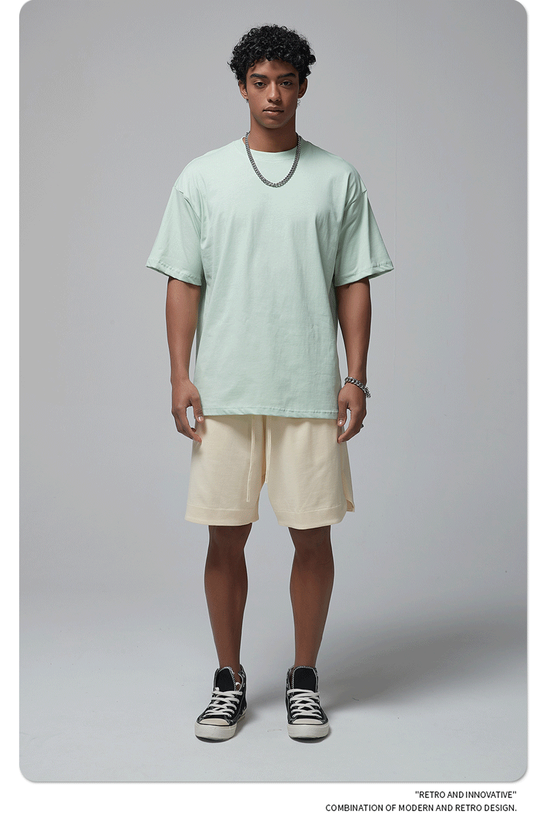 Мужская футболка унисекс из чистого хлопка, летняя, 2025, двойная пряжа, 230 г, со спущенным плечом, свободный крой, в американском стиле, модная, брендовая, без принта, с коротким рукавом