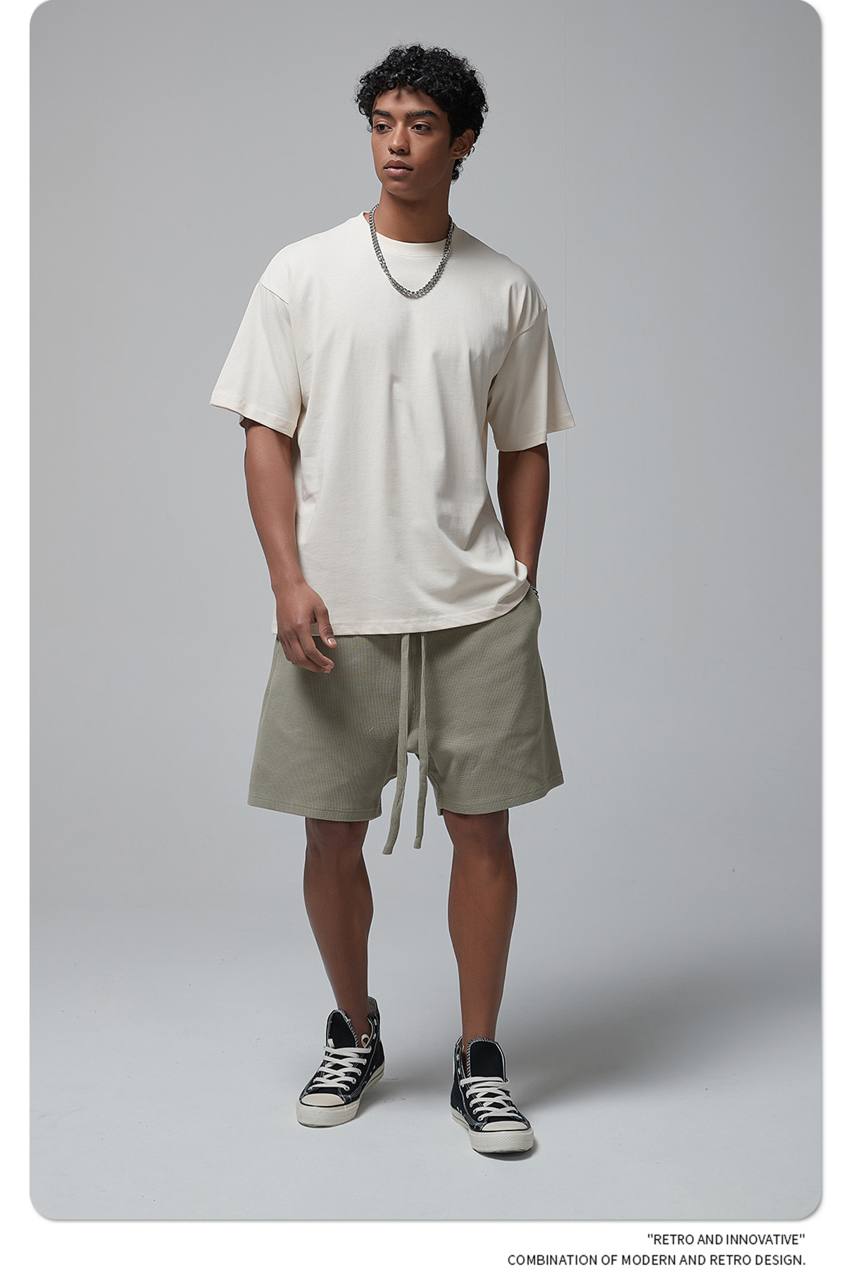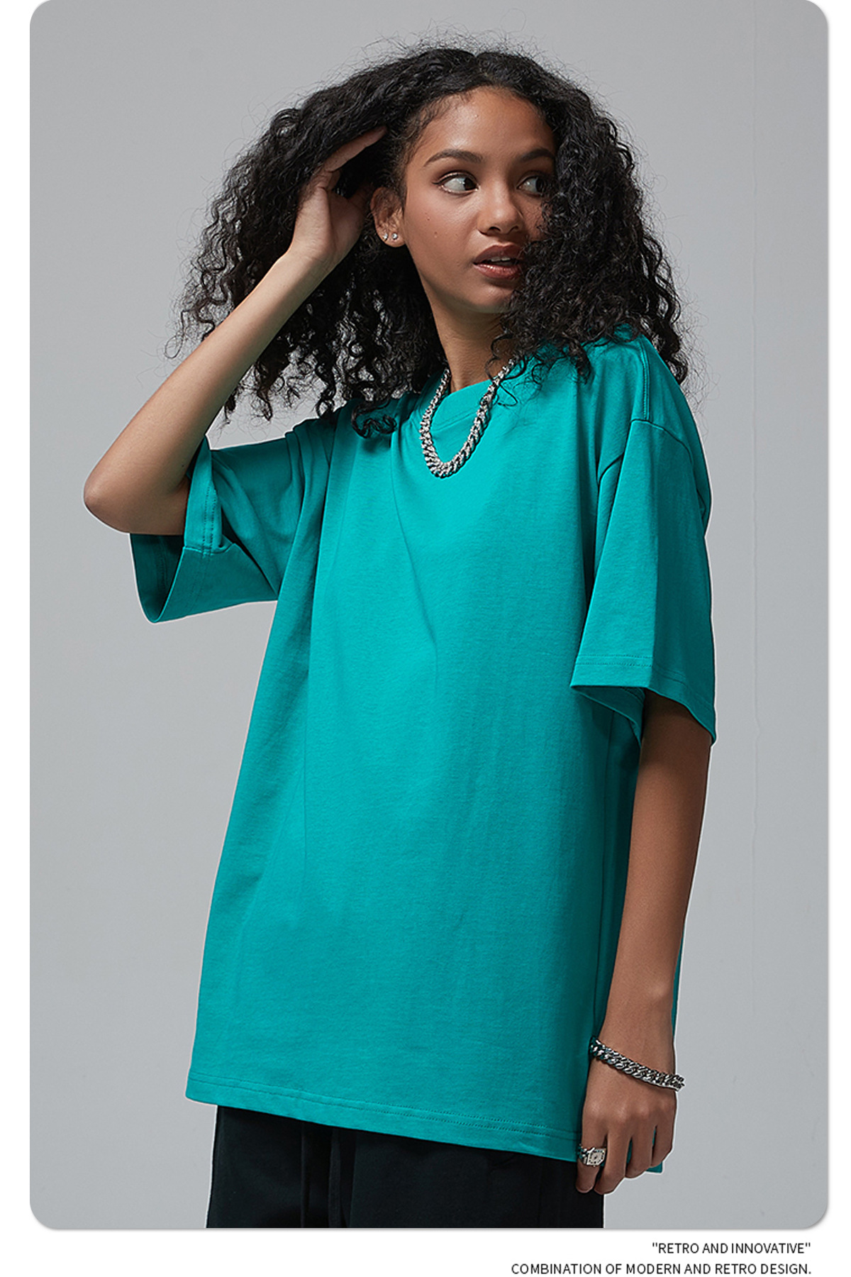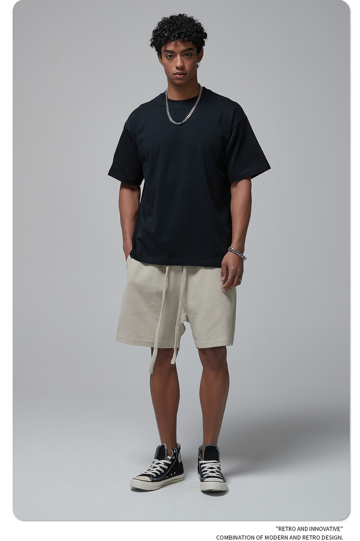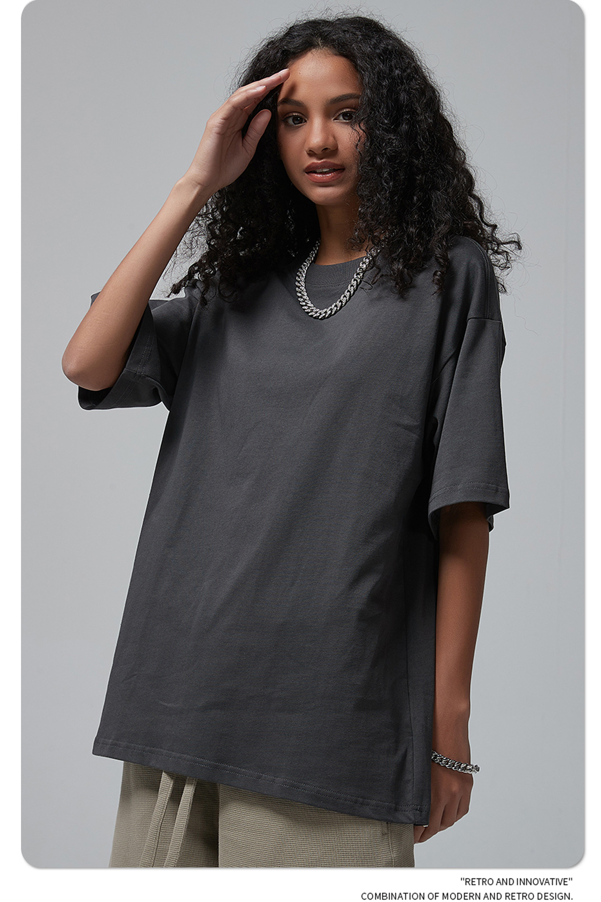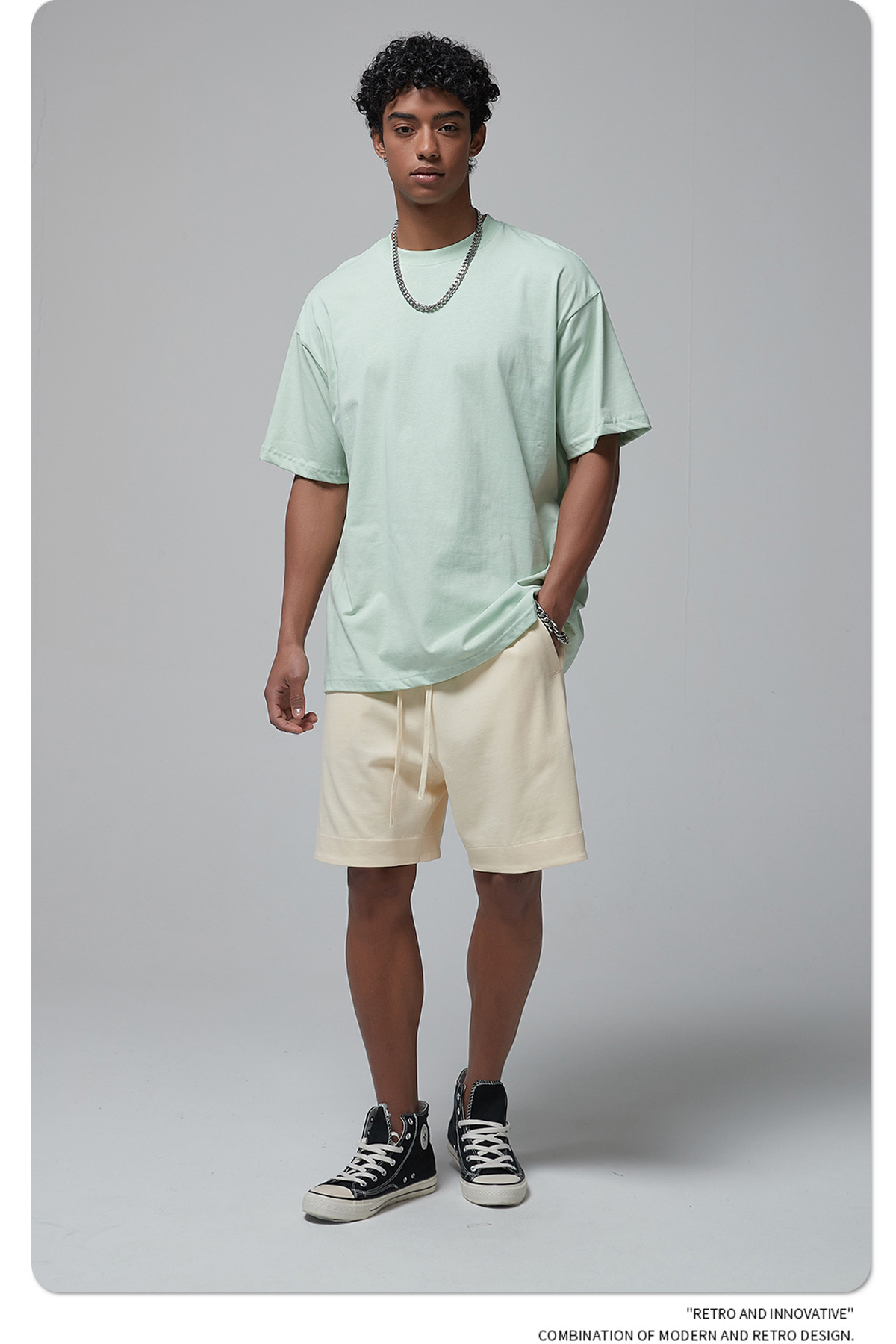 Мужская футболка унисекс из чистого хлопка, летняя, 2025, двойная пряжа, 230 г, со спущенным плечом, свободный крой, в американском стиле, модная, брендовая, без принта, с коротким рукавом