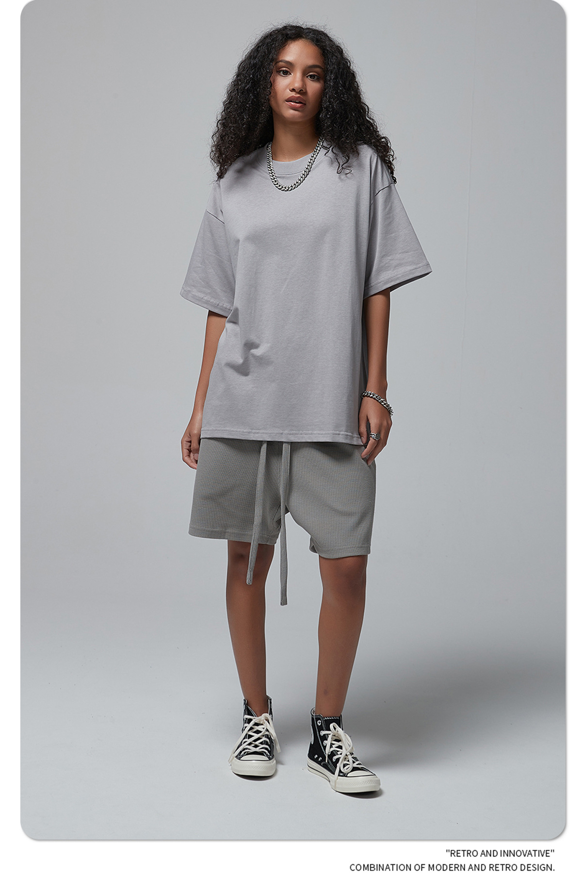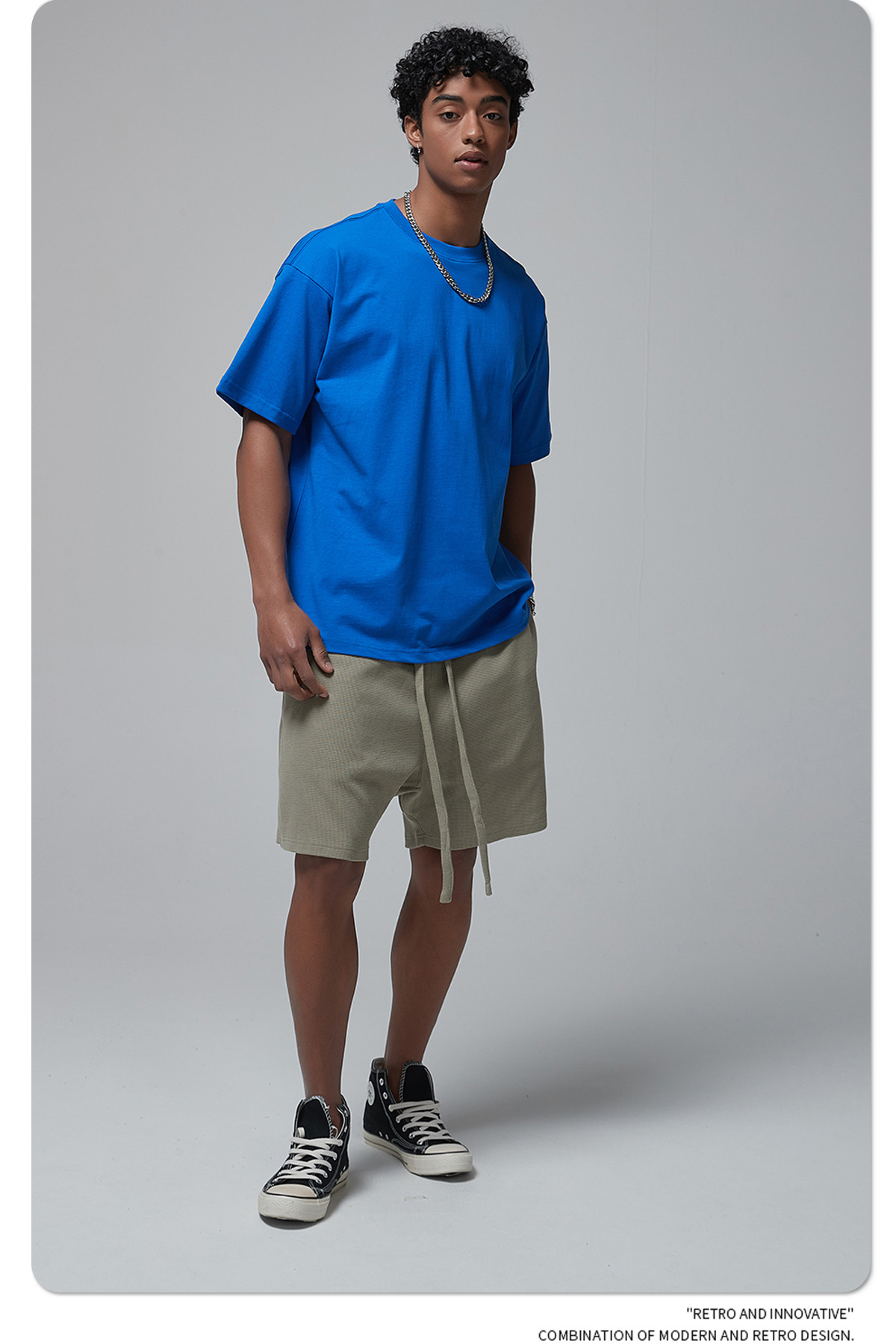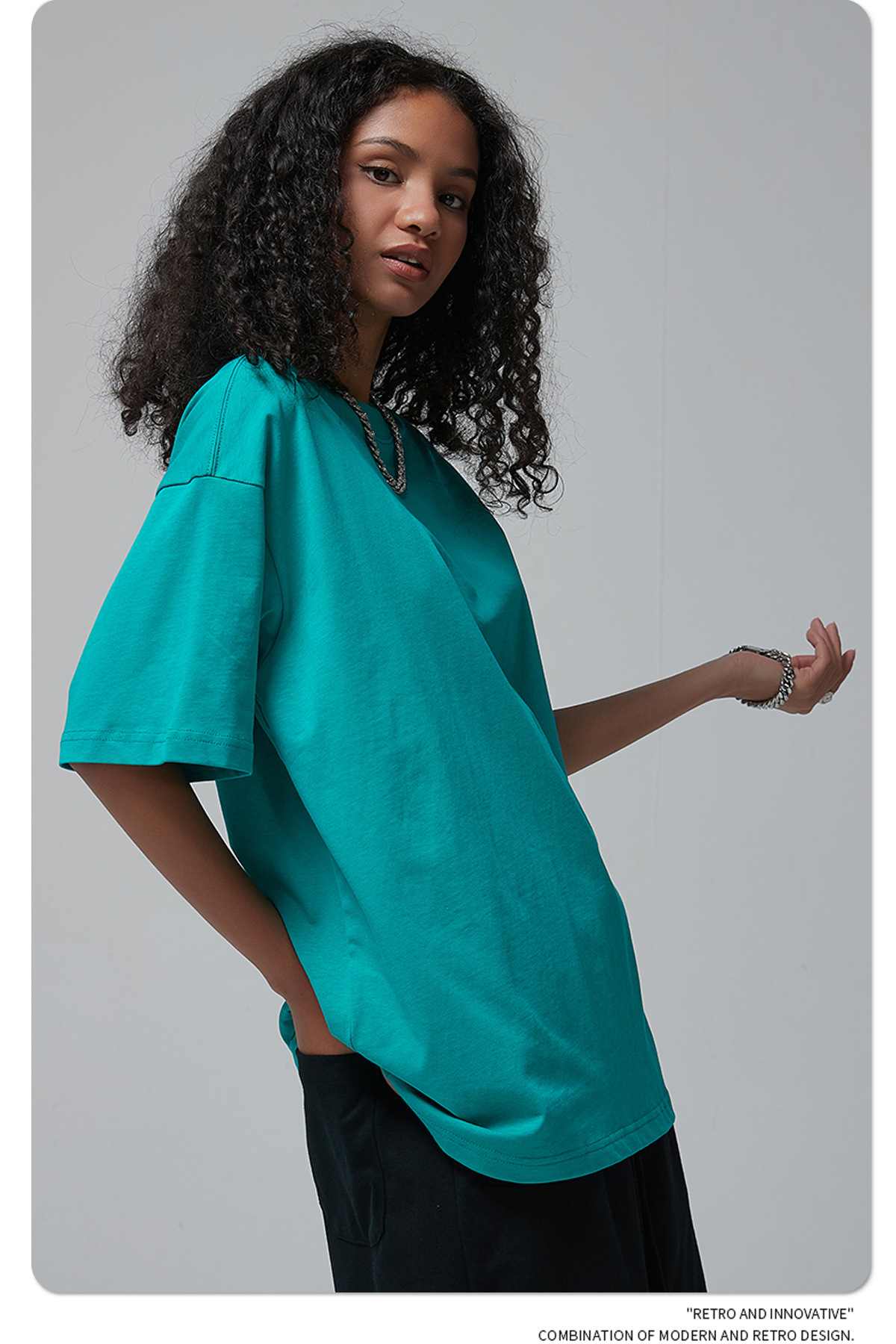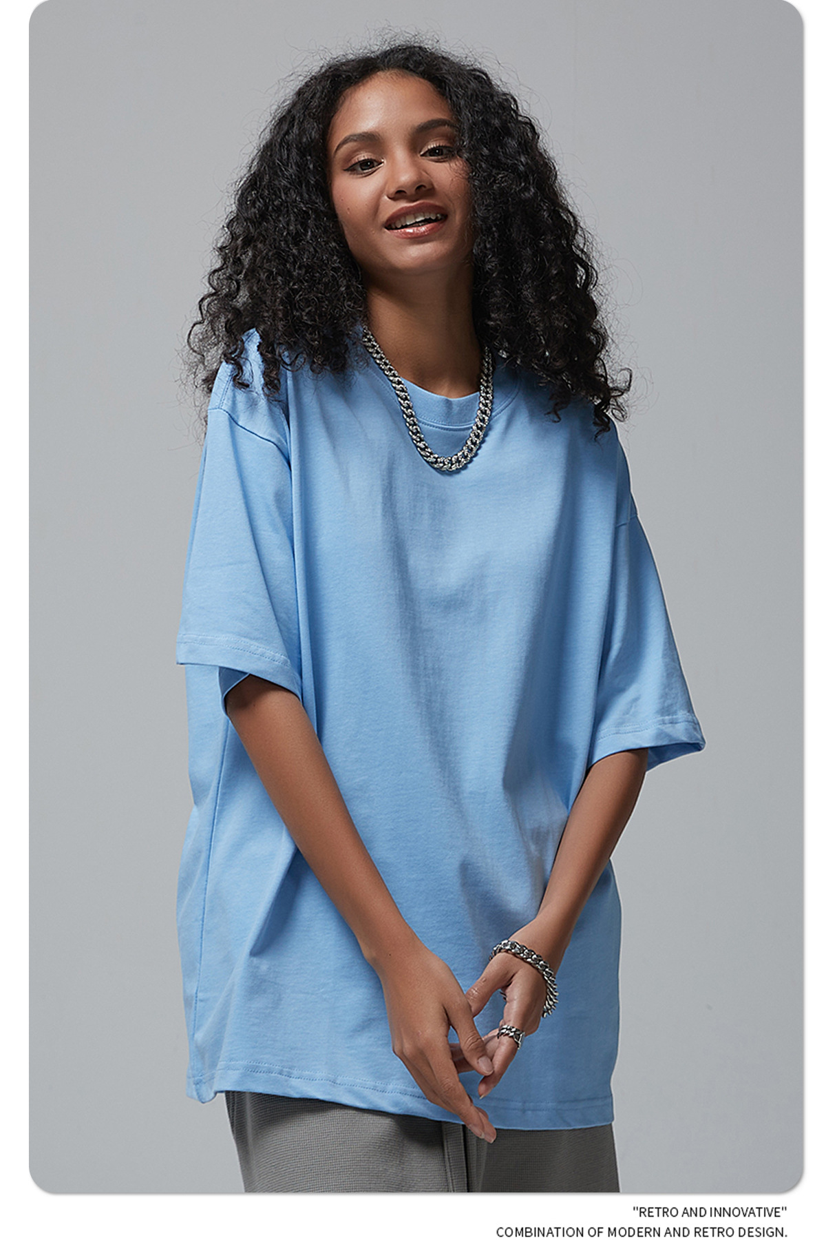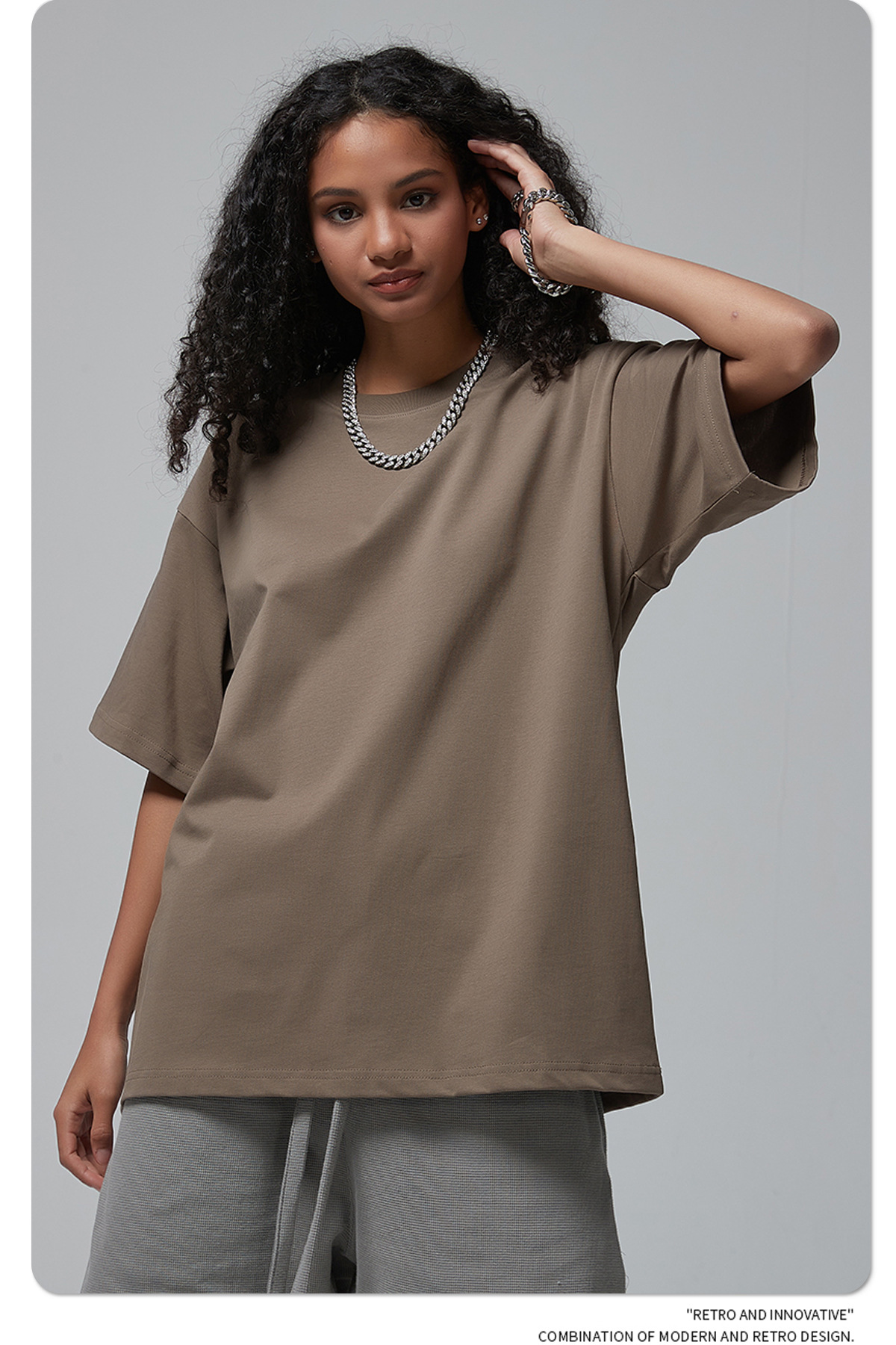 Мужская футболка унисекс из чистого хлопка, летняя, 2025, двойная пряжа, 230 г, со спущенным плечом, свободный крой, в американском стиле, модная, брендовая, без принта, с коротким рукавом