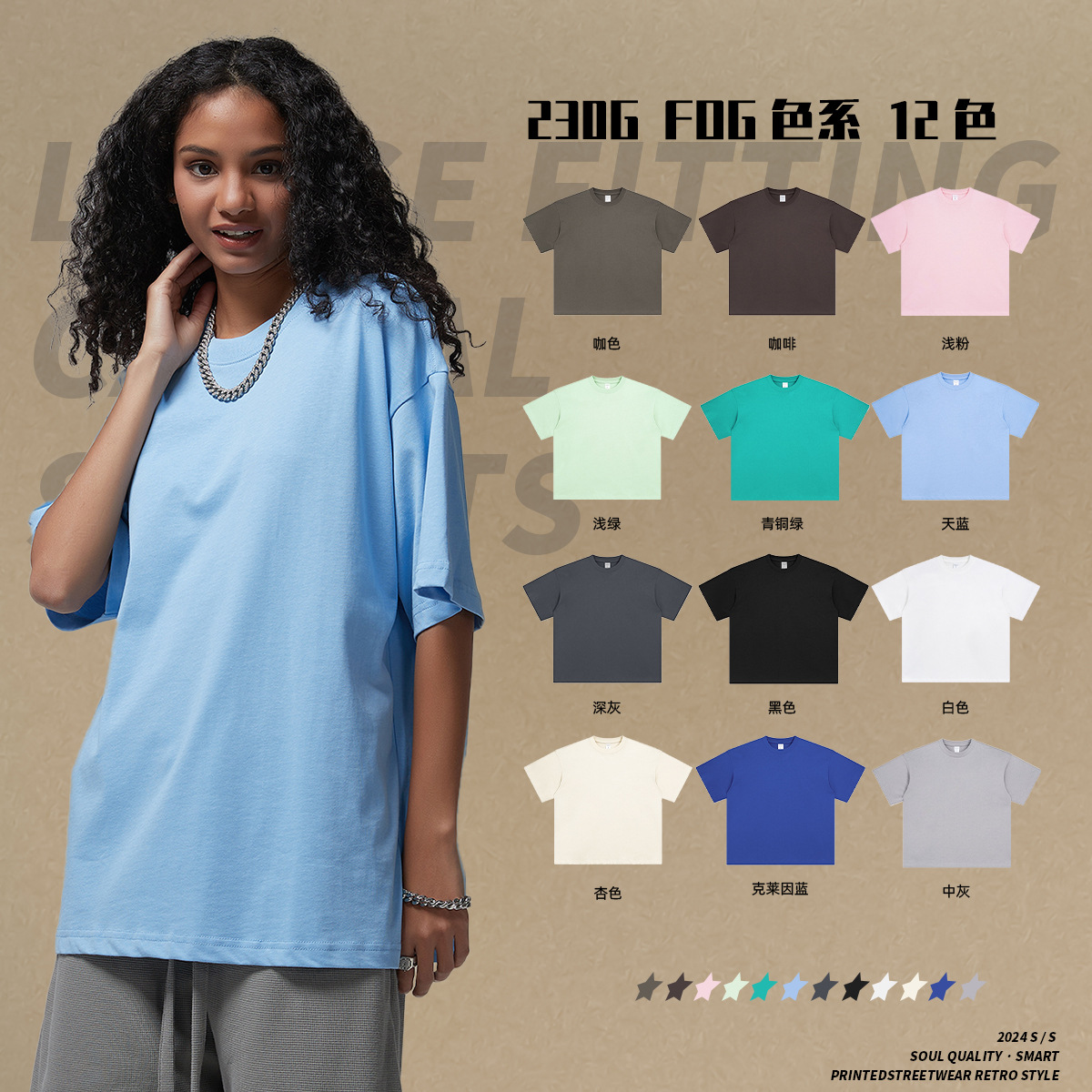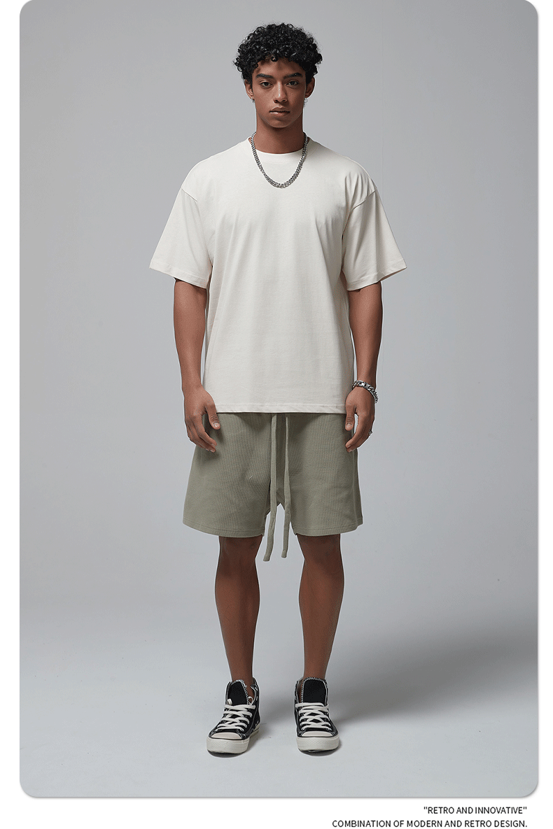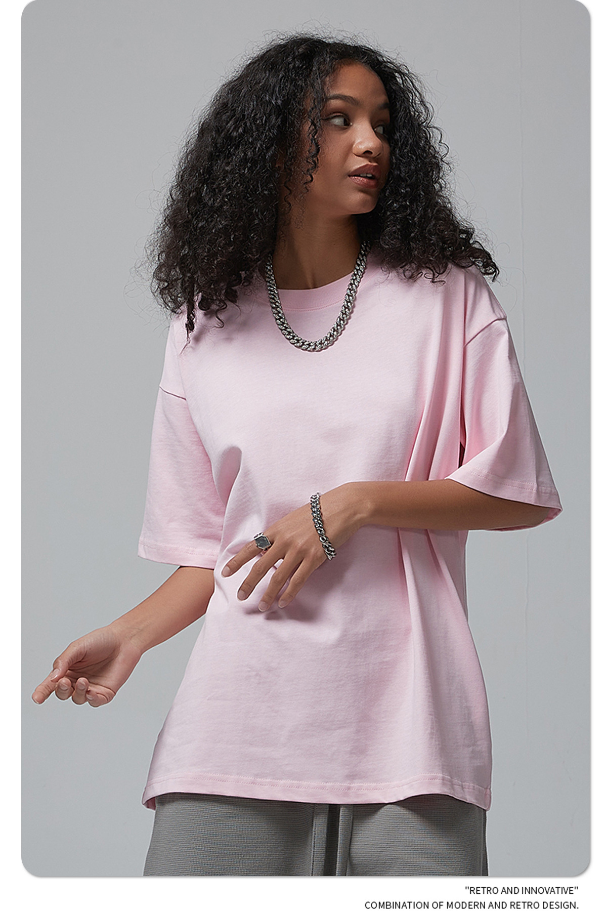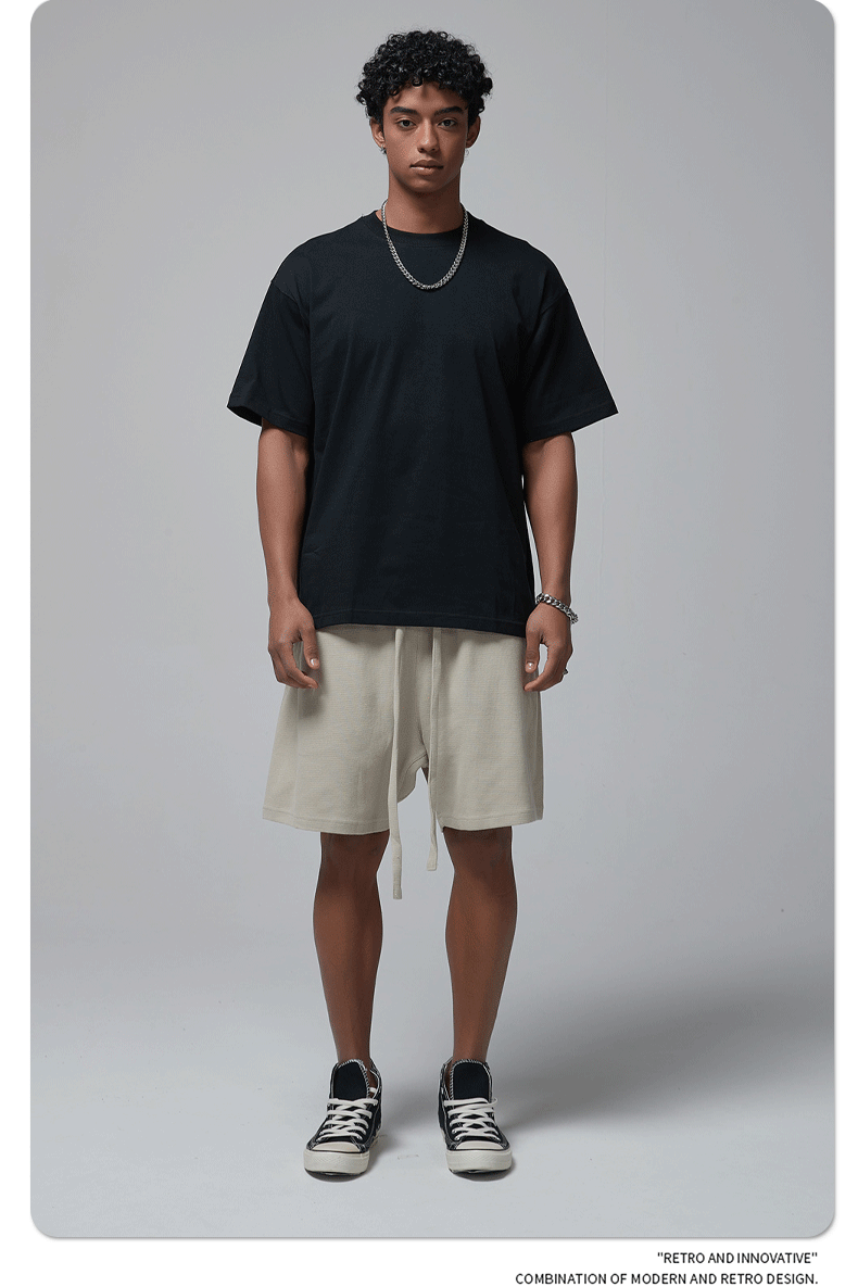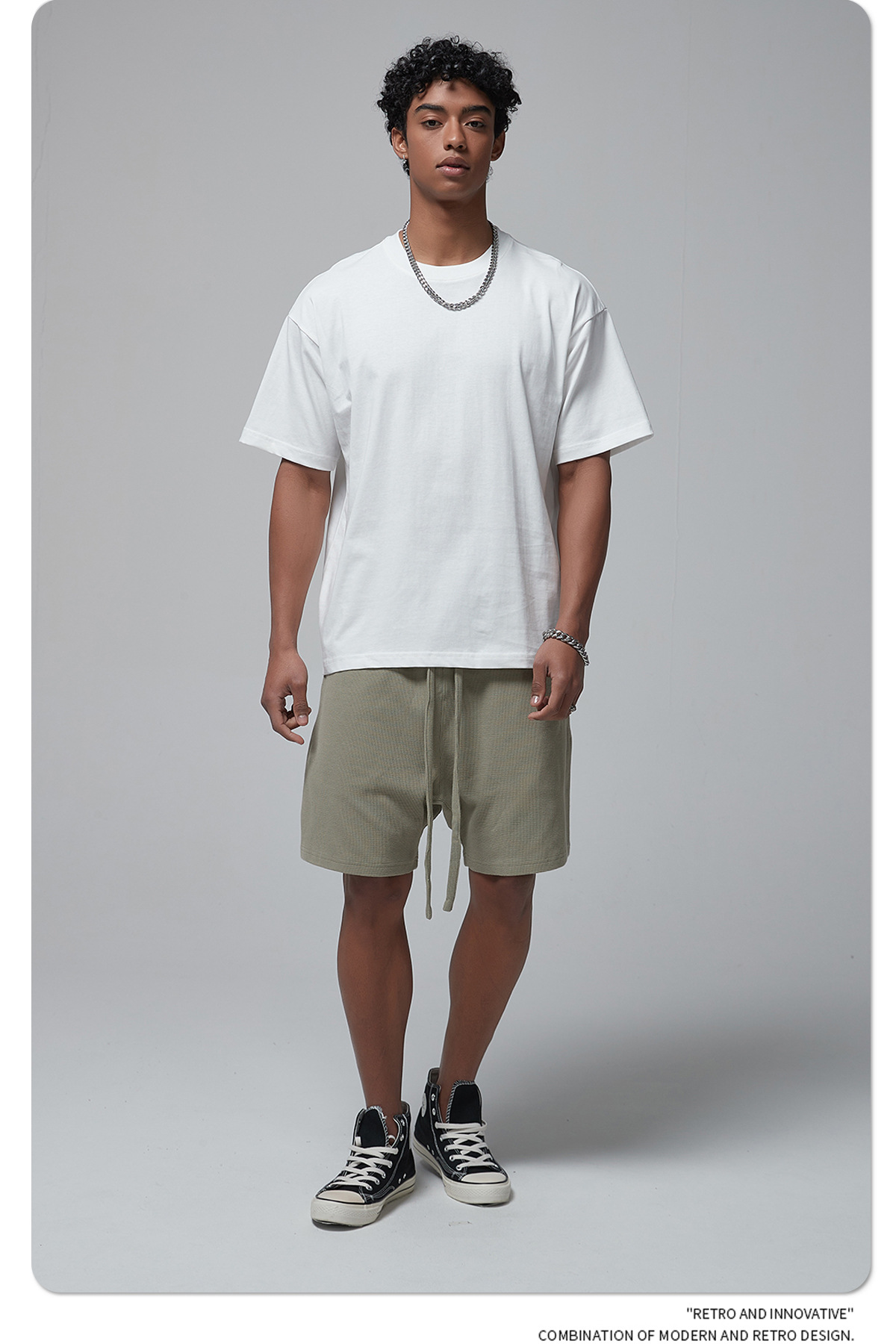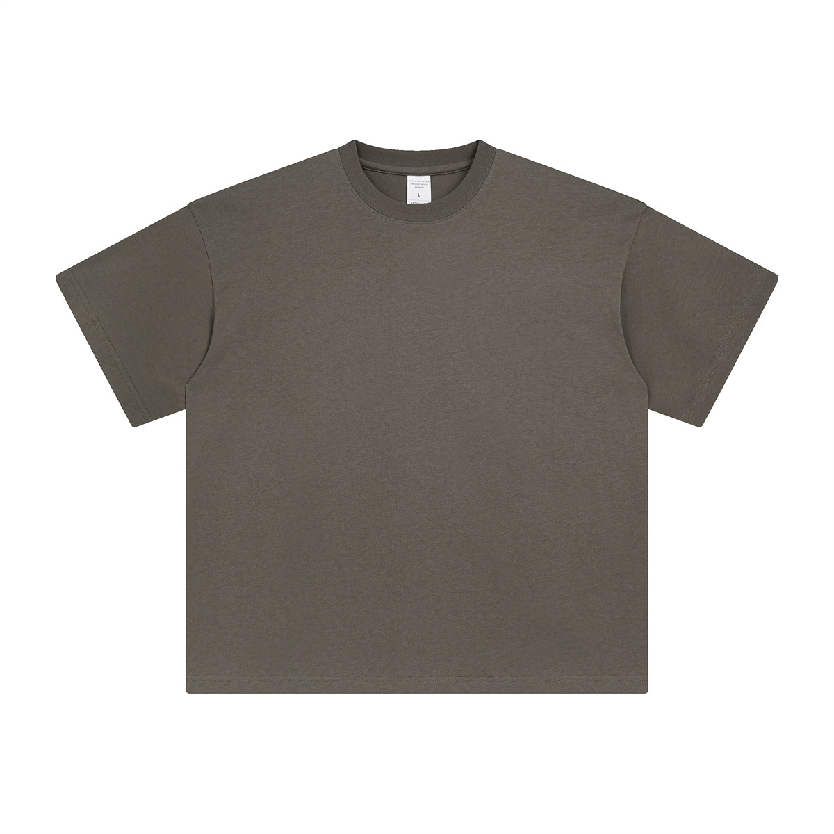 Мужская футболка унисекс из чистого хлопка, летняя, 2025, двойная пряжа, 230 г, со спущенным плечом, свободный крой, в американском стиле, модная, брендовая, без принта, с коротким рукавом