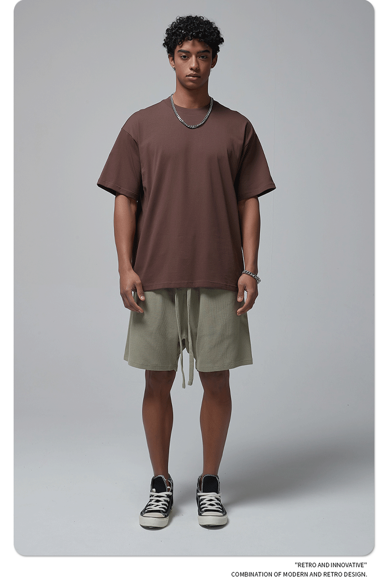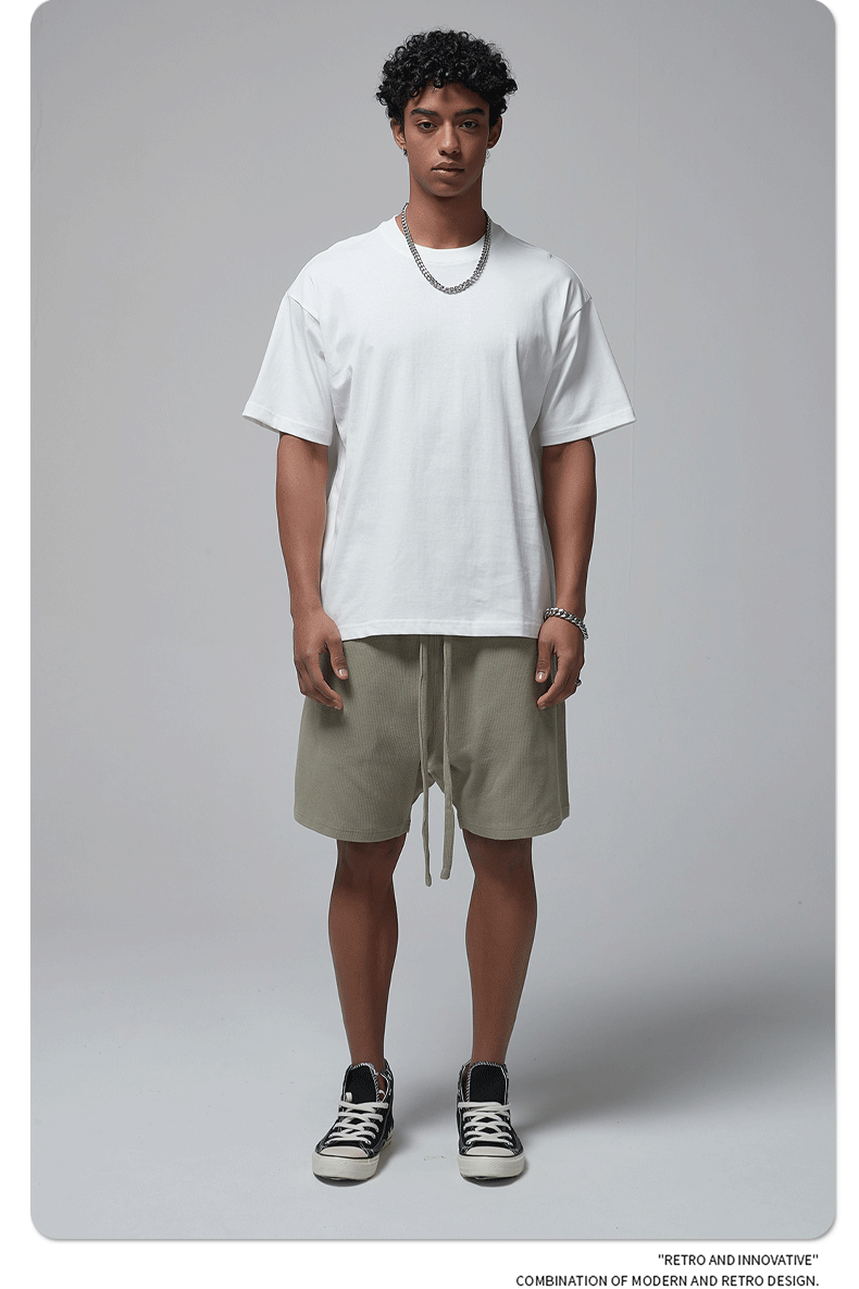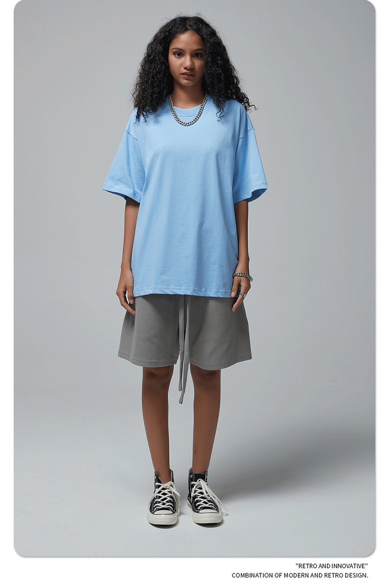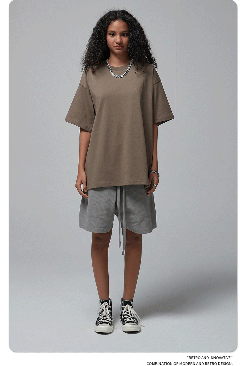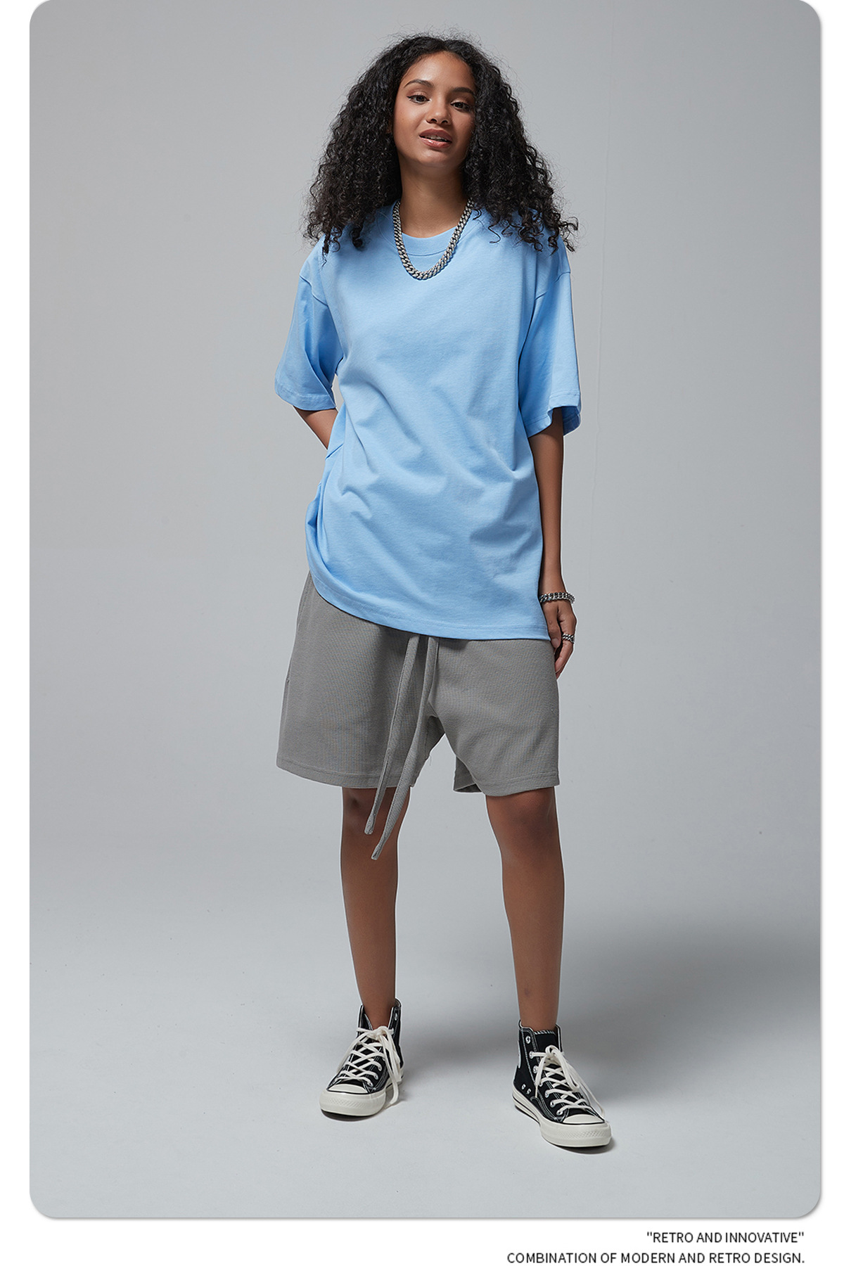 Мужская футболка унисекс из чистого хлопка, летняя, 2025, двойная пряжа, 230 г, со спущенным плечом, свободный крой, в американском стиле, модная, брендовая, без принта, с коротким рукавом