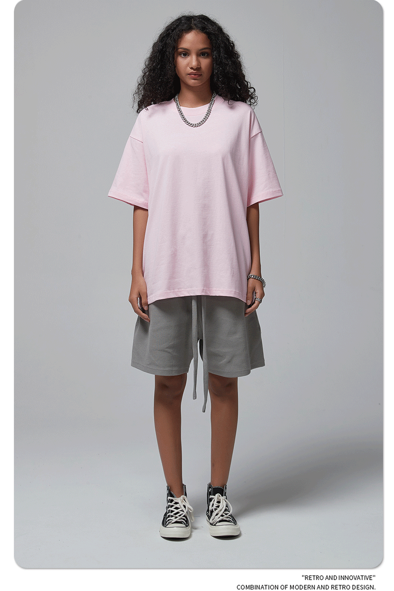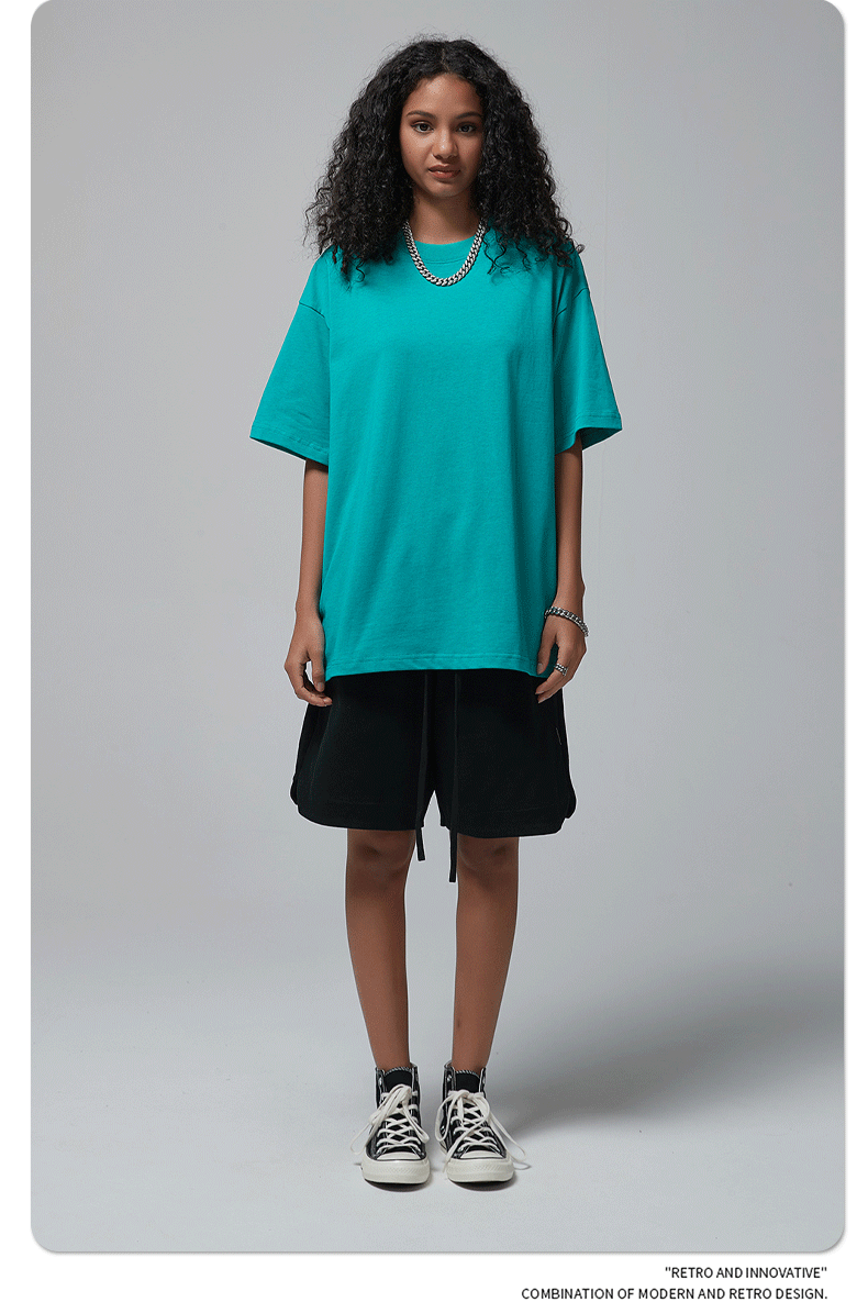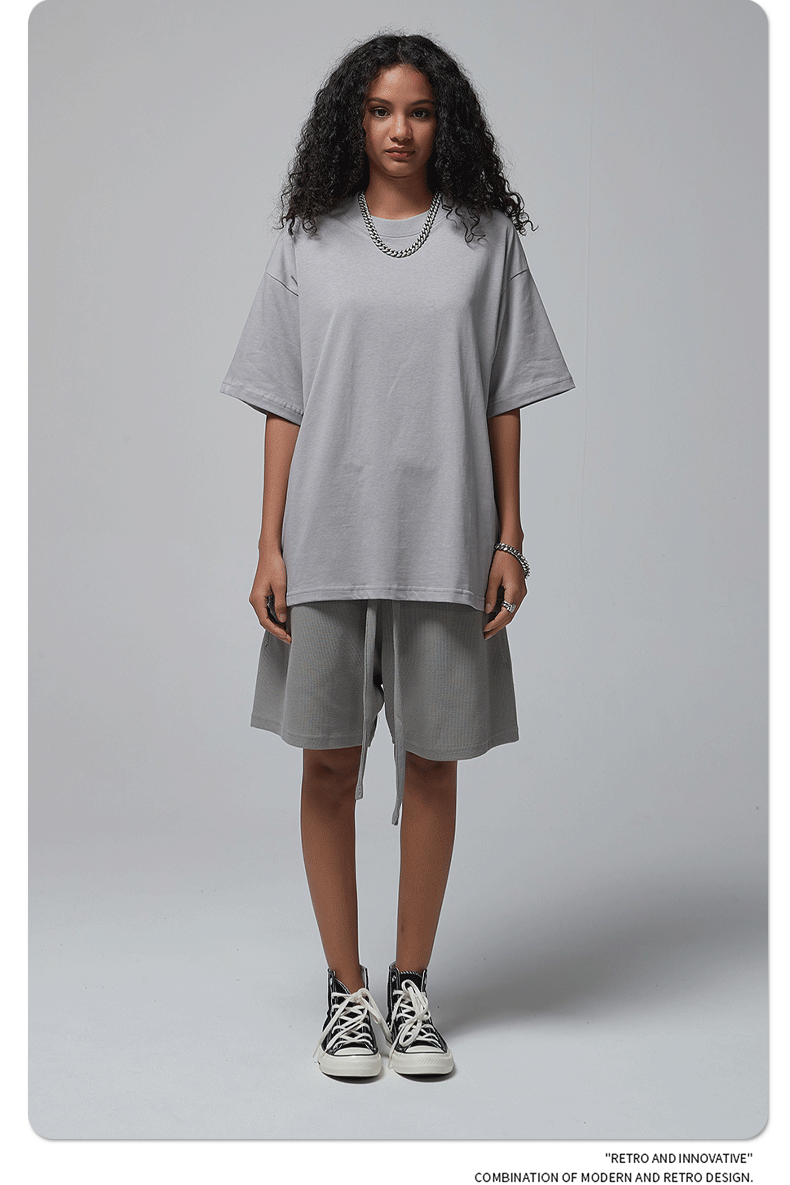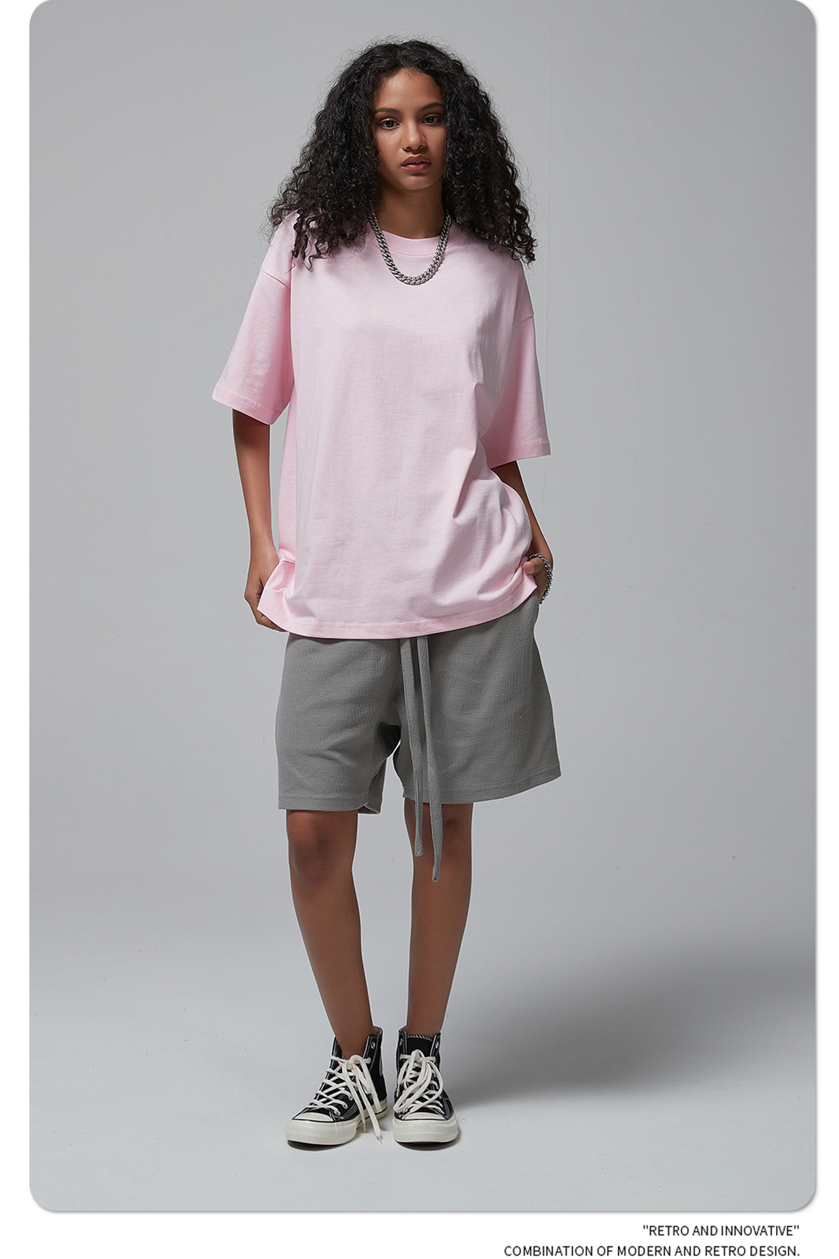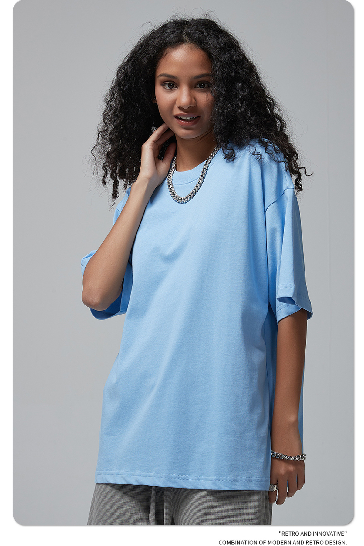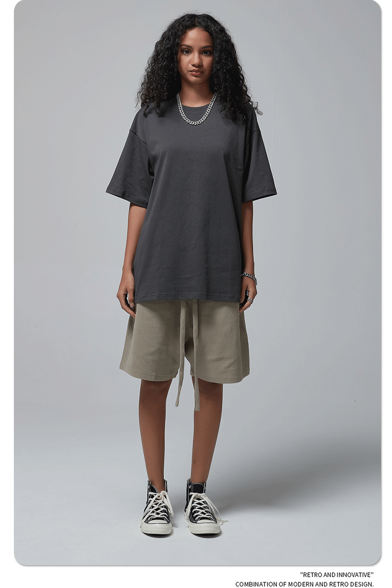 Мужская футболка унисекс из чистого хлопка, летняя, 2025, двойная пряжа, 230 г, со спущенным плечом, свободный крой, в американском стиле, модная, брендовая, без принта, с коротким рукавом