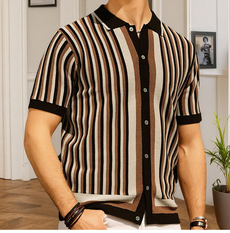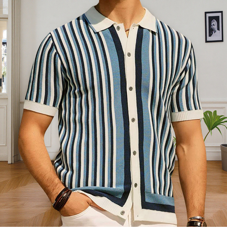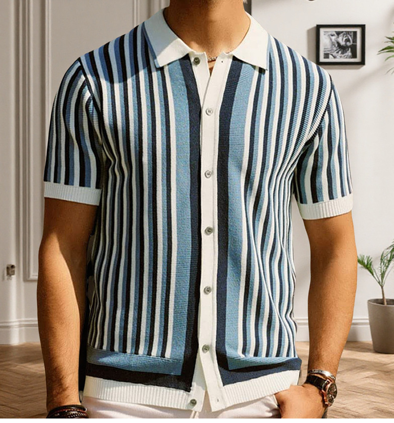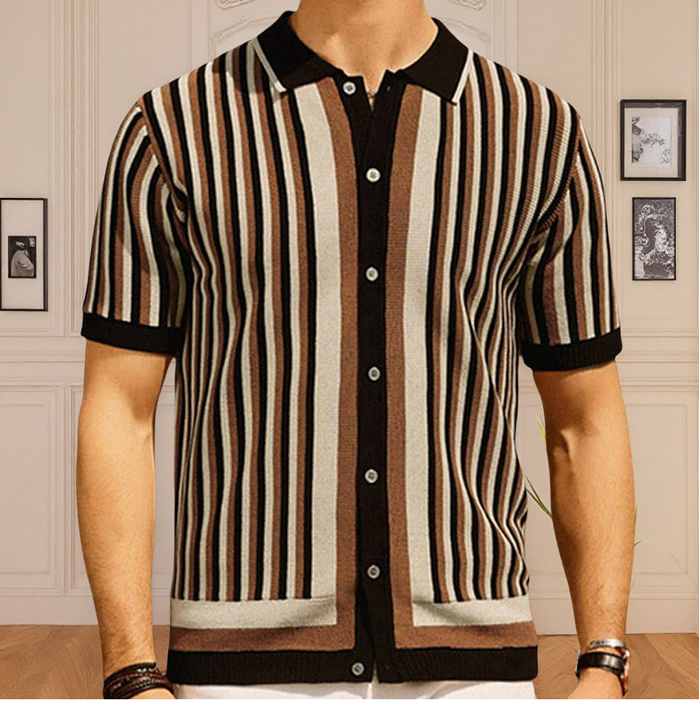 Amazon Мужская европейская и американская мужская полосатая трикотажная трикотажная деловая повседневная рубашка Поло SY0104