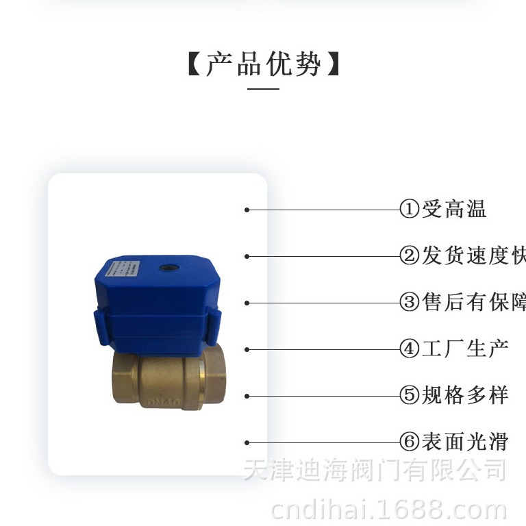 微型电动球阀主要有:断电复位型,常闭型,常开型,三线两控型,三线一控型,两线颠倒正负极控制型,输出力矩范围内为2NM—10NM,可选电源有直流:DC5V、DC12V、DC24V、交流:AC24V、AC220V、开闭时间范围为3S—20S,广泛应用于:石化、电力、造纸、楼宇自控、给排水、脱硫、环保、水处理、IC卡表、太阳能、节水器及大型智能水表控制等多领域。