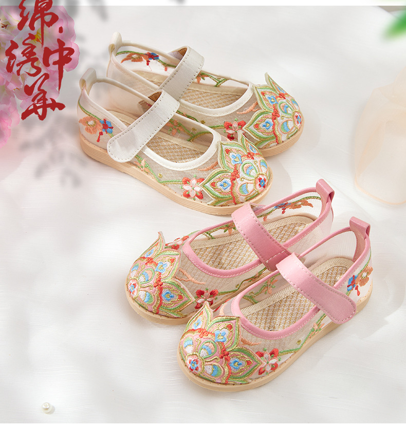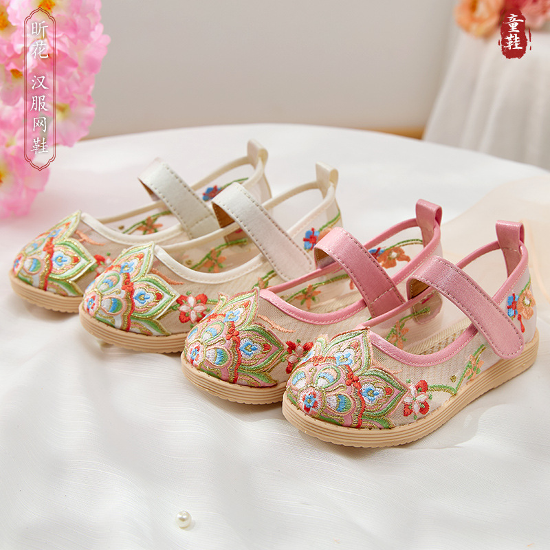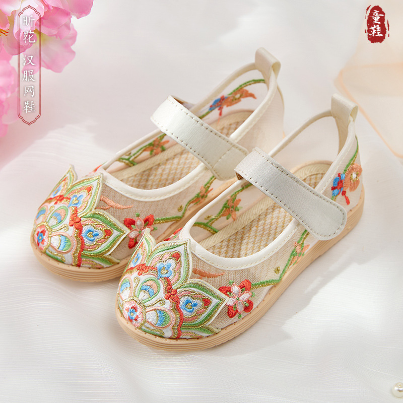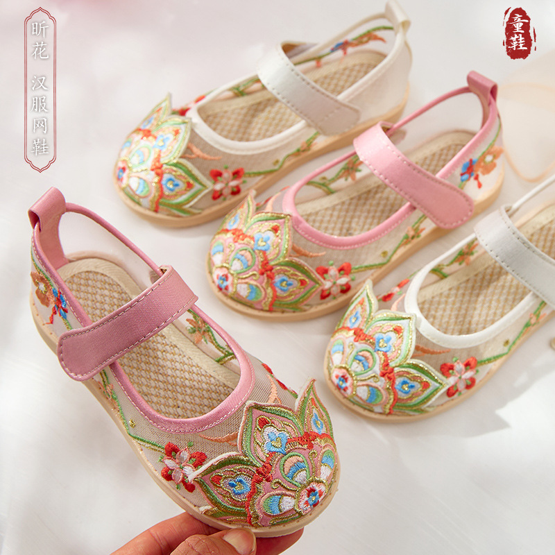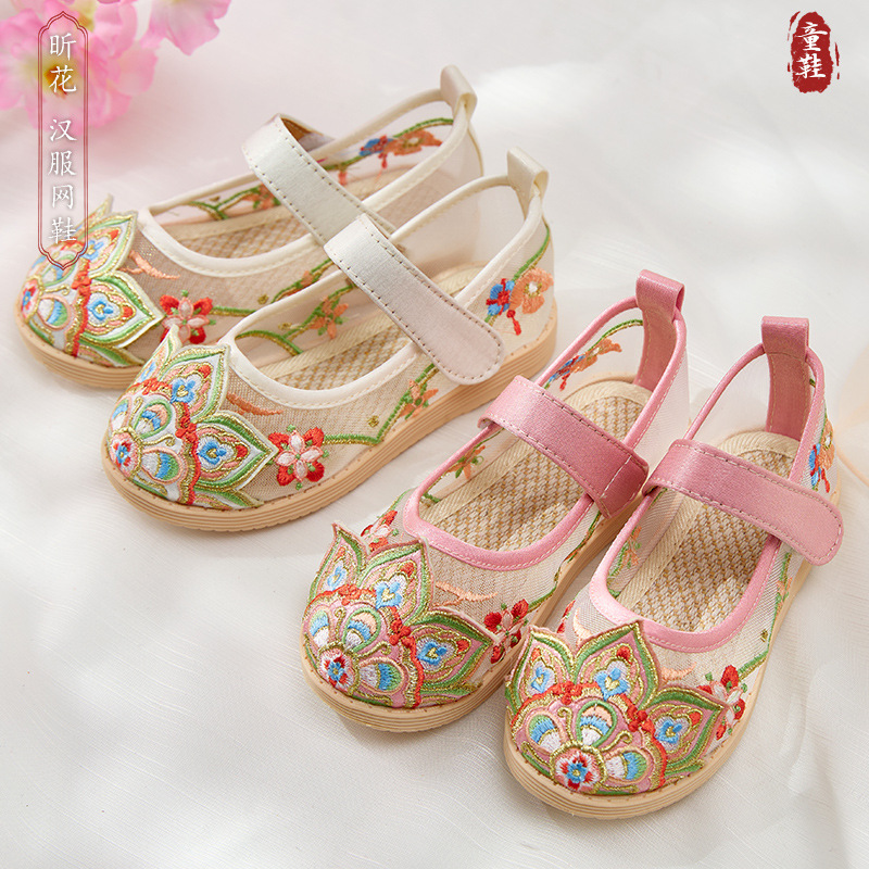 Hanfu национальная обувь с вышитым стилем летняя детская обувь Xin цветочная сетка обувь сетка старинные сандалии Hanfu ретро легкие старинные костюмы обувь