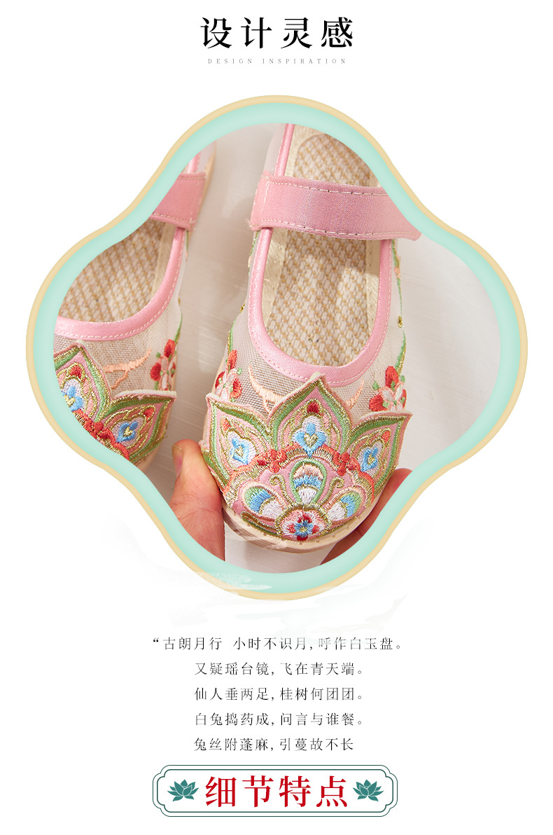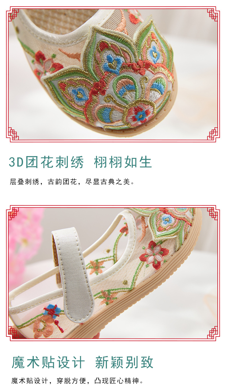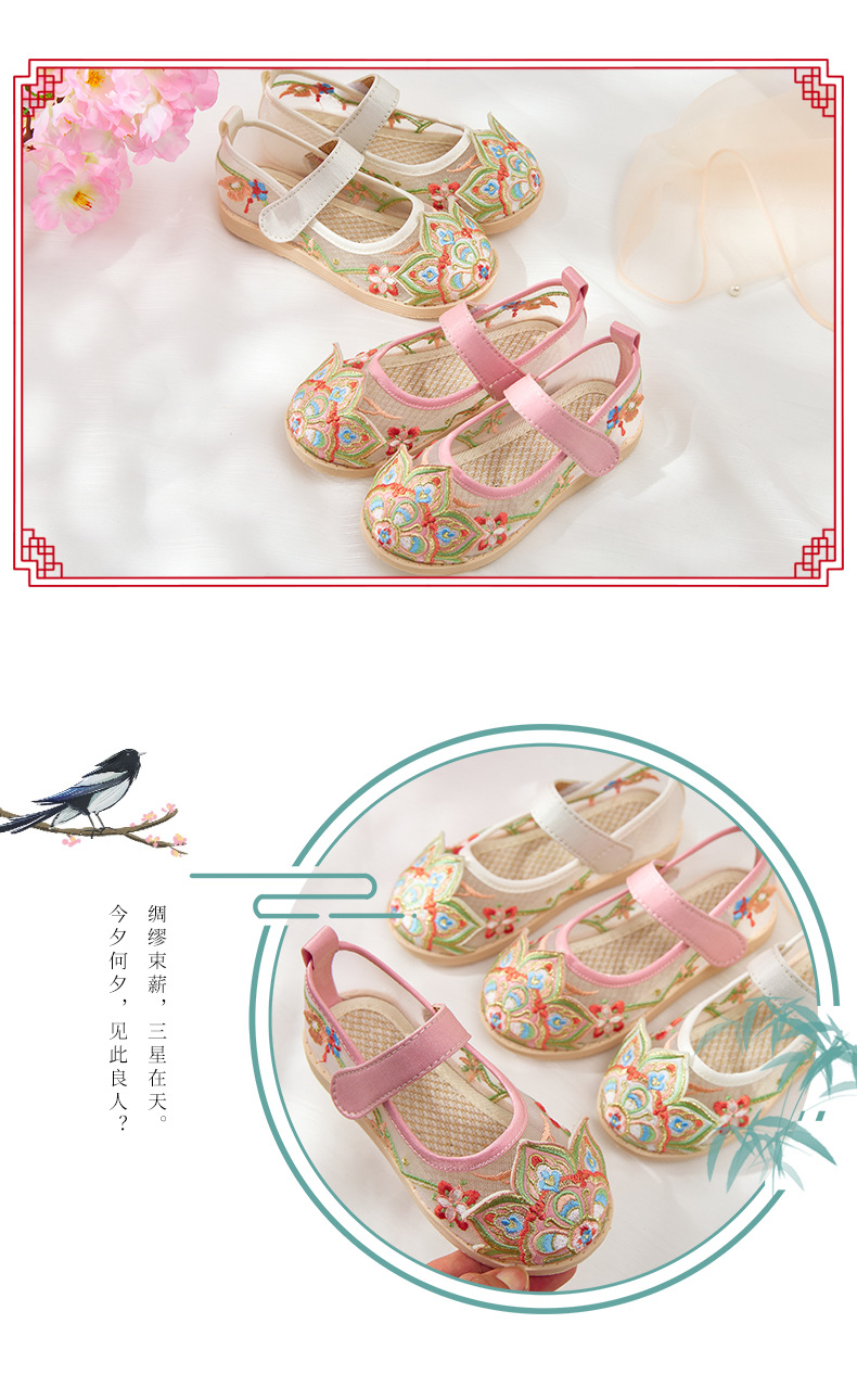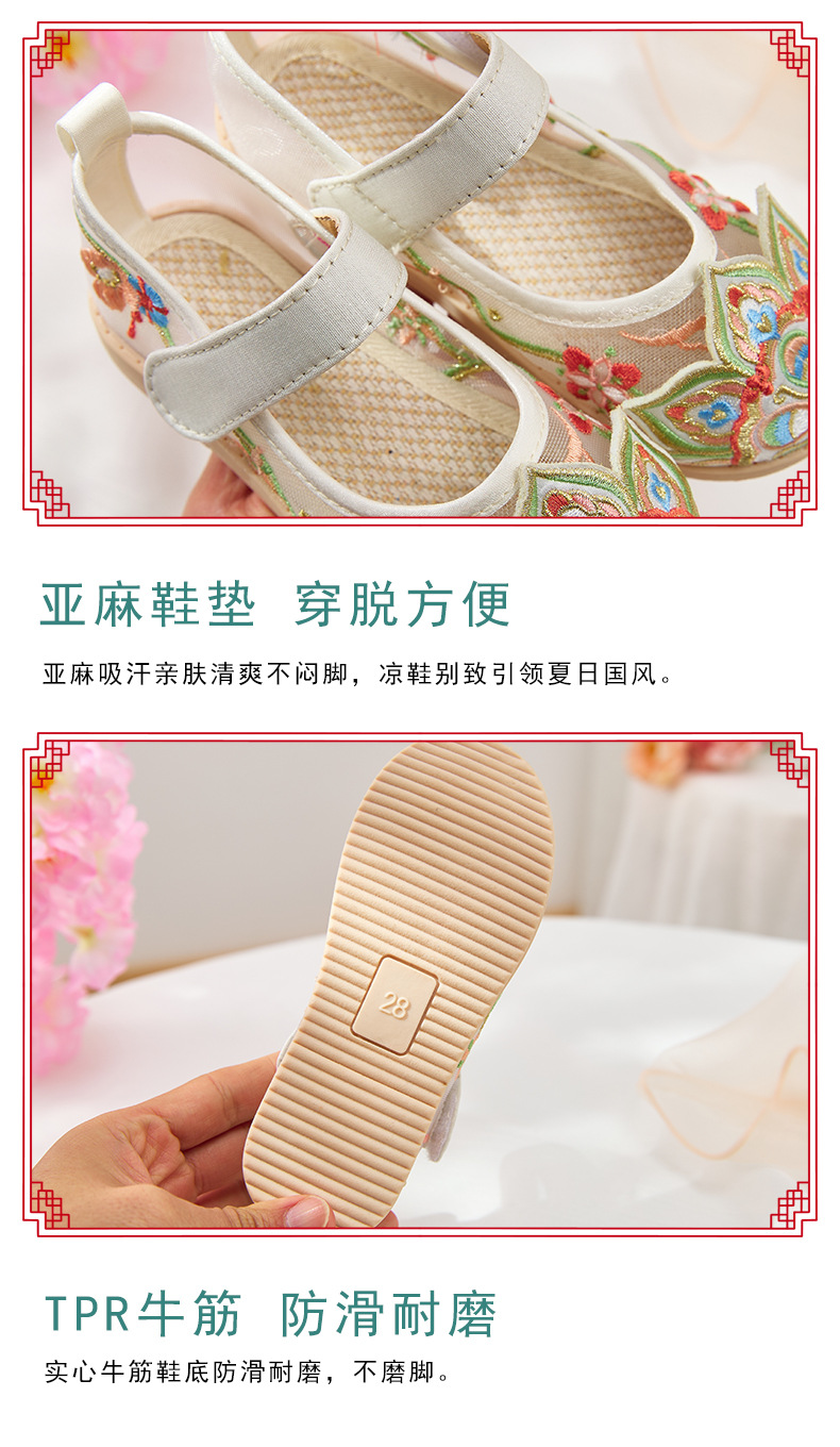 Hanfu национальная обувь с вышитым стилем летняя детская обувь Xin цветочная сетка обувь сетка старинные сандалии Hanfu ретро легкие старинные костюмы обувь