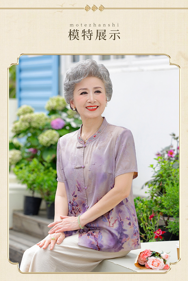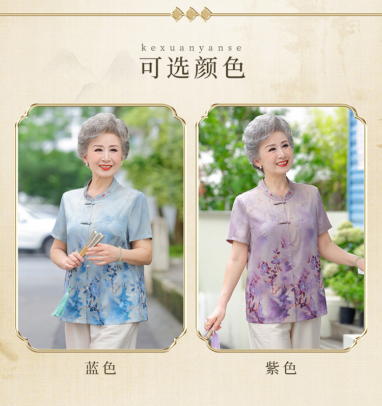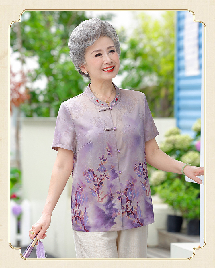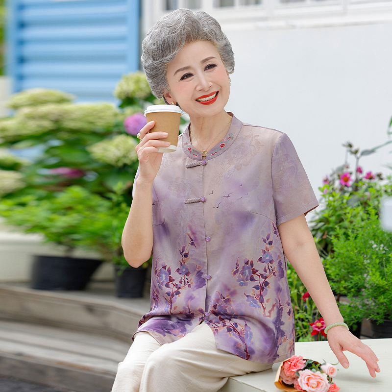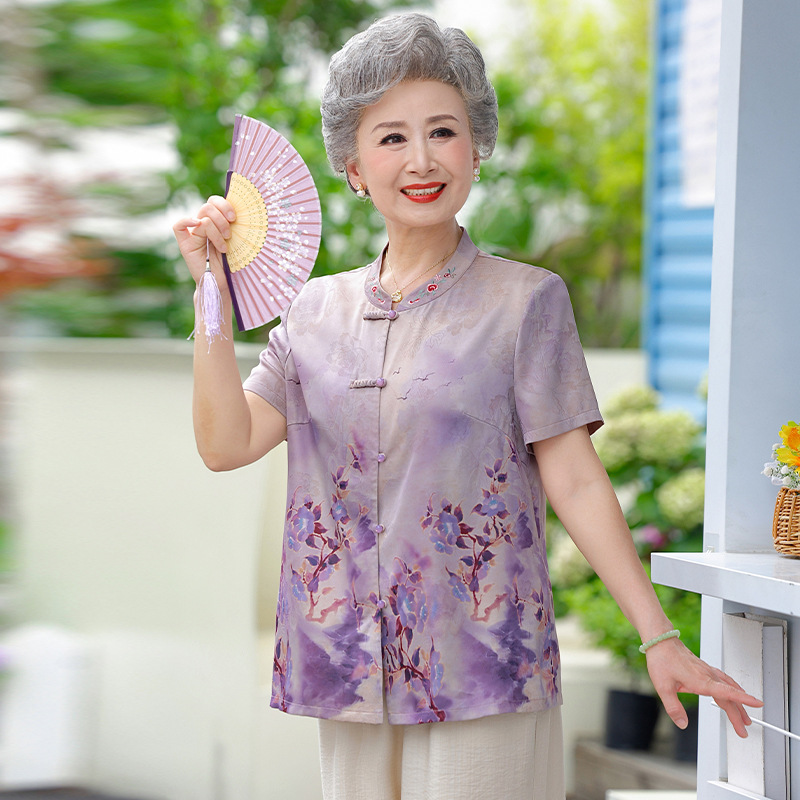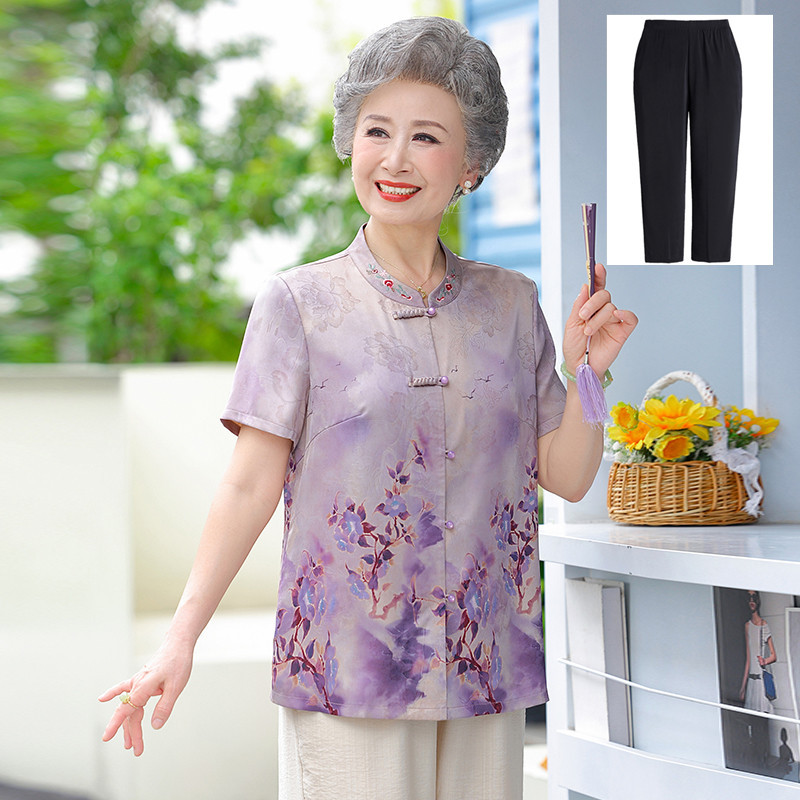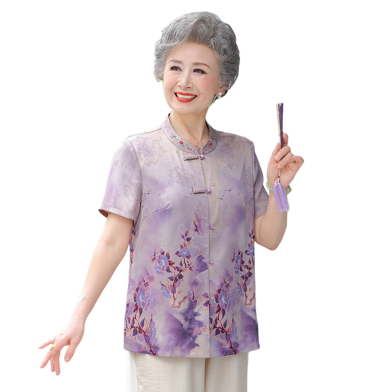 Летние рубашки для женщин среднего и пожилого возраста, бабушка с цветочным принтом и короткими рукавами для мамы, новая летняя одежда 2024 года для пожилых людей