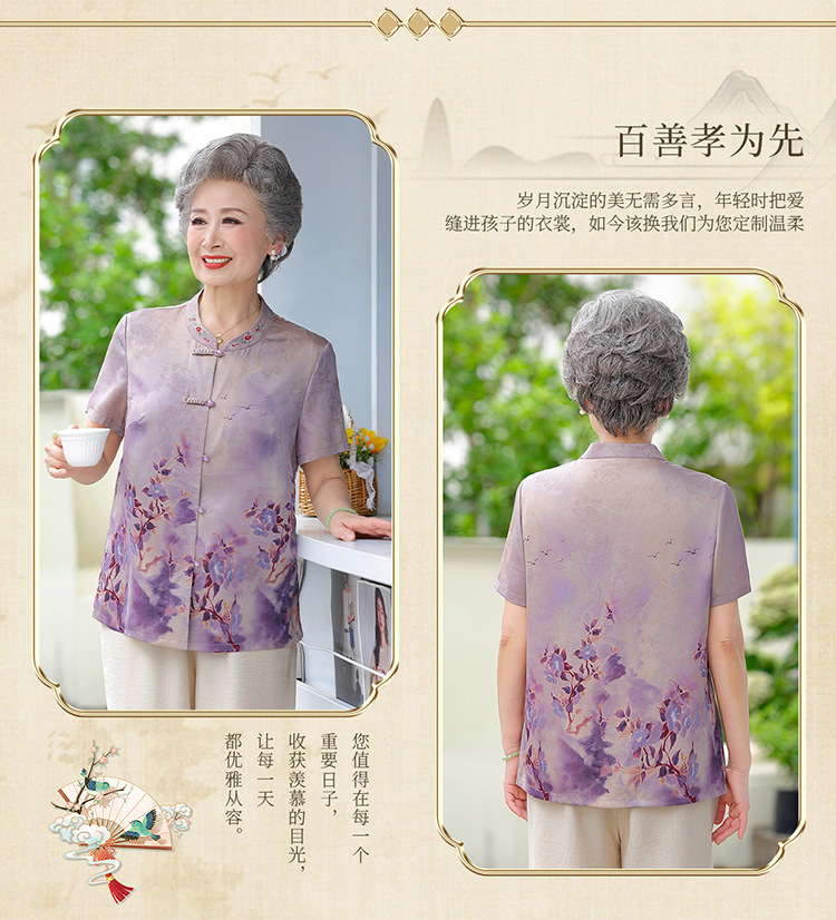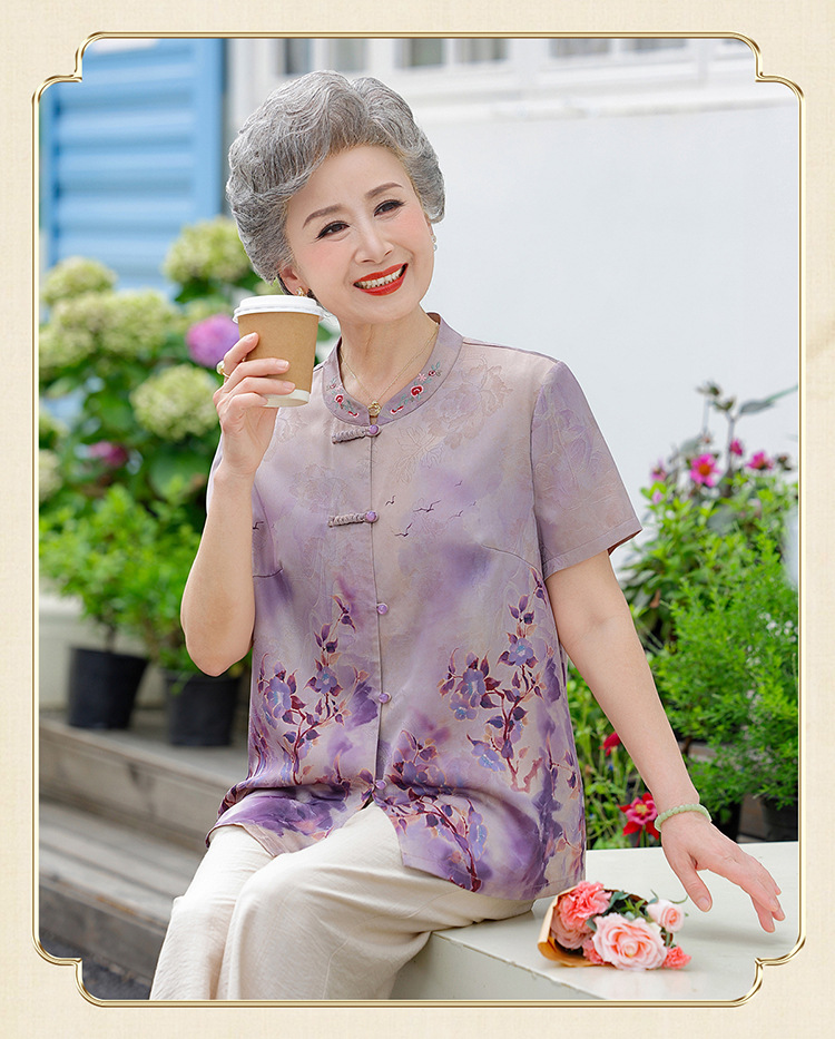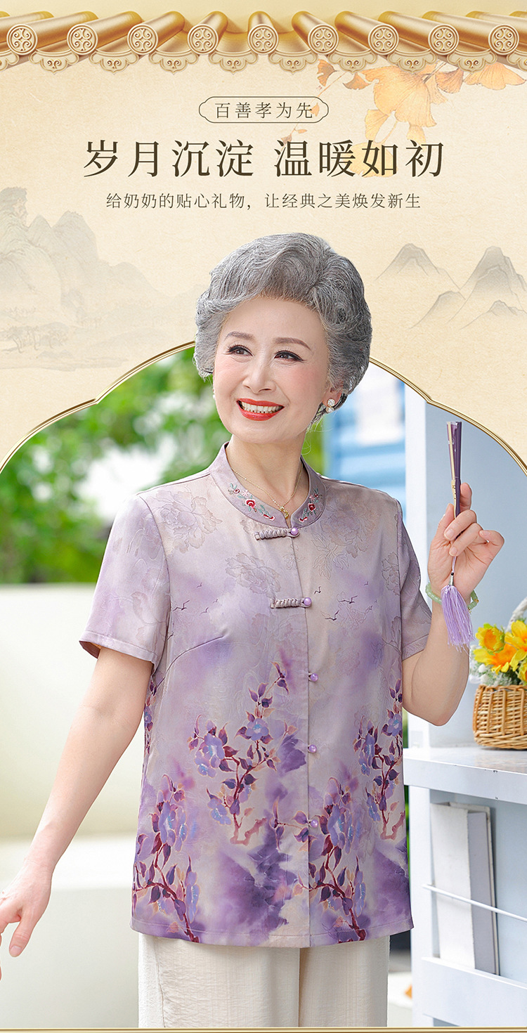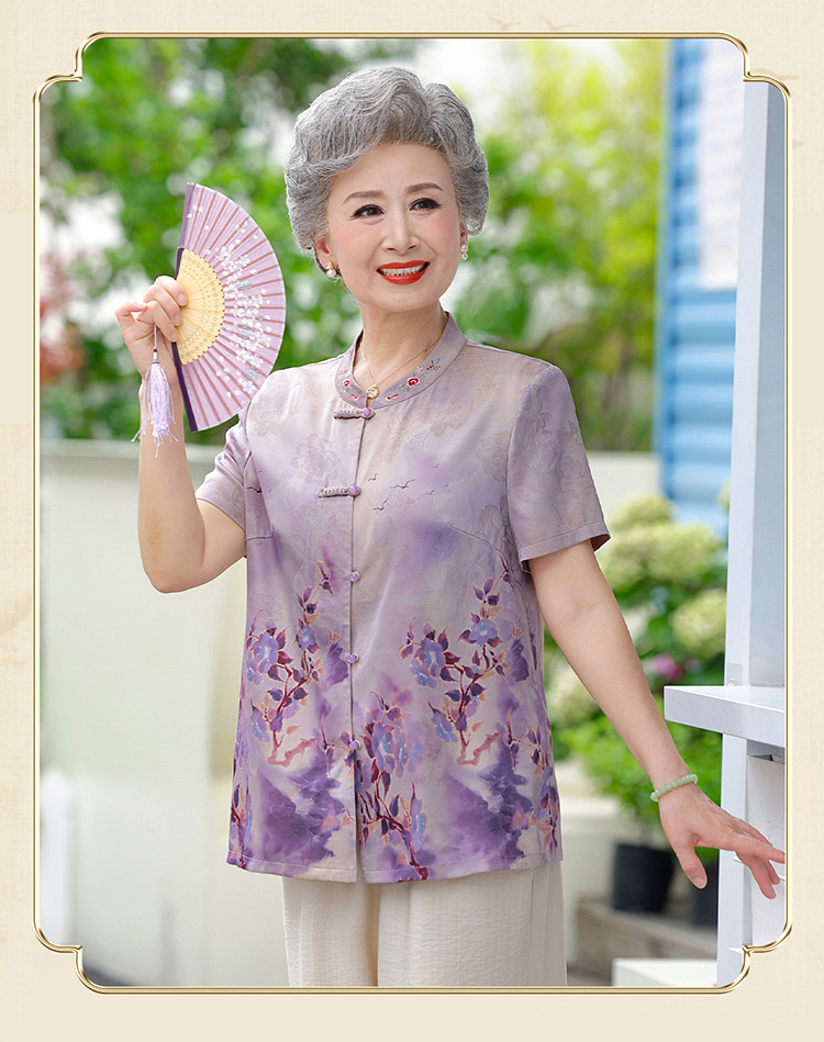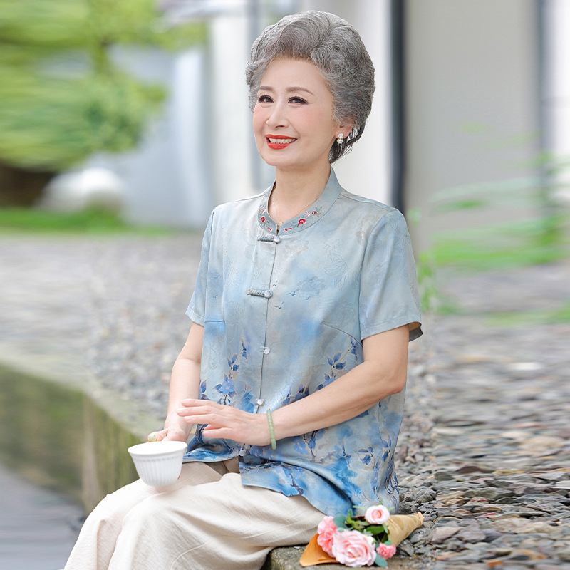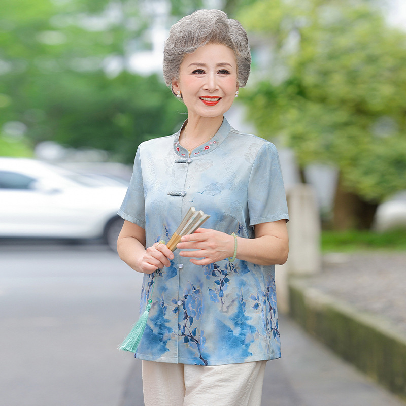 Летние рубашки для женщин среднего и пожилого возраста, бабушка с цветочным принтом и короткими рукавами для мамы, новая летняя одежда 2024 года для пожилых людей