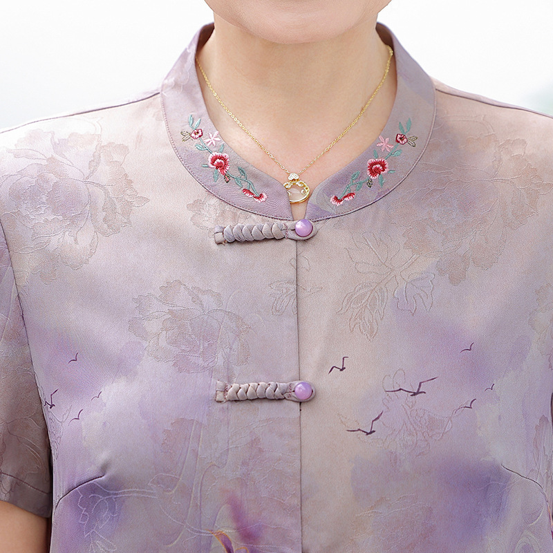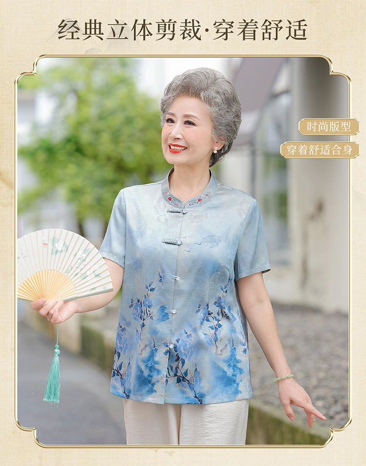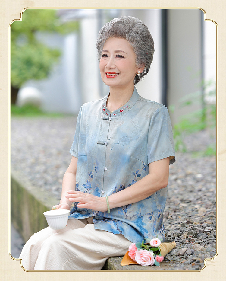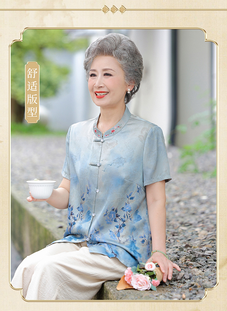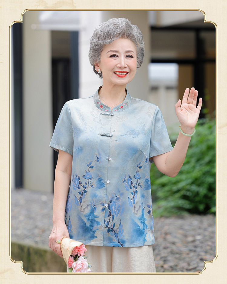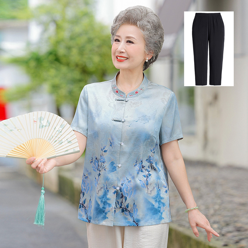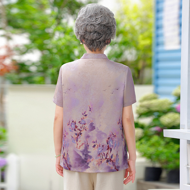 Летние рубашки для женщин среднего и пожилого возраста, бабушка с цветочным принтом и короткими рукавами для мамы, новая летняя одежда 2024 года для пожилых людей