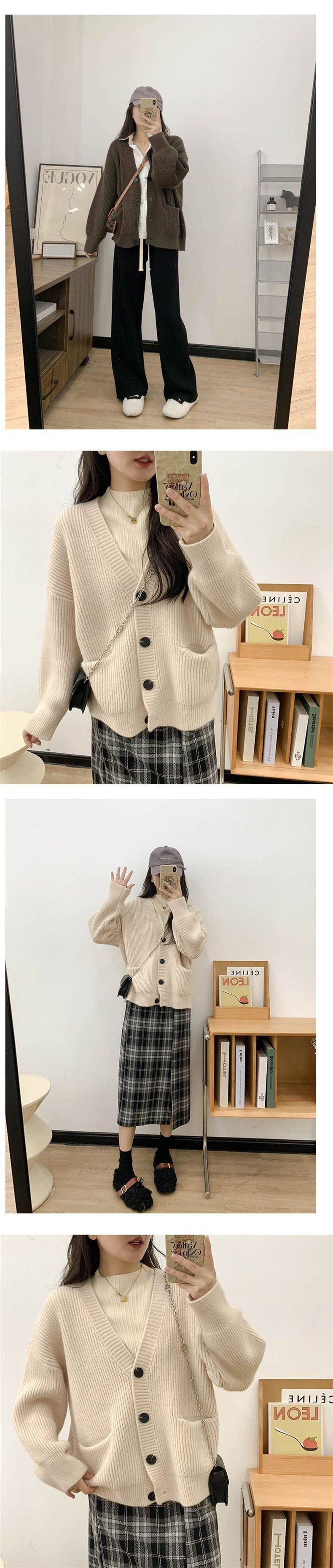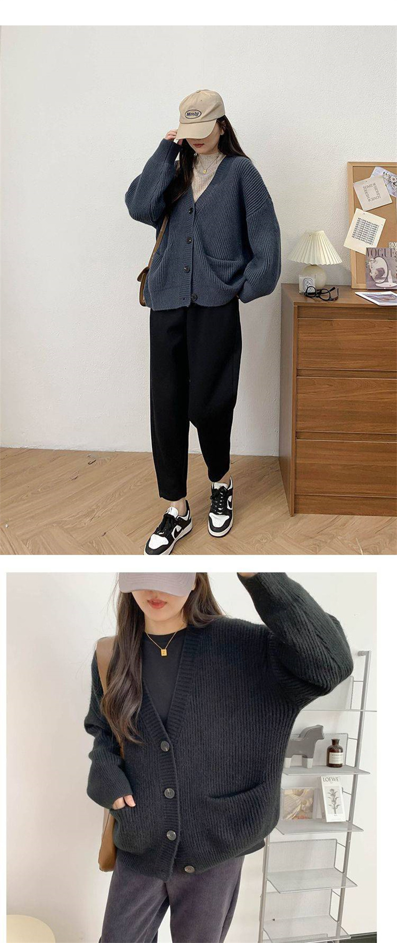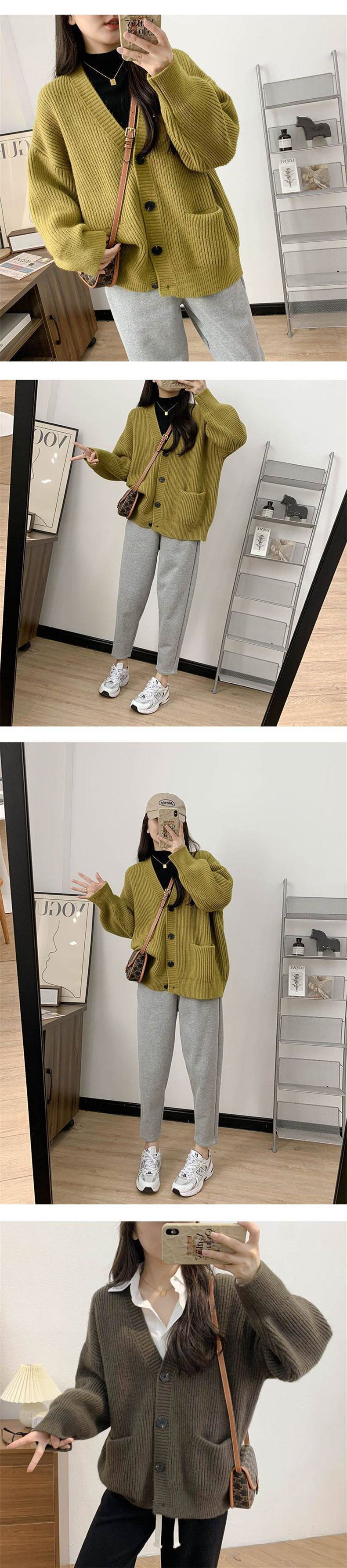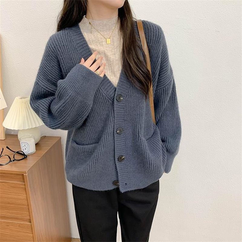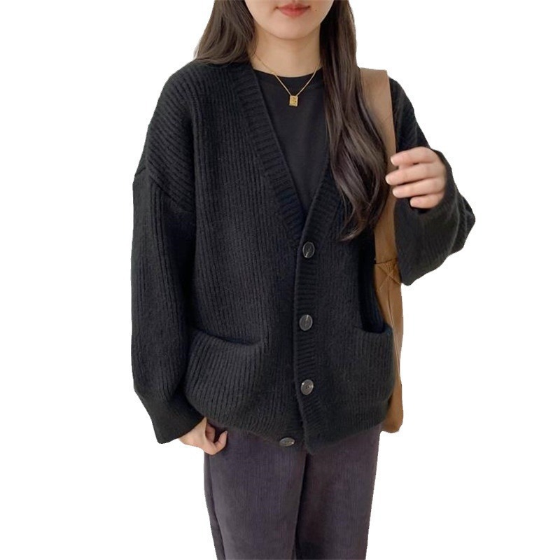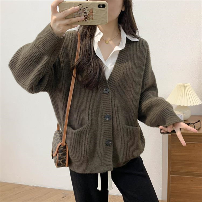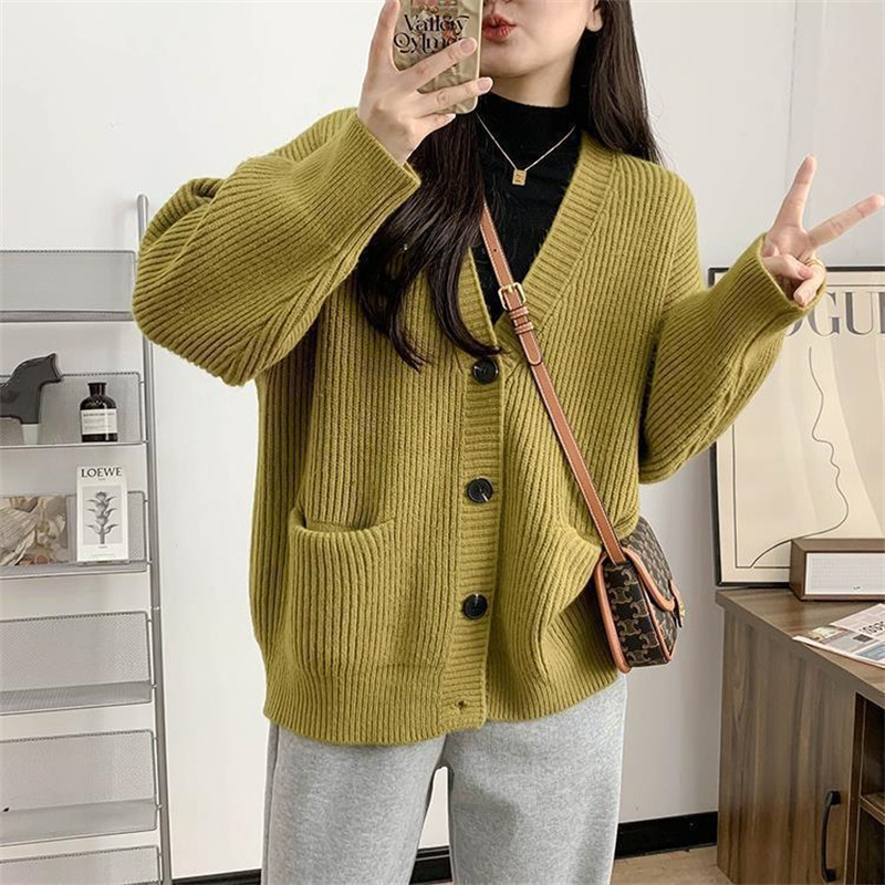 Трикотажный кардиган женская пуговица осень зима новый 2024 ленивый ветер мягкий восковой свободный свитер с v-образным вырезом свободный свитер женская куртка