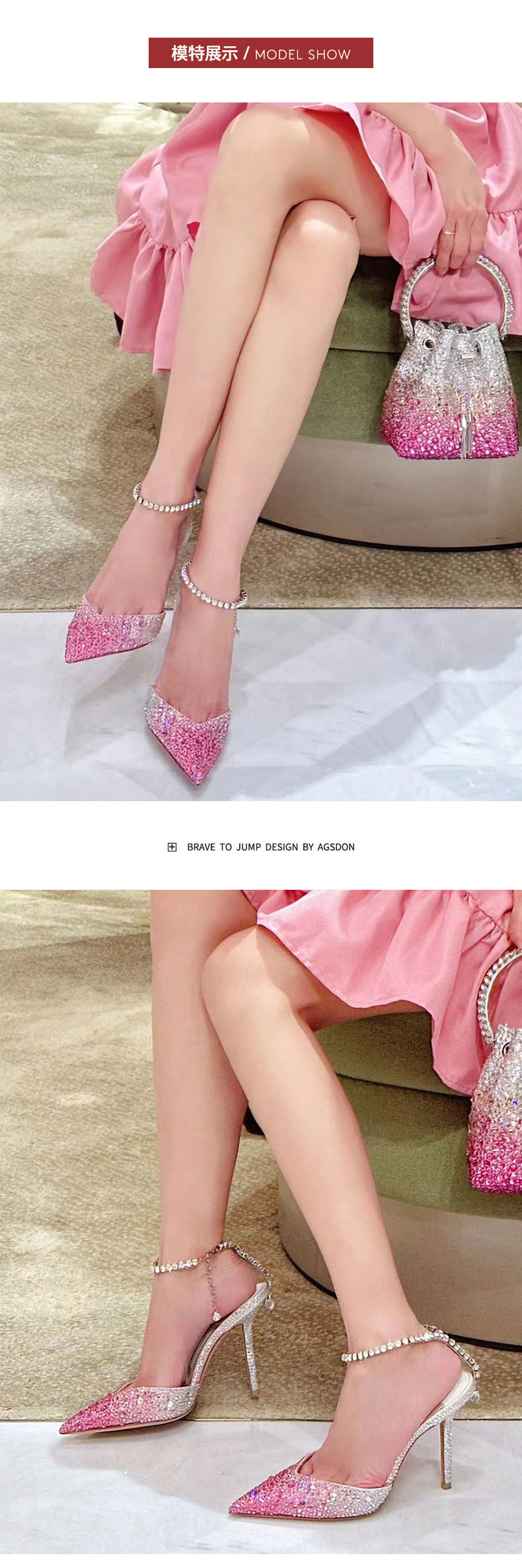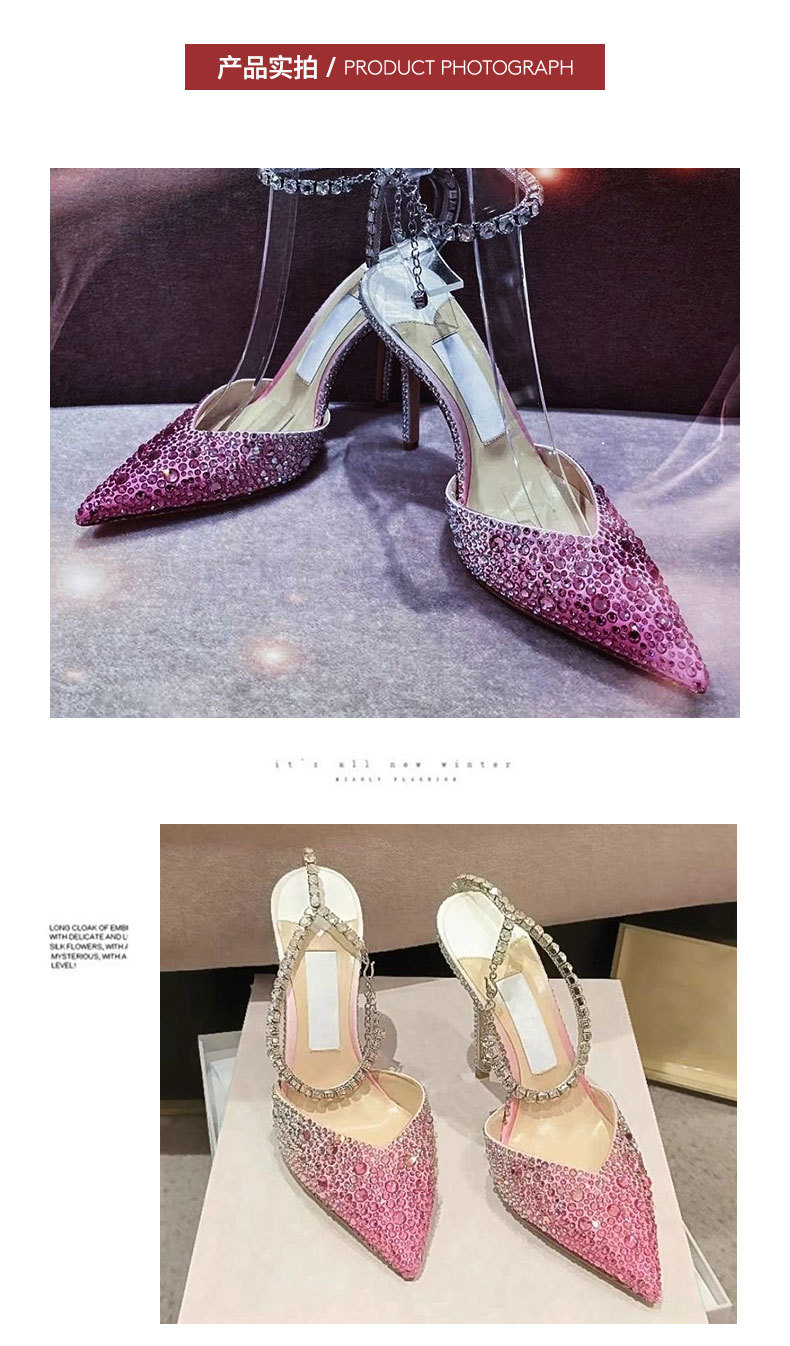 Европейские и американские розовые сандалии с градиентным носком для женщин на шпильках. Лето 2025 года, новые туфли с кристаллами и бриллиантами для мужчин и женщин на высоком каблуке.