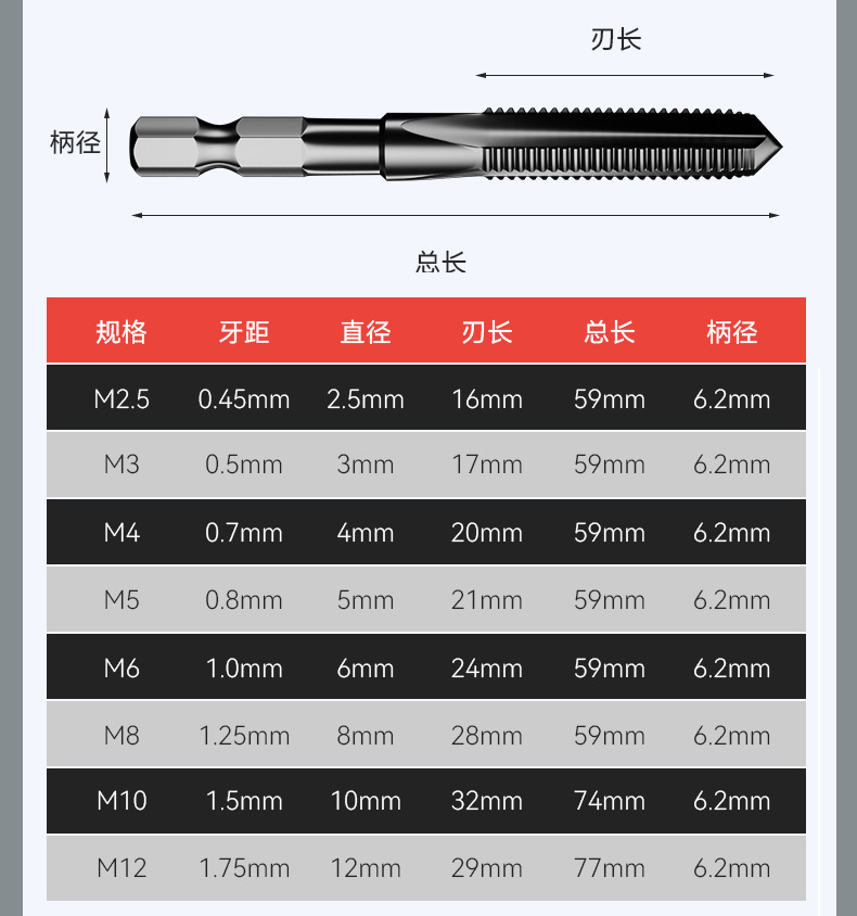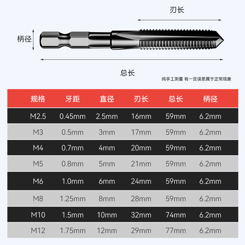 M2.5; M3; M4; M5; M6; M8; M10; M12