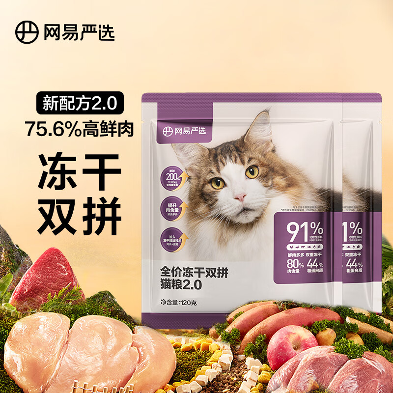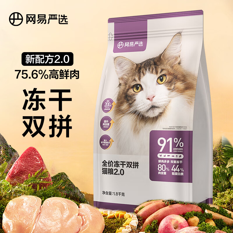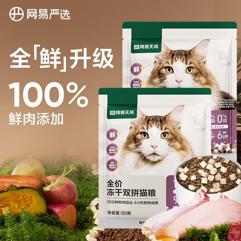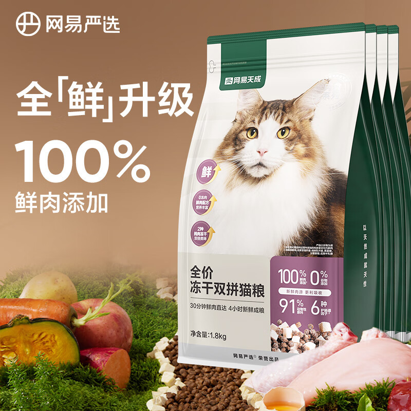 NetEase тщательно выбирает полноценный корм для кошек для молодых и взрослых кошек, лиофилизированный двойной корм для кошек, полноценный питательный натуральный корм без зерен.