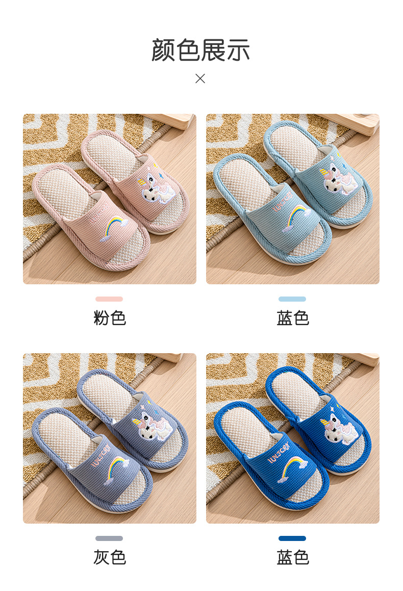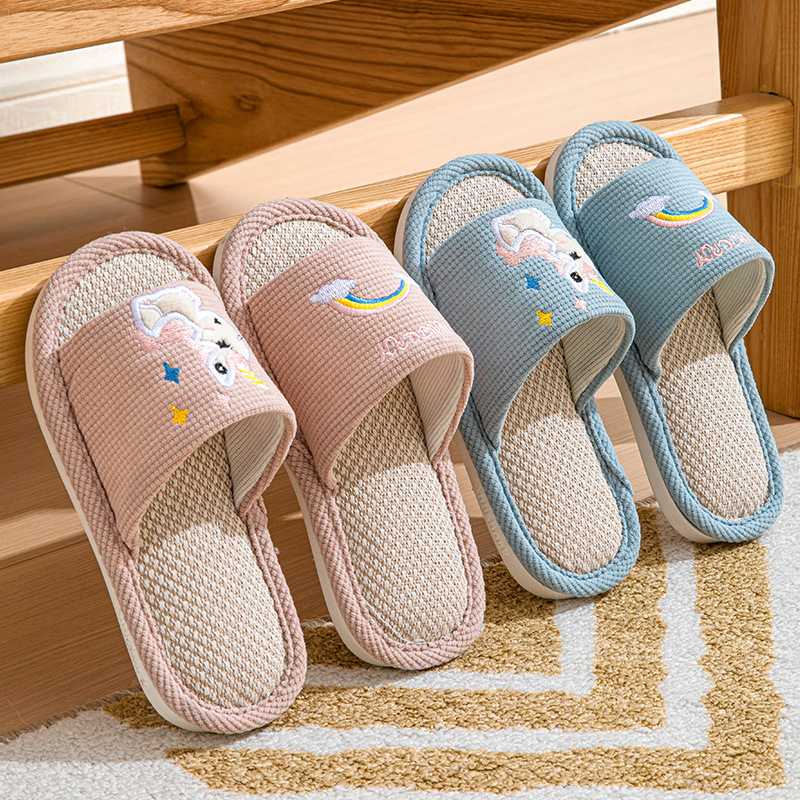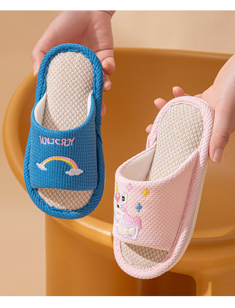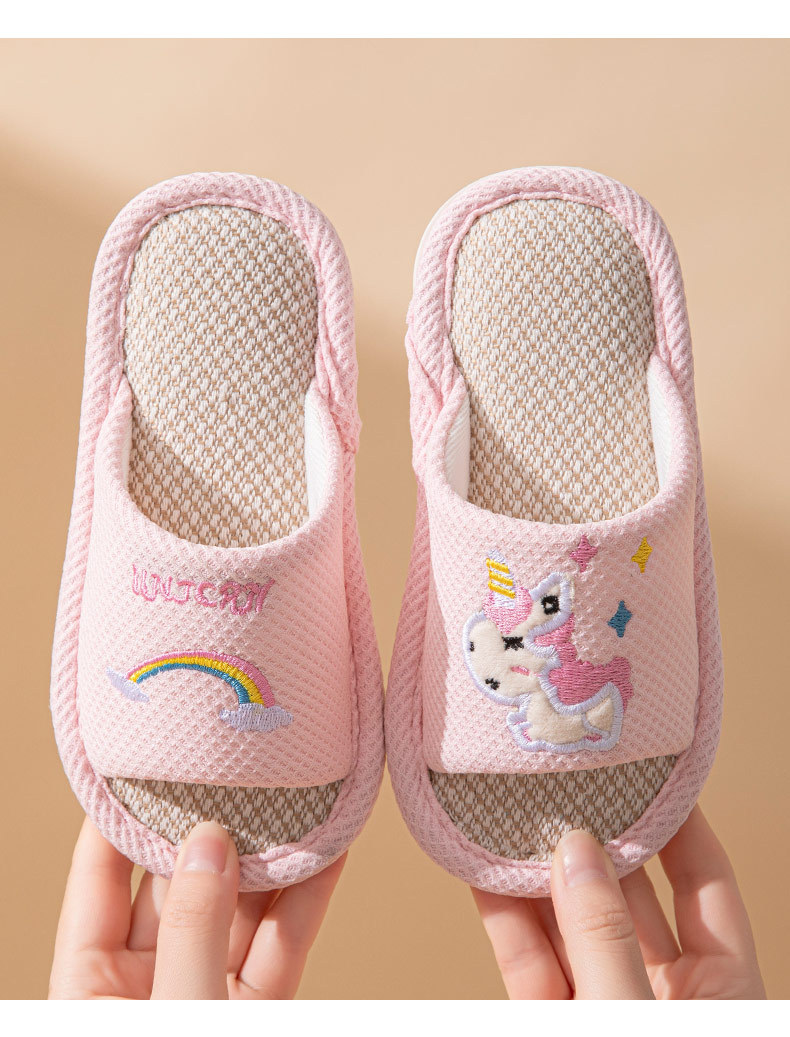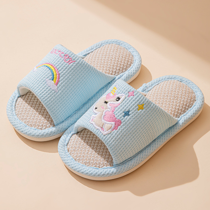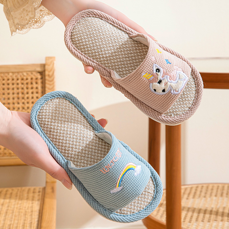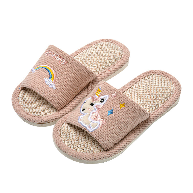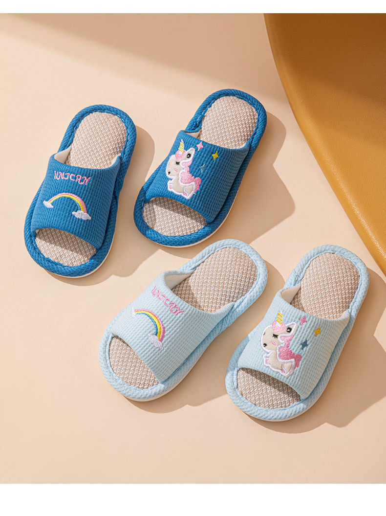 Радужный пони интерьер дома деревянные полы для мужчин и женщин для детей летом прохладные льняные тапочки