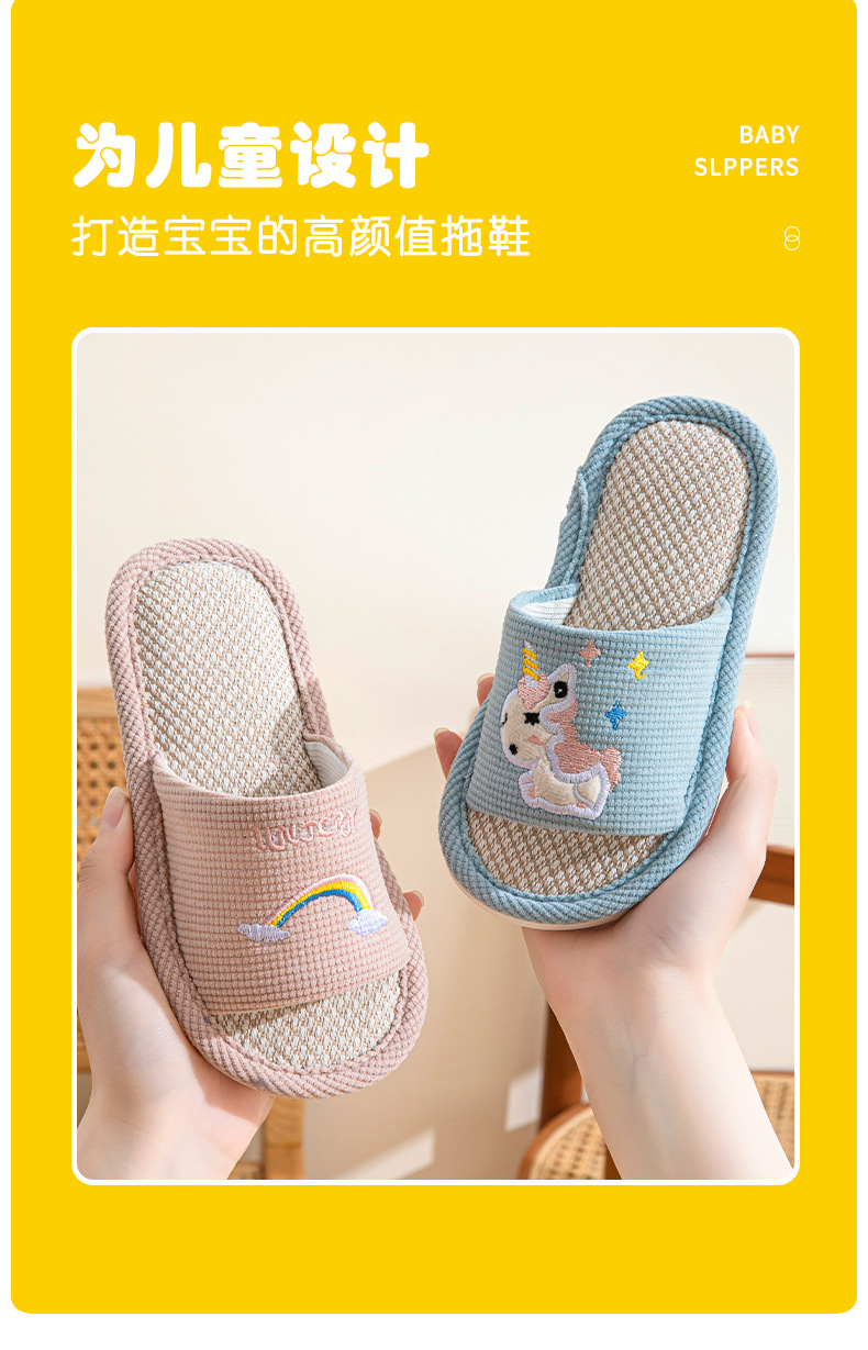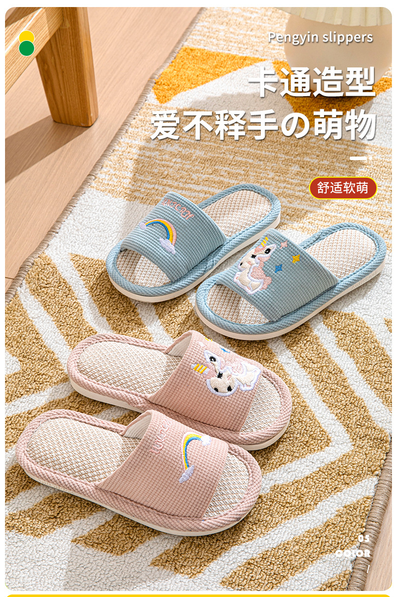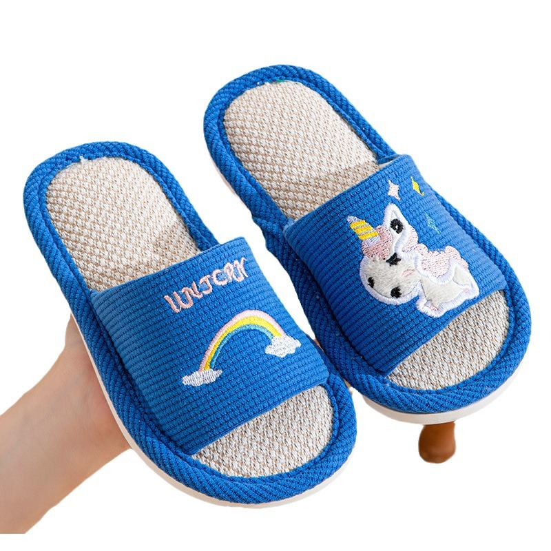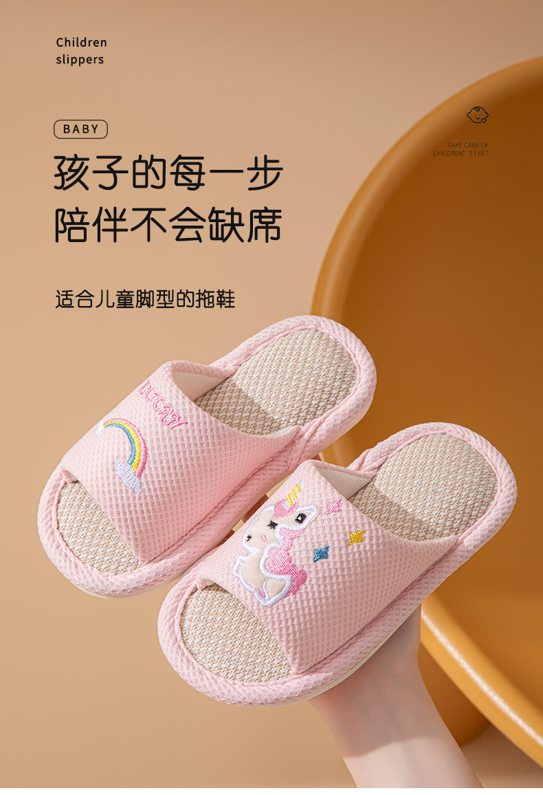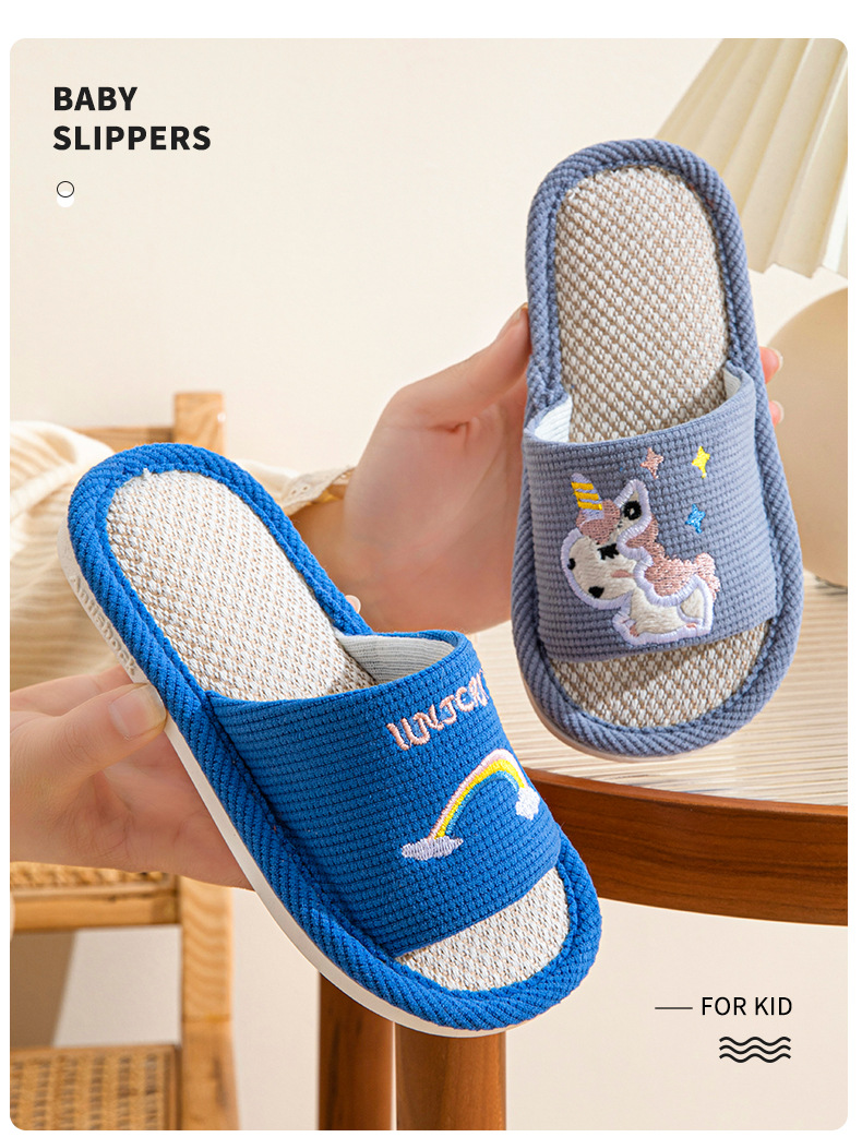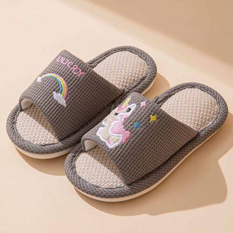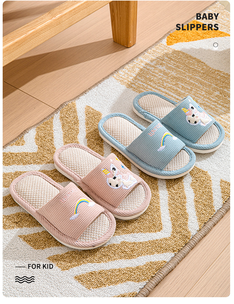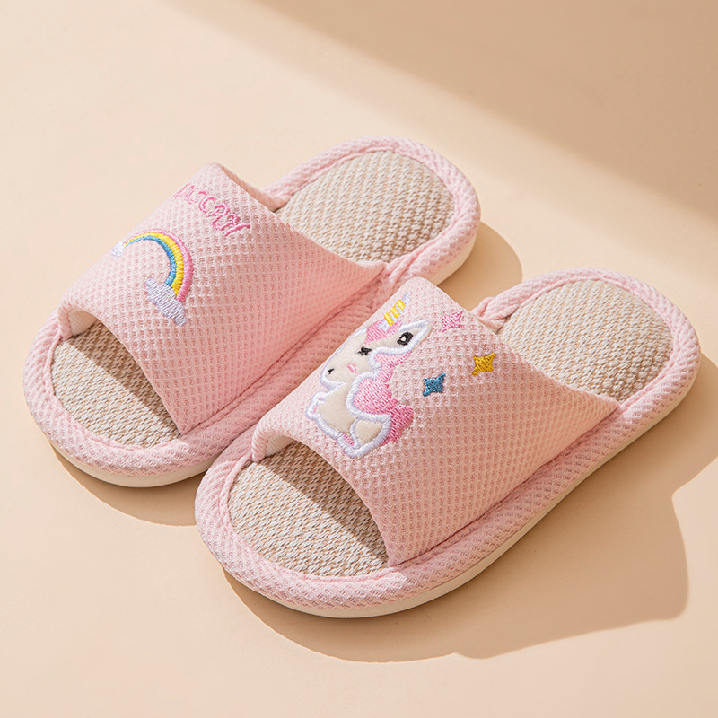 Радужный пони интерьер дома деревянные полы для мужчин и женщин для детей летом прохладные льняные тапочки