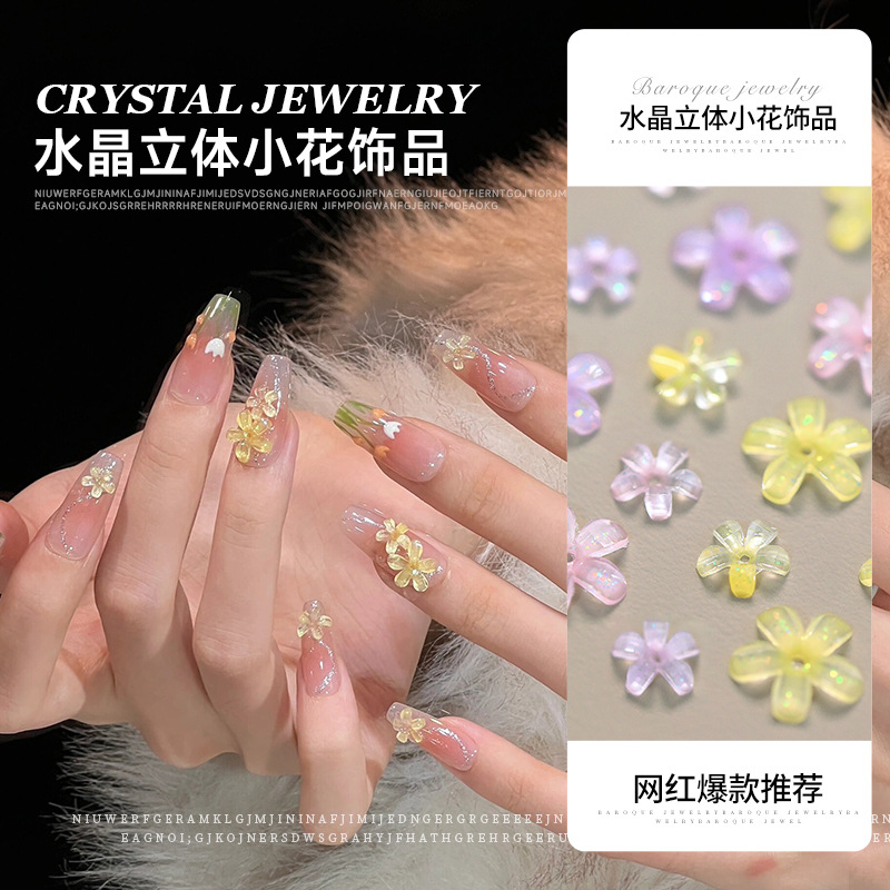 Сетка красный цветок маникюр украшение ледяной прозрачный трехмерный маленький мини-цветок для ношения ногтей бриллианты аксессуары оптом