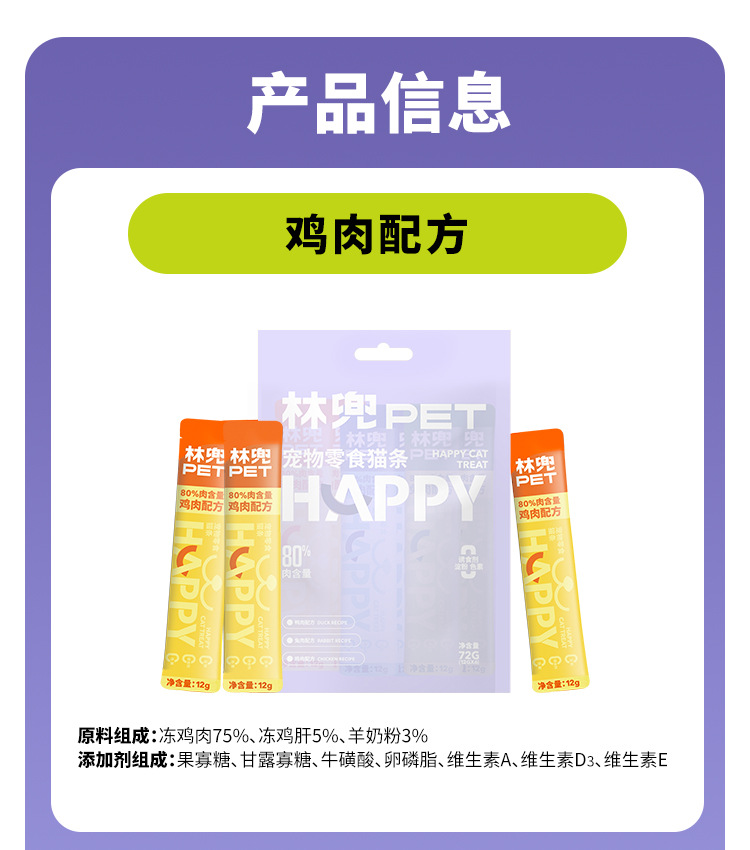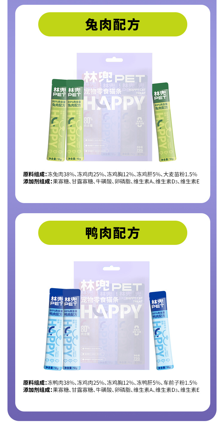 Lin Dou Cat PET Happy Cat Bar 6 штук свежего мяса и мясного фарша
