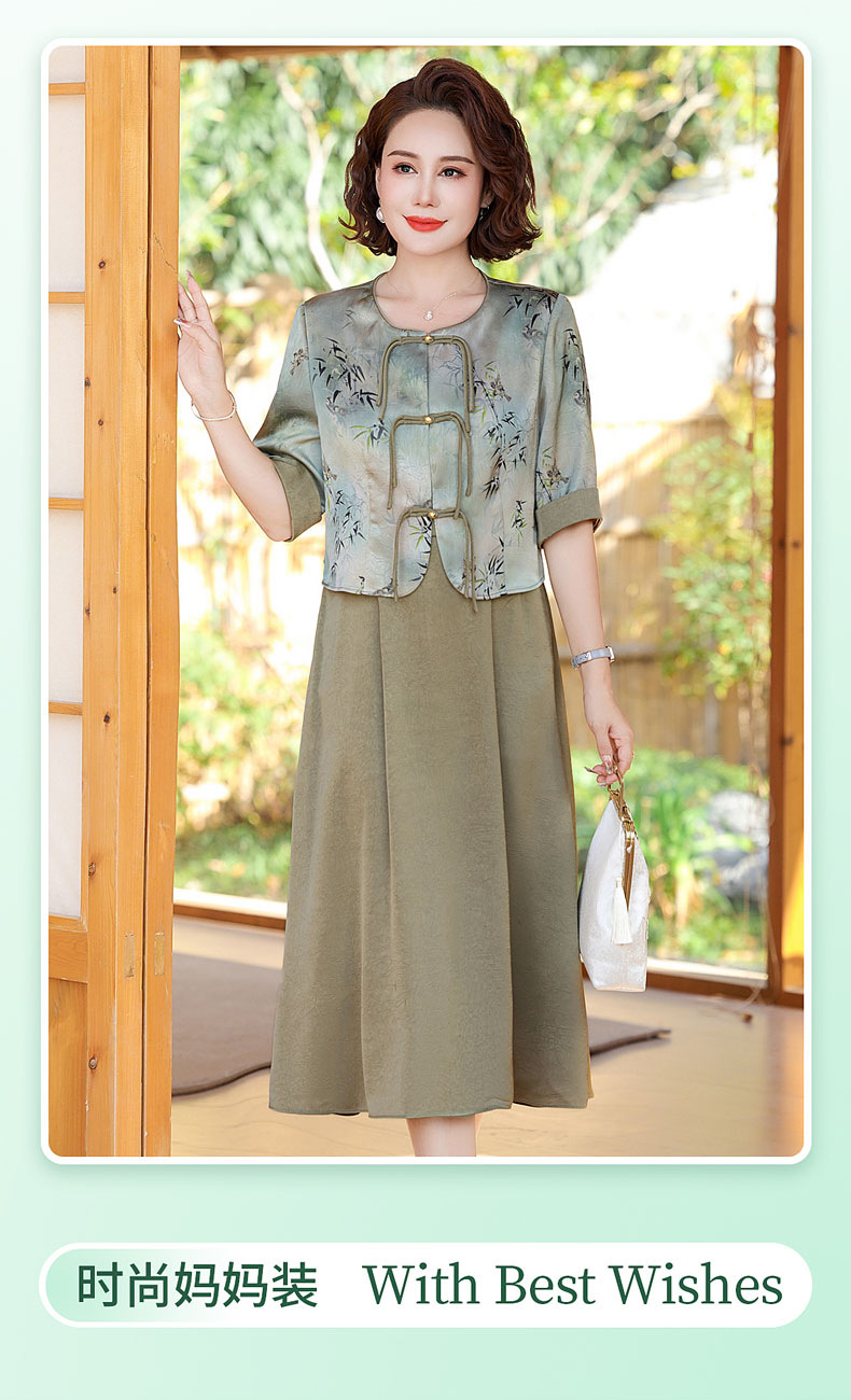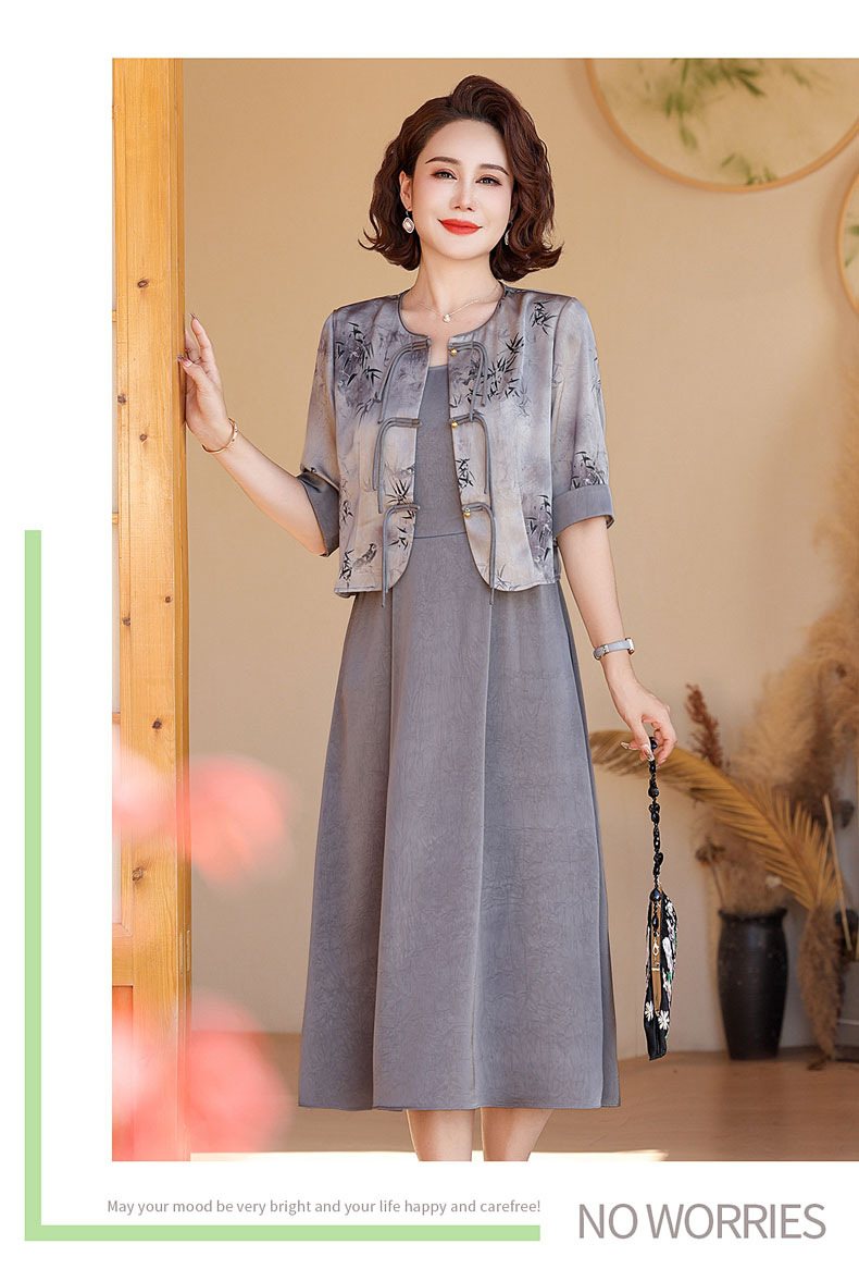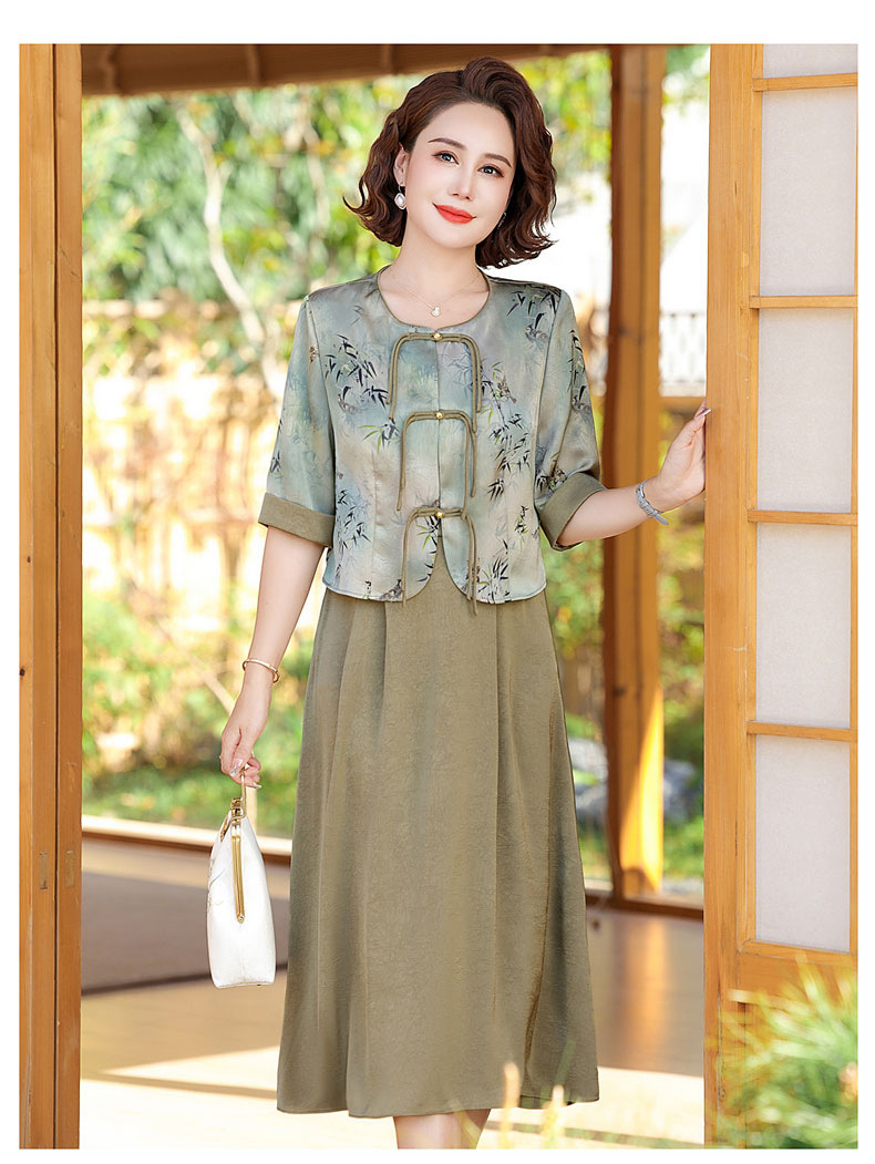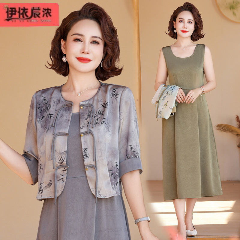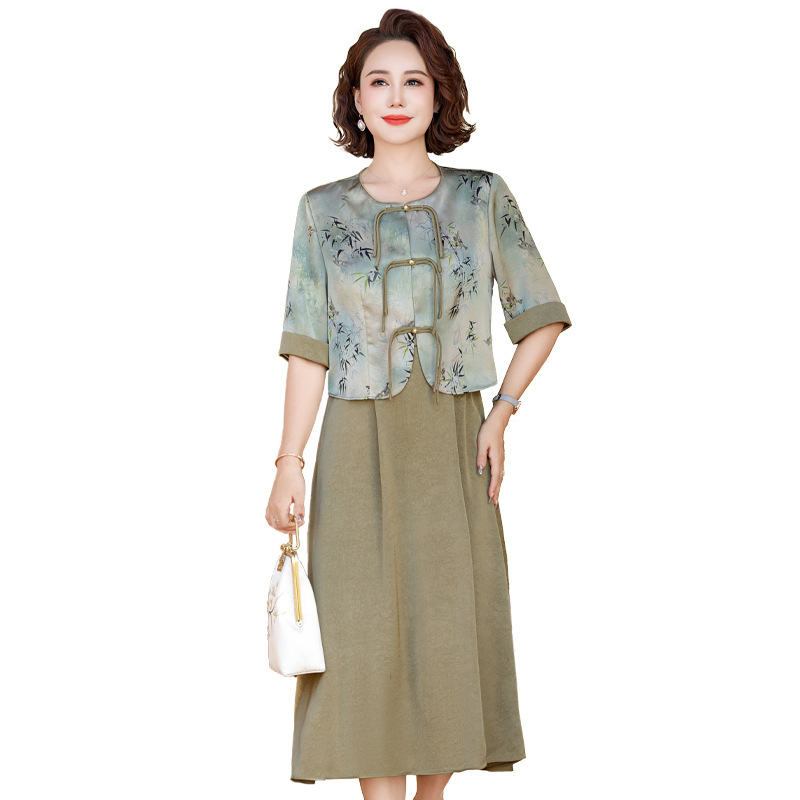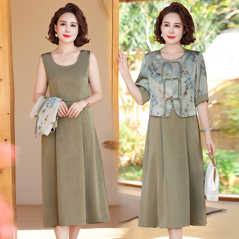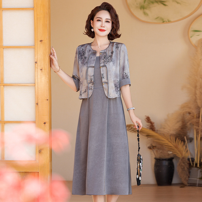 Темпераментный национальный стиль с короткими рукавами платье набор летом новая женщина среднего возраста
