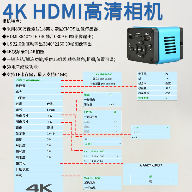 KOPPACE 4k HD-камера микроскопа HDMI/Type-C выход 8,3 млн пикселей