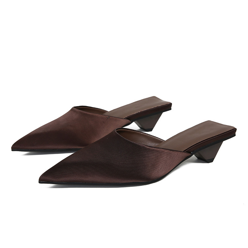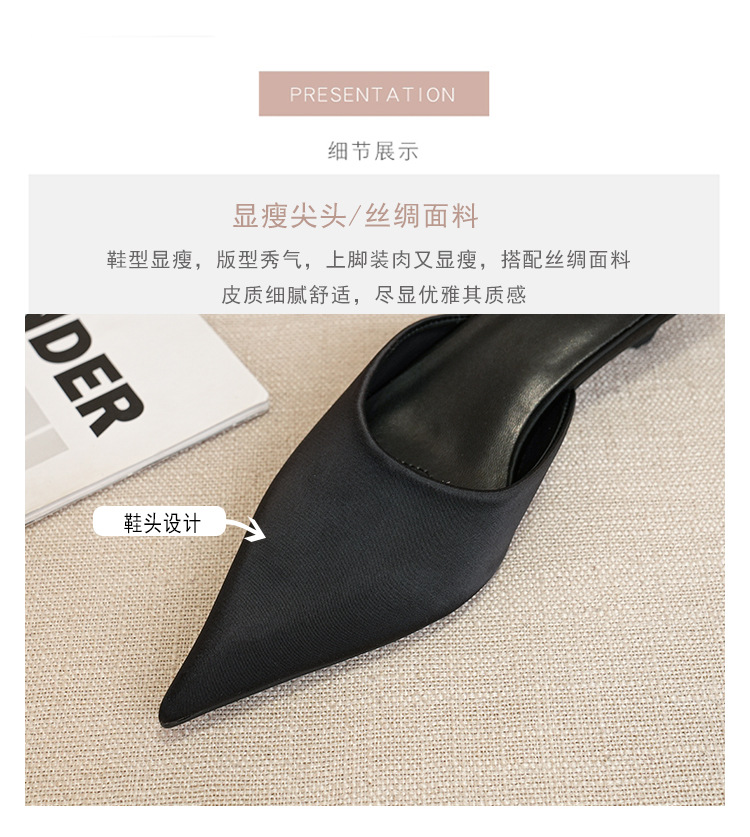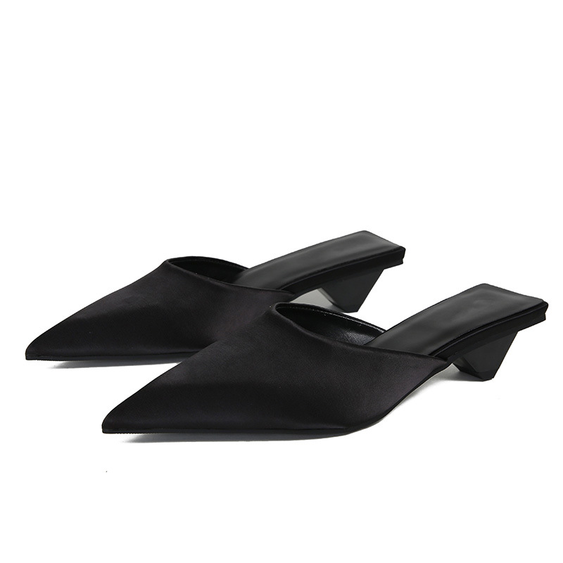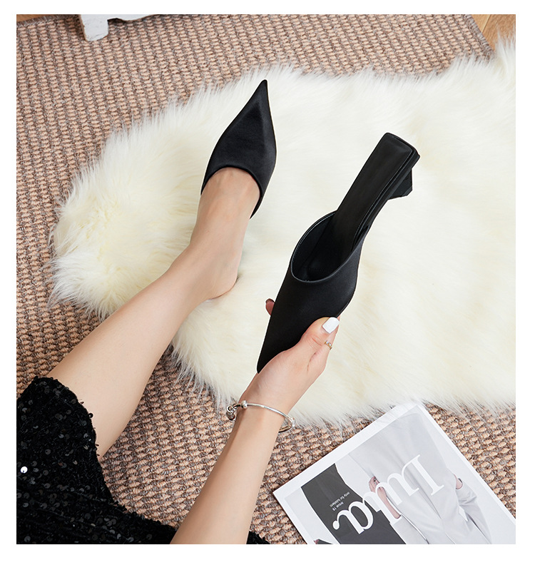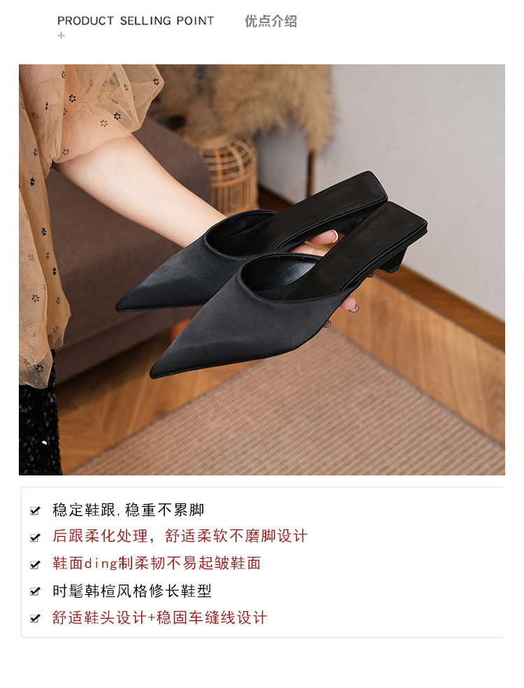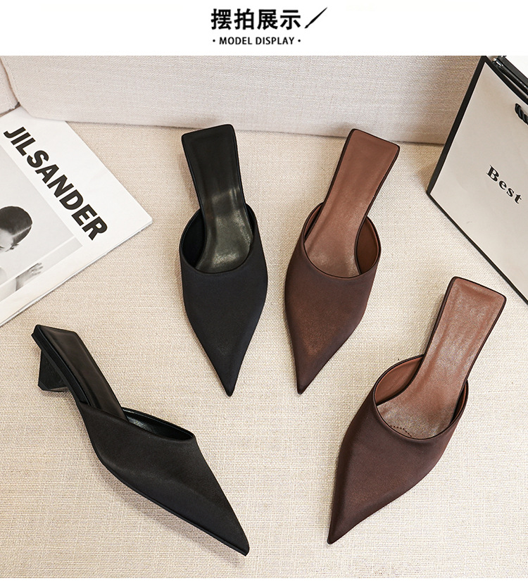 166-1 женские полутапочки Baotou, новинка лета 2024, модные темпераментные тапочки с острым носком на толстом каблуке, оптовая продажа на складе