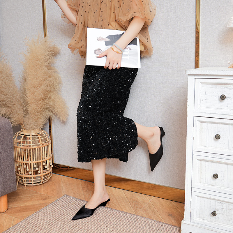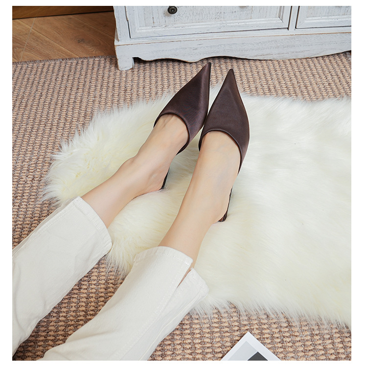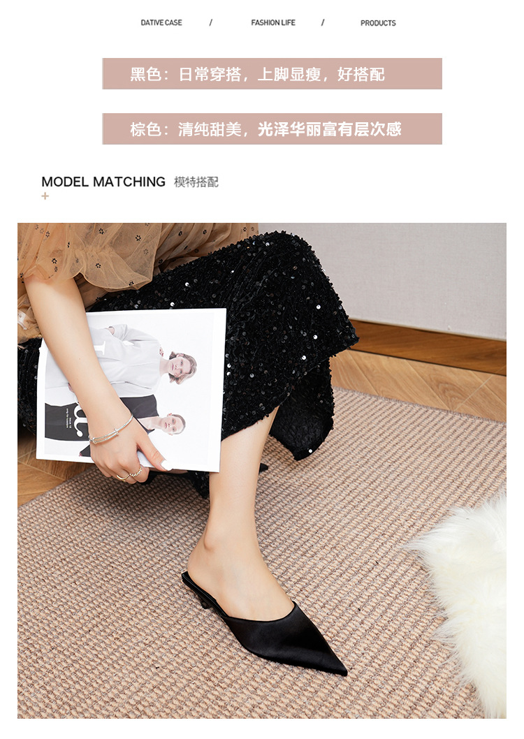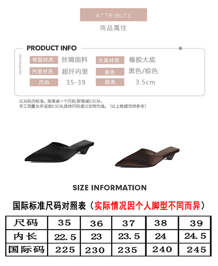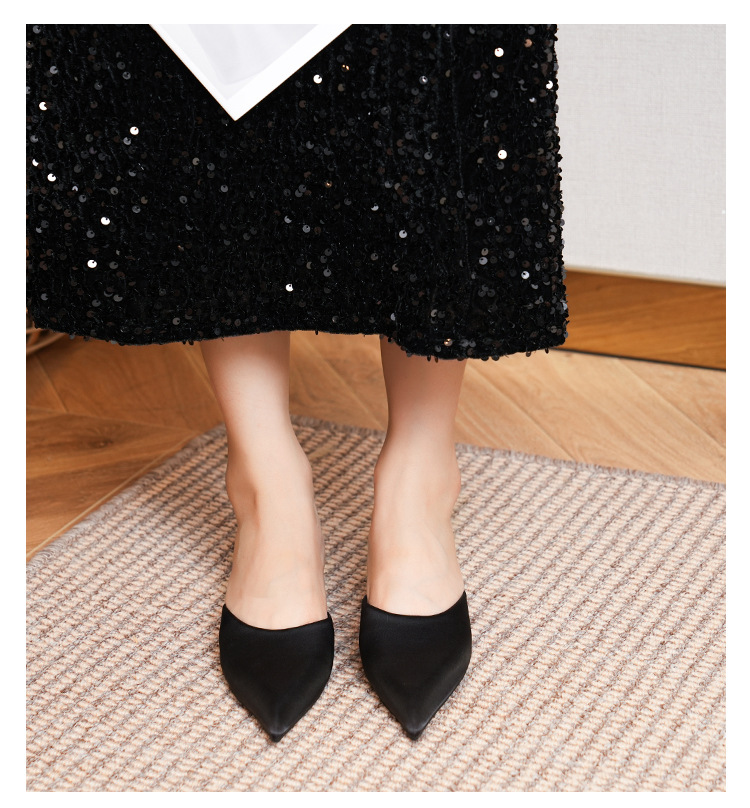 166-1 женские полутапочки Baotou, новинка лета 2024, модные темпераментные тапочки с острым носком на толстом каблуке, оптовая продажа на складе